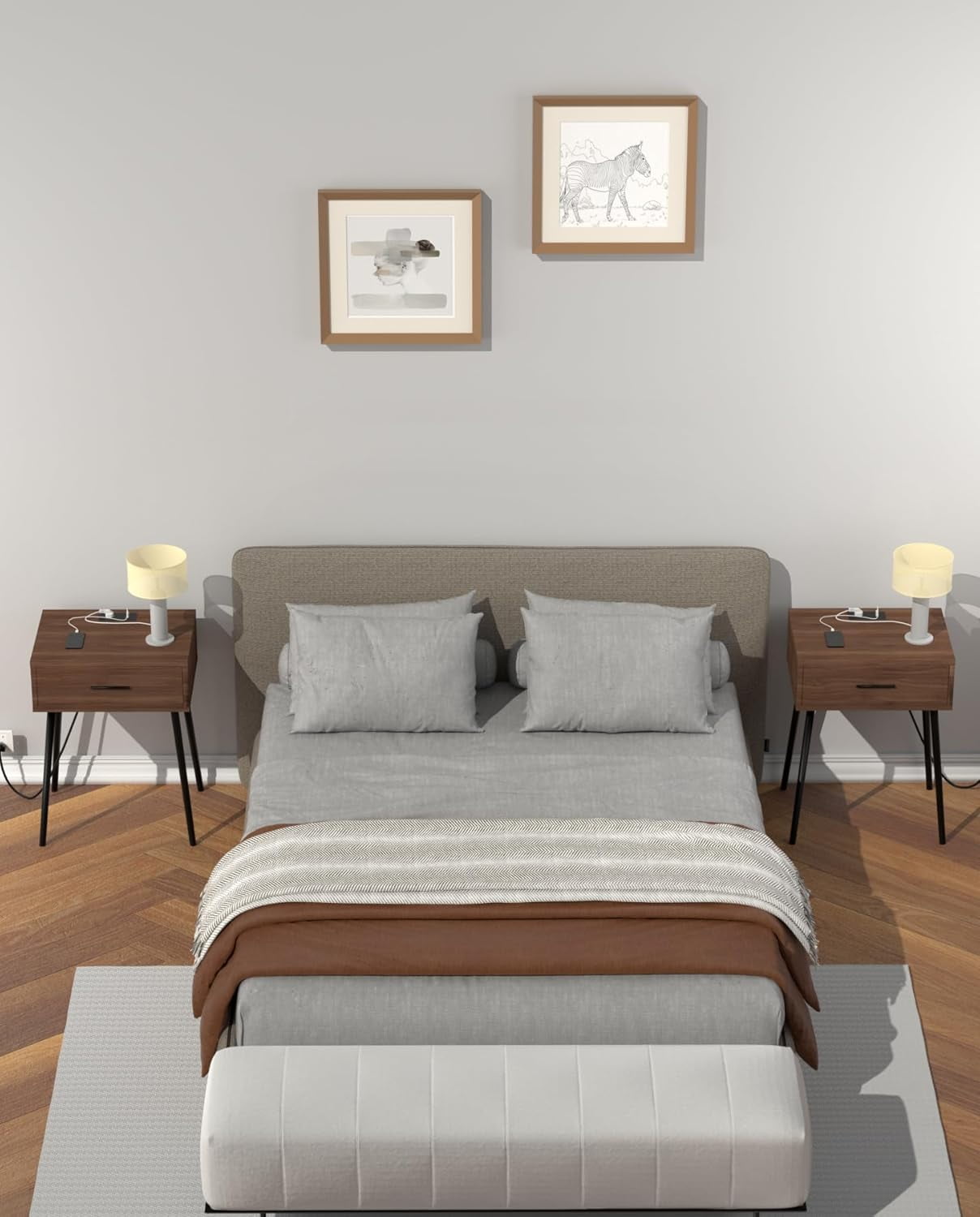 ▶Thoughtful Storage, Effortless Convenience This elegant wood nightstand offers ample space to securely store wallets, watches, and personal items. Its built-in USB charging ports allow for easy phone charging—no more searching for outlets. ▶Dual-Purpose Design Charging & Lighting in Harmony Crafted as a matching wood nightstand set, it beautifully blends function and elegance for both sides of your bed. ▶Solid Craftsmanship, Effortless Assembly These wood nightstands combine sturdy construction with thoughtful design – clear instructions make setup a breeze, while their lightweight build maintains perfect stability. ▶Exquisitely Designed, Minimalist Elegance Wulnut nightstand features a sleek, minimalist design that perfectly complements modern bedroom decor. ▶Shipping Commitment We are committed to fast and reliable shipping. Orders will be processed within 24 hours, with delivery typically within 5-9 business days. Tracking information will be provided so you can monitor your package every step of the way. ▶After-Sales Guarantee We offer a worry-free after-sales service. If you encounter any issues with the product, please contact us within 30 days for a hassle-free return or exchange. Additionally, we provide a one-year warranty for quality-related problems—your satisfaction is our top priority! Package Includes: •2 x Nightstands •1 x Manual •1 x Accessories