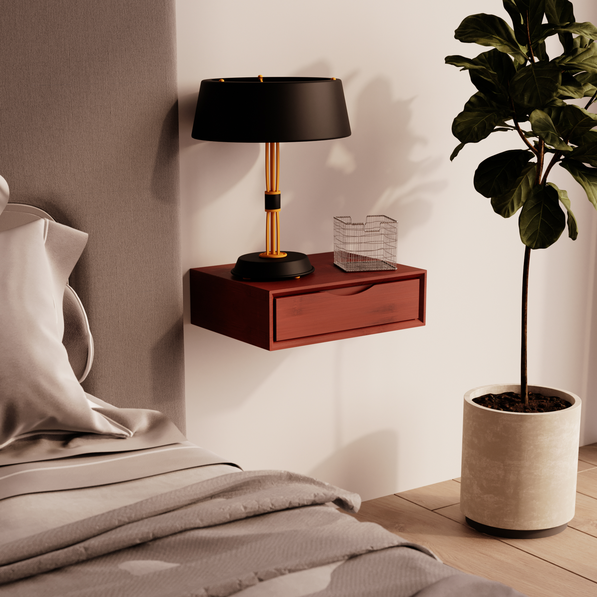 Middleton Row Premium Solid Bamboo Wood Wall Mounted Floating Nightstand with Drawer Bedside table no Assembly required, Mahogany