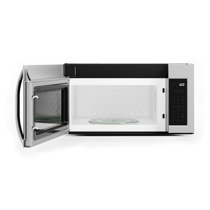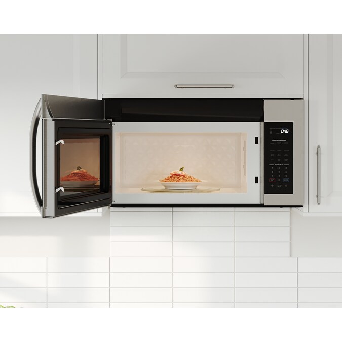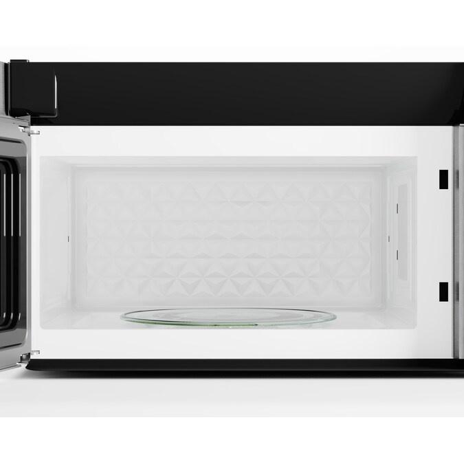 Our versatile over-the-range microwave oven features a large, 1.9 Cu. Ft. capacity, perfect for large plates and platters. A moisture sensor automatically adjusts cooking times based on your food’s water content. A powerful ventilation fan can either recirculate smoke and odors from the range below or externally vent them when connected to an exhaust duct.