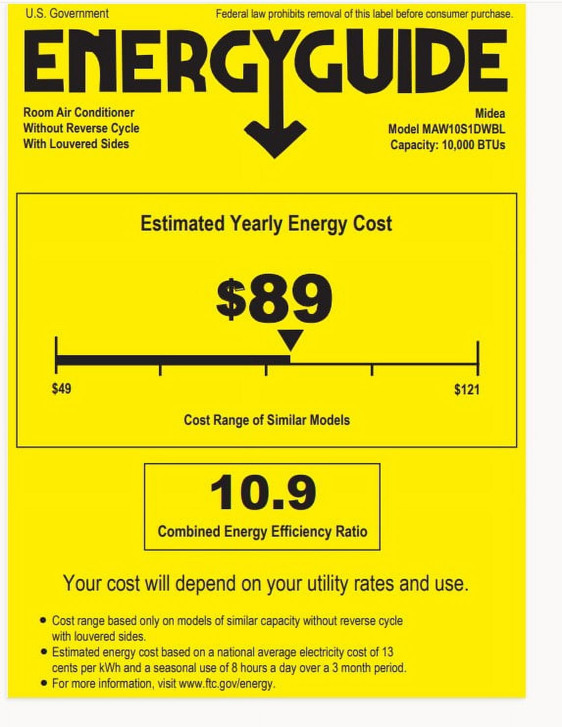 The Midea 10,000 BTU 115V Smart Window Air Conditioner with ComfortSense, Black, MAW10S1WBL will keep you feeling cool during those hot summer days! Midea’s new ComfortSense remote automatically adjusts the cooling strength based on the location of the remote! With 3 different cooling modes and 3 different fan speeds – there is no doubt you will find the setting that provides you with personalized comfort. The Midea 10,000 BTU 115V Smart Window AC with ComfortSense, is ideal for cooling medium-sized spaces up to 450 square feet – The ComfortSense and electronic controls let you control the temperature and fan speed from across the room. The Midea 10,000 BTU 115V Smart Window AC with ComfortSense, features a programmable 24-hour on-off timer with sleep mode for your convenience. Comes with a change filter indicator button that lights up when it is time to remove and clean it. The Midea 10,000 BTU 115V Smart Window AC with ComfortSense, is designed to fit windows 23”-26” wide and a minimum height of 15.5”.