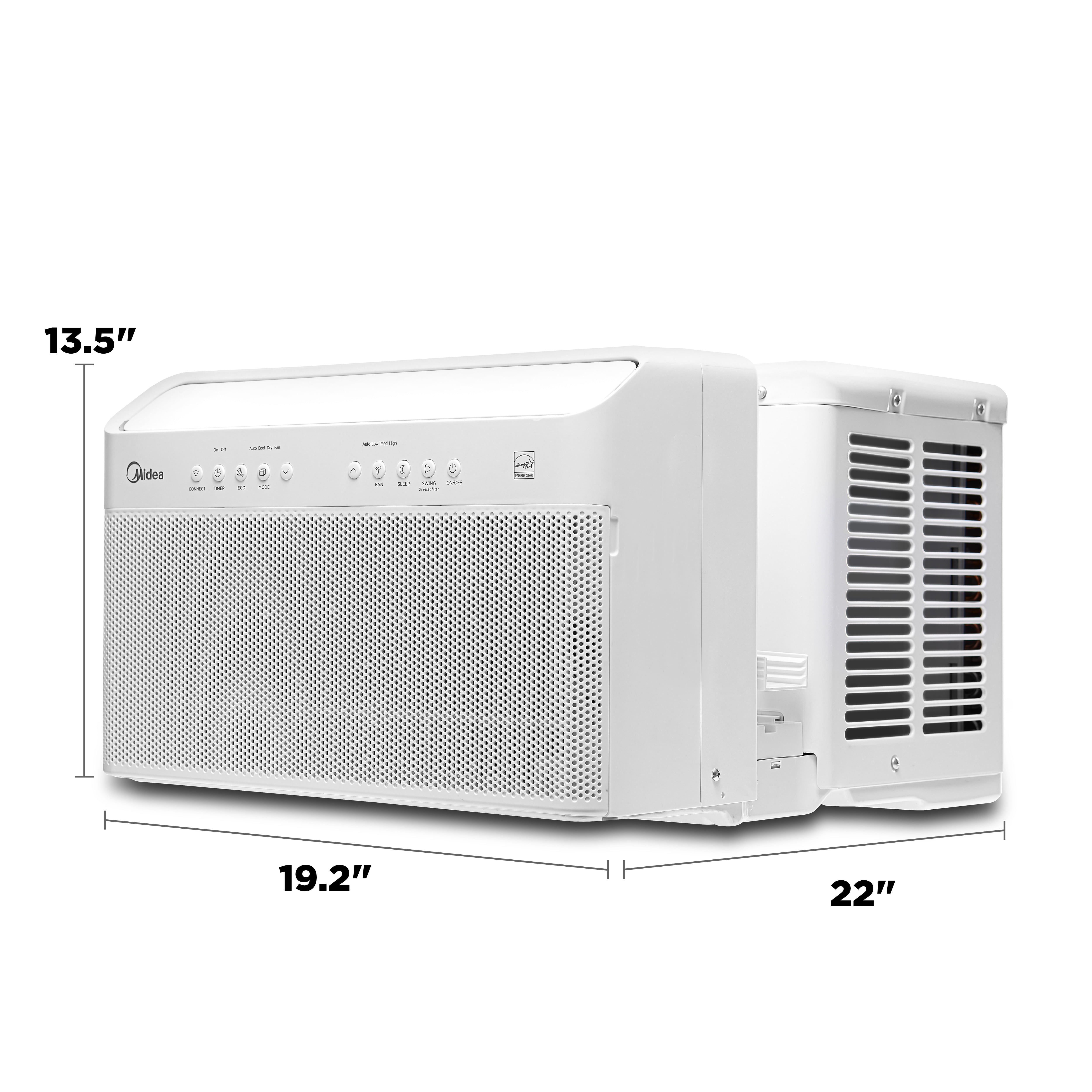 Introducing the Midea 10,000 BTU Smart Inverter U-Shaped Window Air Conditioner, a revolutionary design that reinvents the window AC experience. With over 35% energy savings, quiet operation as low as 32 dBA, and the ability to open or close your window while the unit is installed, this air conditioner covers areas up to 450 Sq. ft. and is Wi-Fi enabled for easy control with Alexa or Google Assistant. Its 3-step quick and easy installation, removable and washable filter, and 1-year limited warranty make it a smart choice for your home cooling needs.