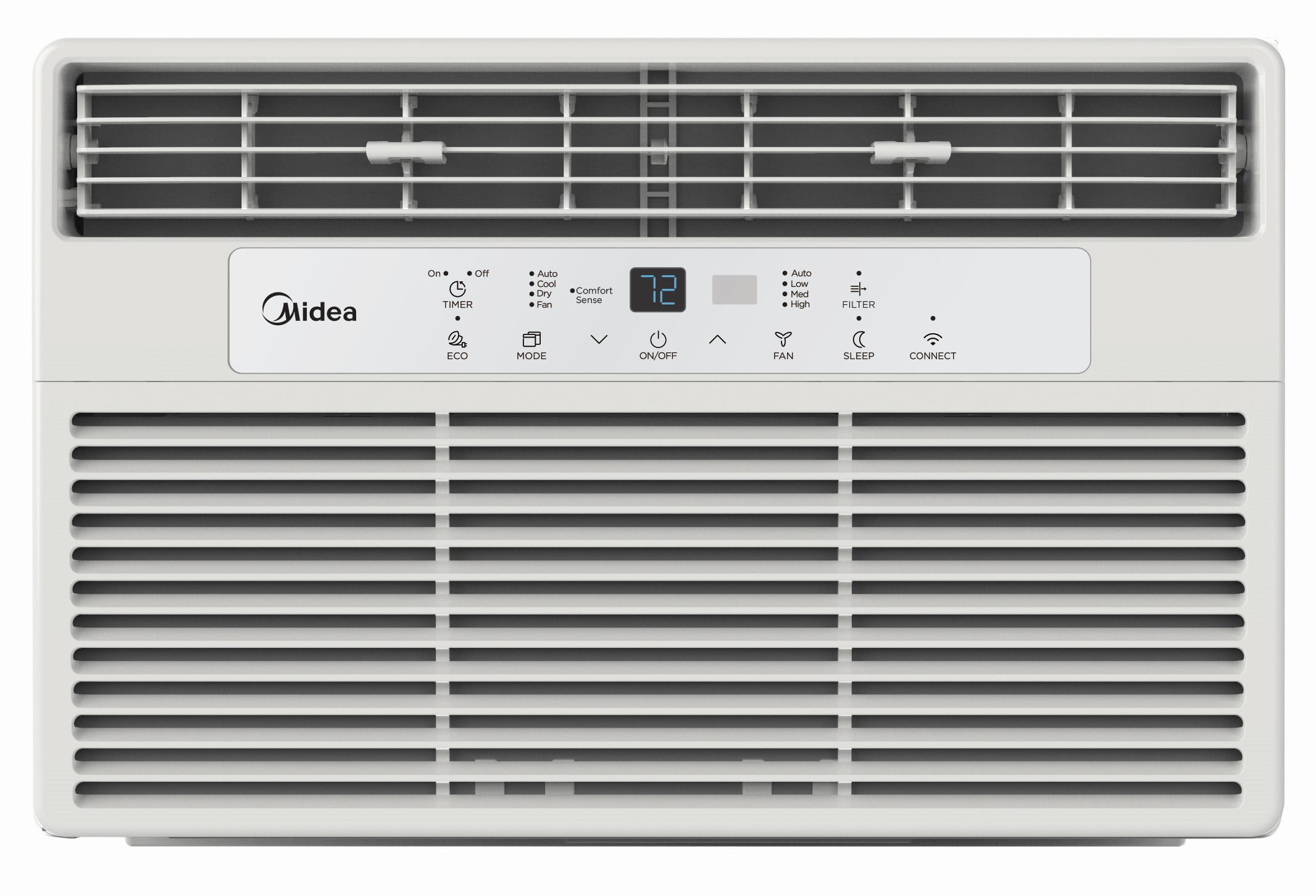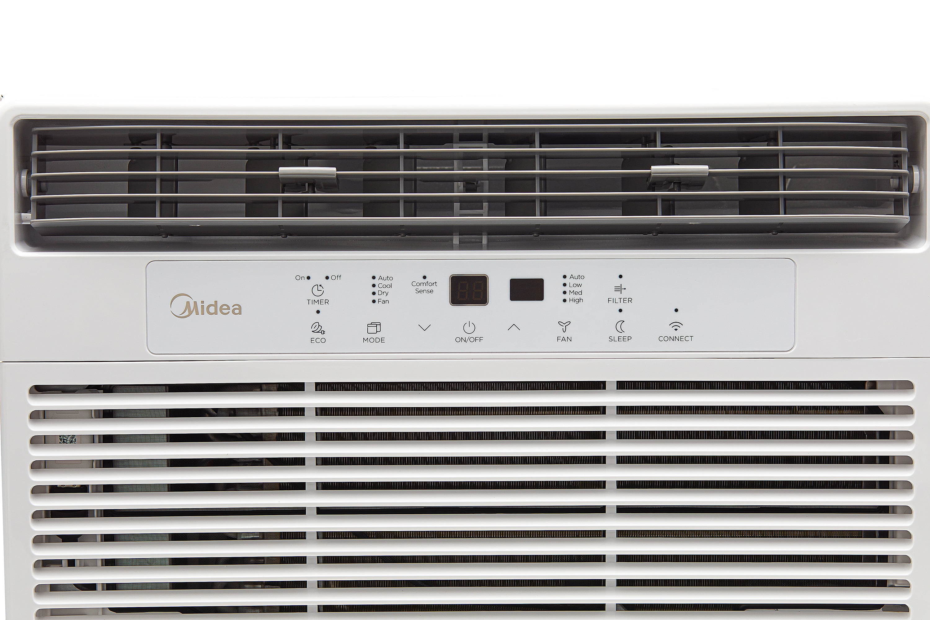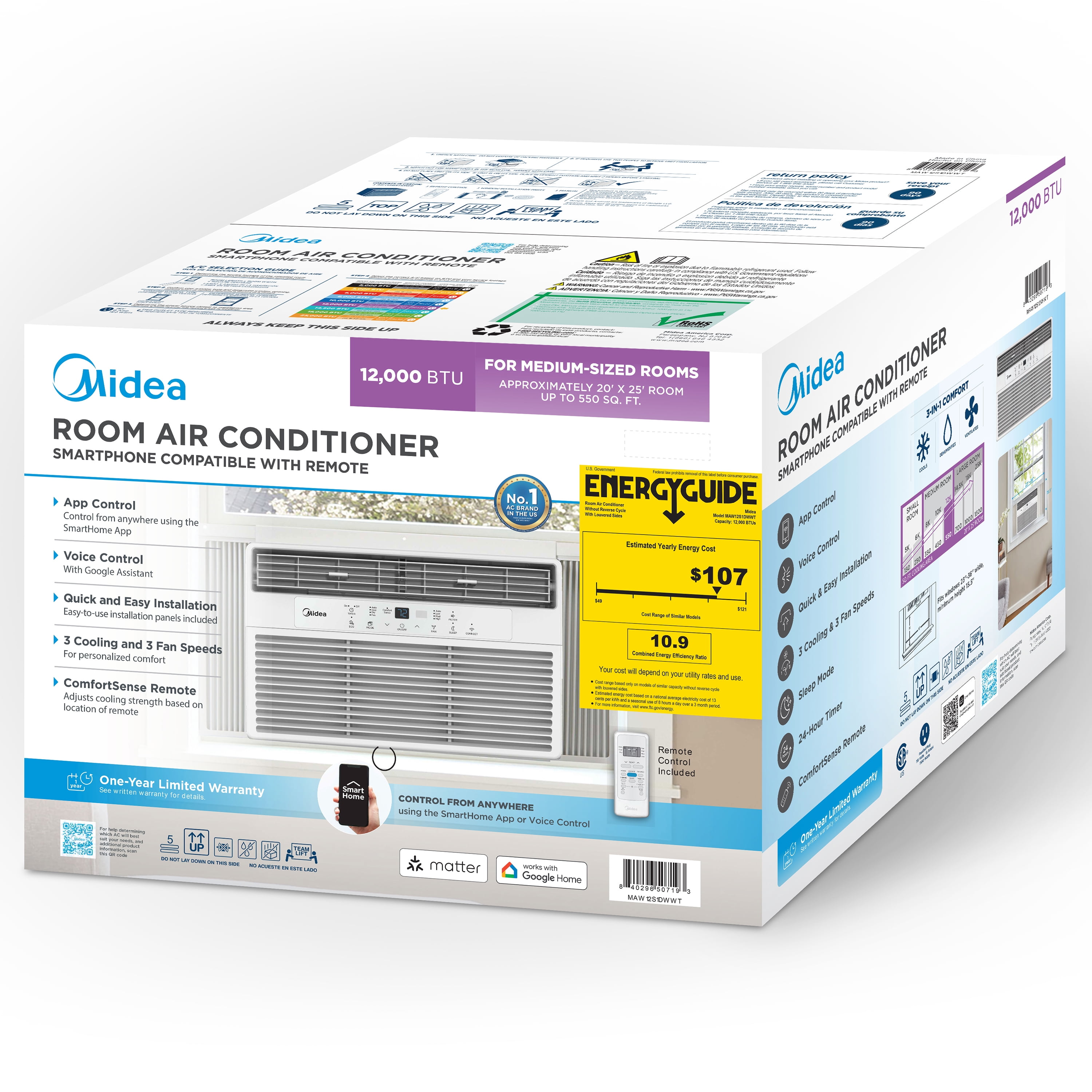 This Midea 12,000 BTU Smart Window AC with Comfort Sense will keep you feeling cool during those hot summer days! Midea’s new Comfort Sense remote adjusts the cooling strength based on the location of the remote! With 3 different cooling modes and 3 different fan speeds – there is no doubt you will find the setting that provides you with personalized comfort. The Midea 12,000 BTU Smart Window AC is ideal for cooling medium sized spaces up to 550 square feet. With electronic controls and Comfort Sense remote, you can control the temperature and fan speed from across the room. This unit features a programmable 24-hour on-off timer with sleep mode for your convenience. Control from anywhere via Smart Home App, smart watches and voice assistant devices. It is Matter certified as well. The unit also comes with a ‘change filter’ indicator button that lights up when it is time to remove and clean it. The Midea 12,000 BTU Smart Window AC is designed to fit windows 23”-36” wide, and minimum height of 15.5