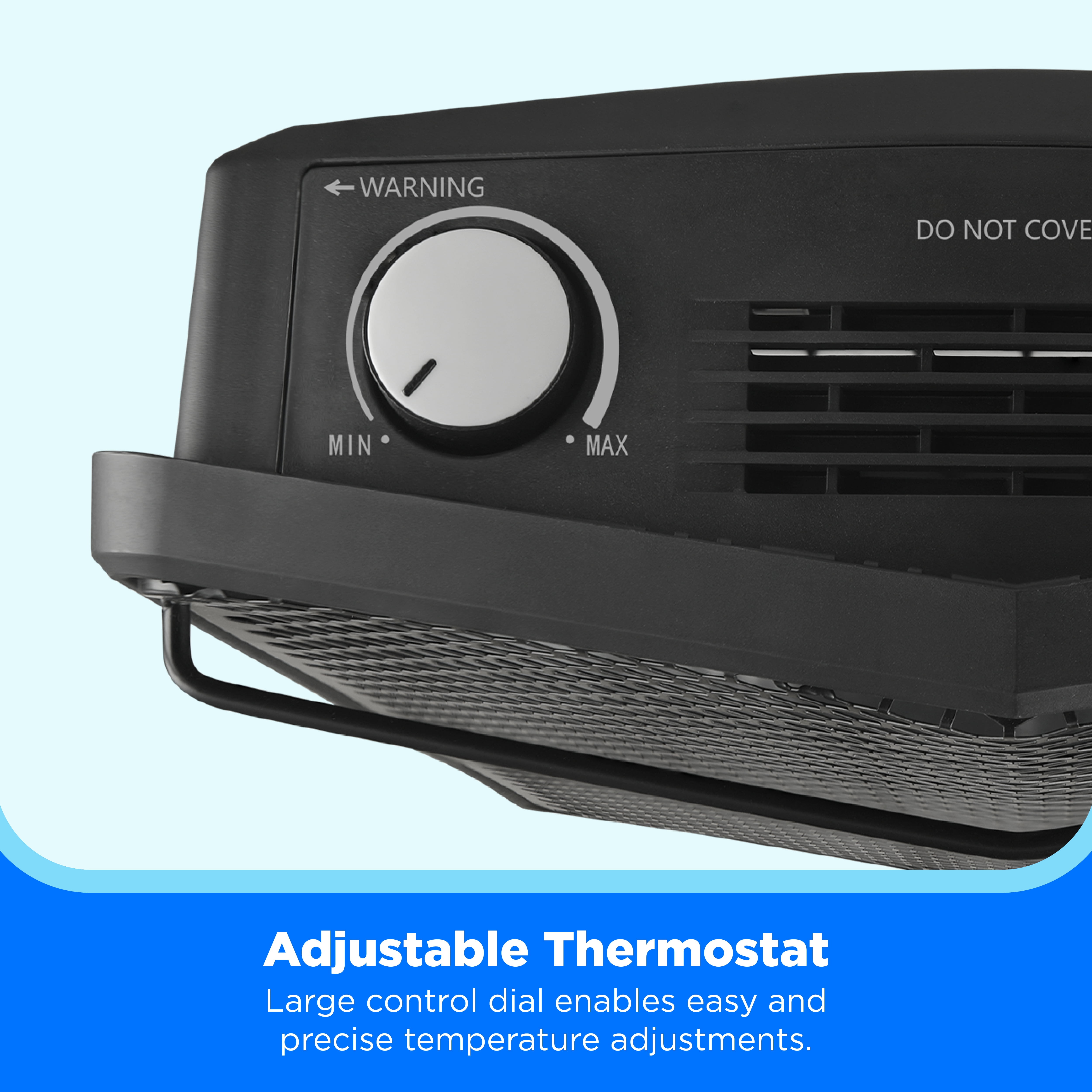 Midea 1500W Quartz Indoor Electric Space Heater, MSH20Q3ABB, Black, New 3 heat settings 500/1000/1500W Adjustable thermostat Resettable thermal cut-off Cool touch built in handle Overheat protection Tip-over protection Power indicator light