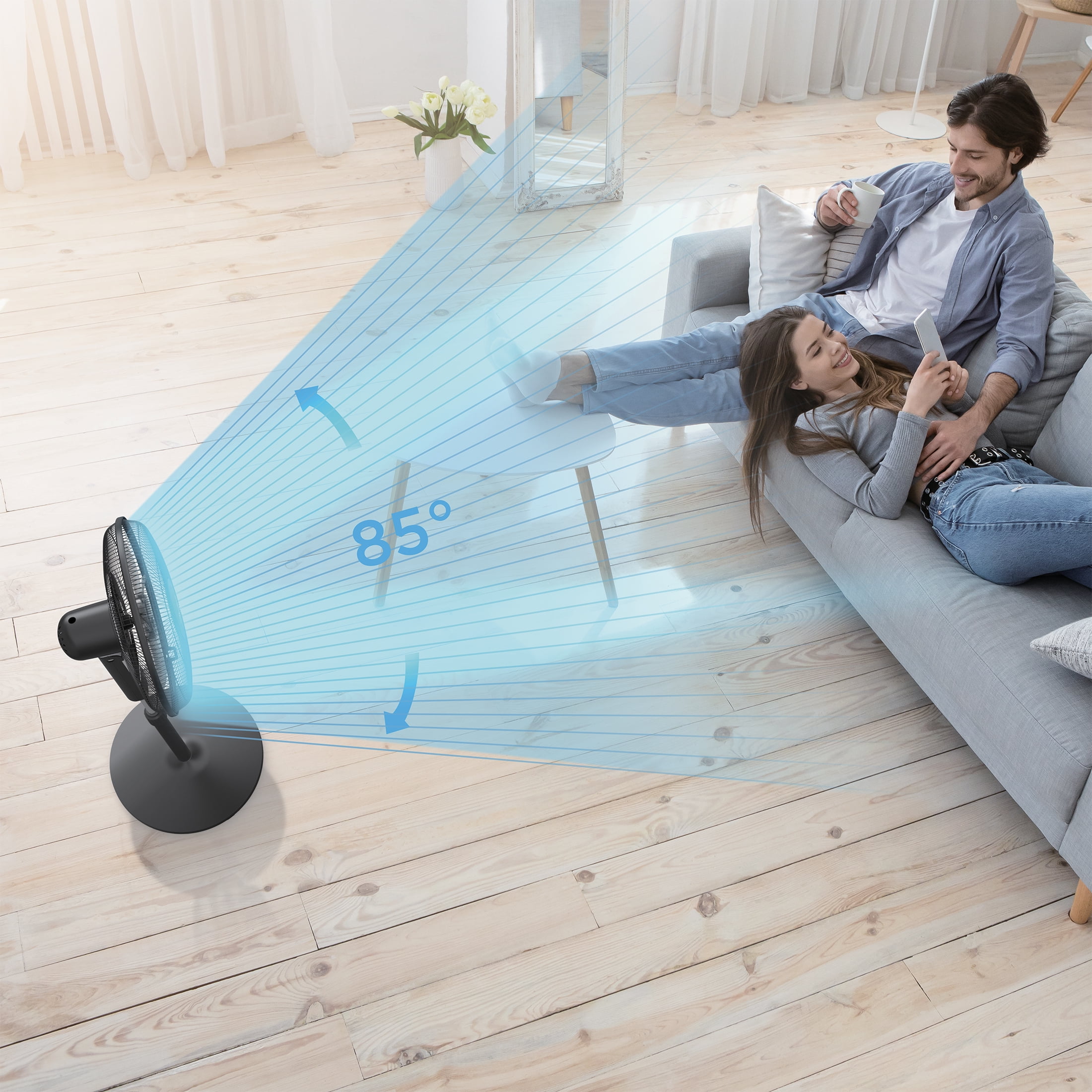 Midea 16″ 12-Speed Smart Pedestal DC Fan with Wi-Fi, MFS4022WARB, New, Black #1 Home Comfort Brand: Midea brand named #1 Home Comfort brand in the US according to Circana/Retail tracking service data for 2023 Smart Control Options: 12 Speed Settings: Programmable Timer: 85° Oscillation: 4 Fan Modes: Adjustable Height: