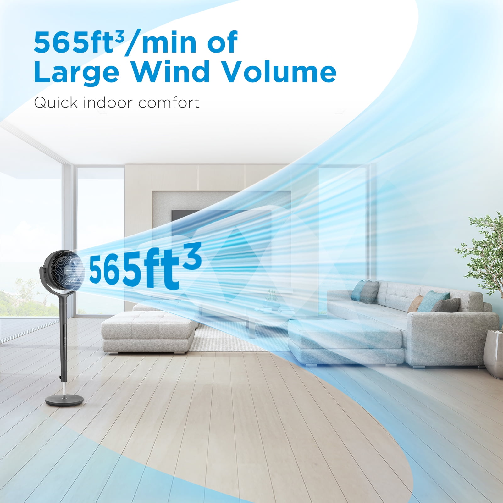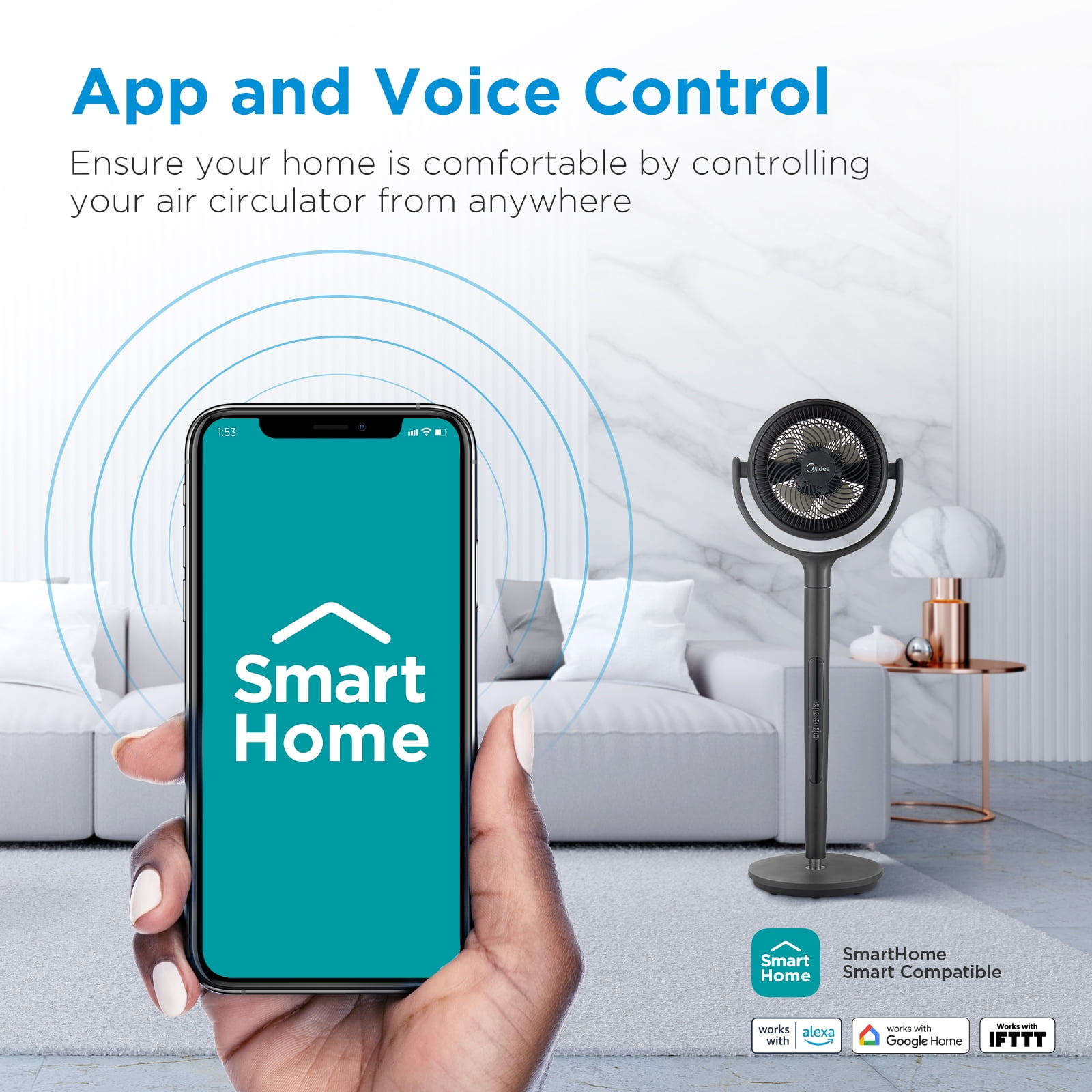 Midea 44″ Tall 12-Speed Smart Pedestal Fan with Air Circulator, Model MSFS07RW6GB, Black