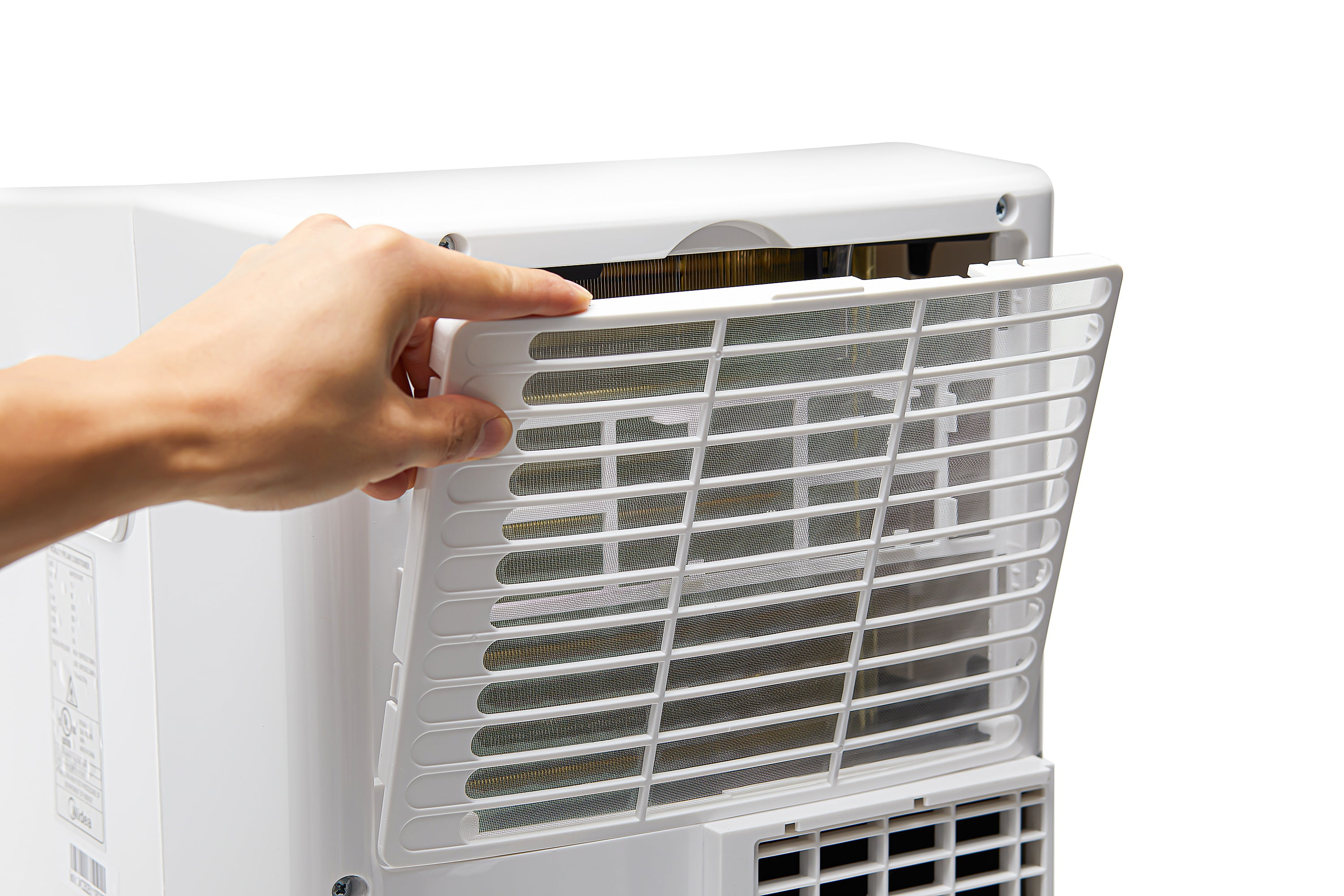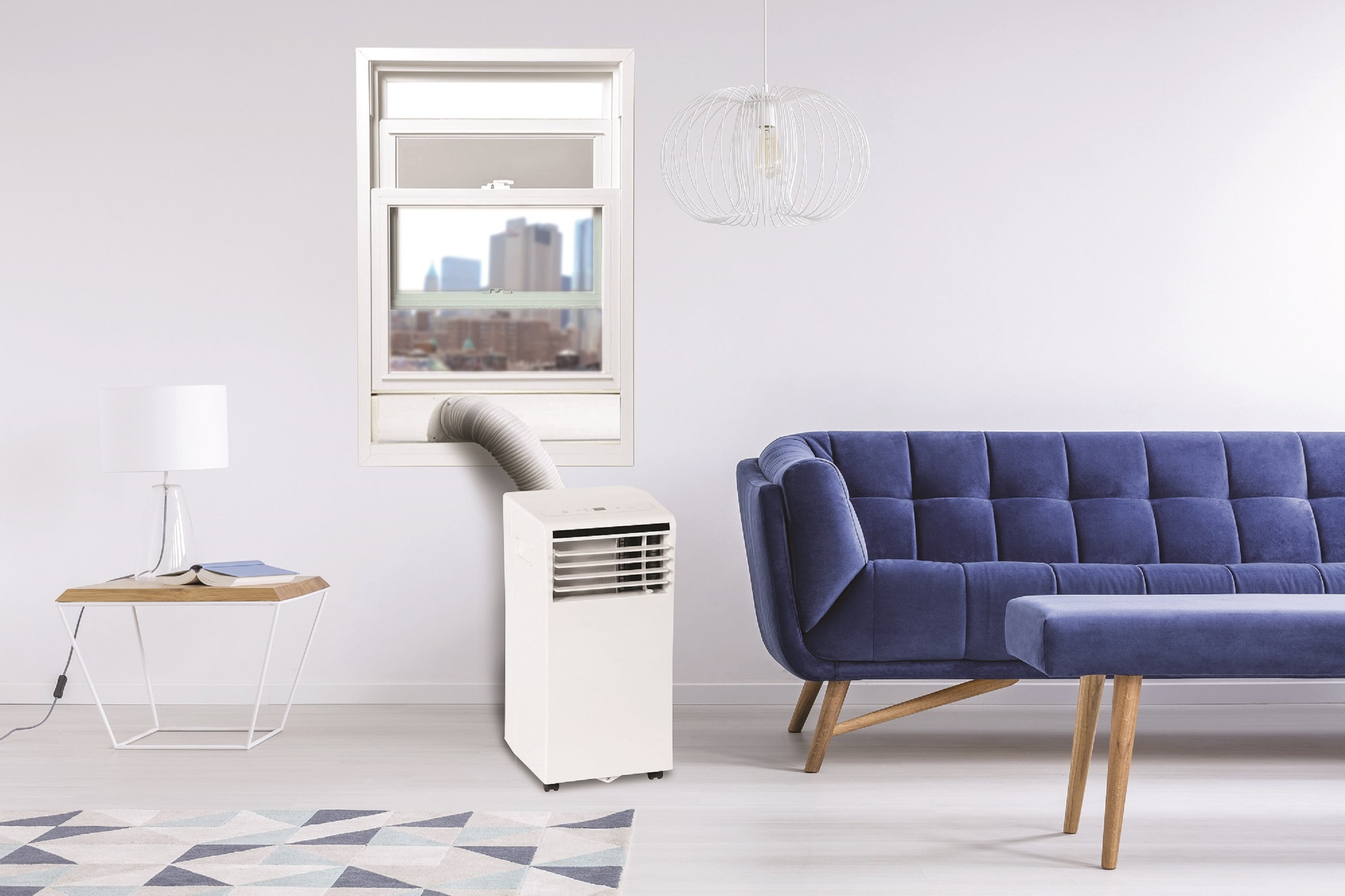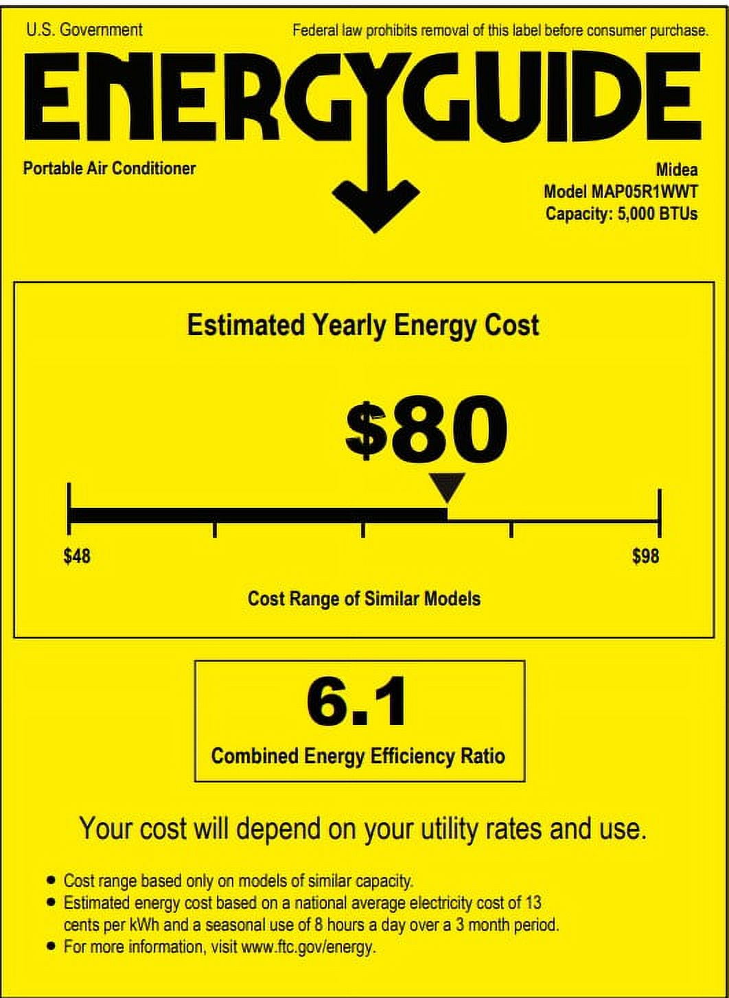 Midea 5,000 BTU (8,000 BTU ASHRAE) 115V Portable Air Conditioner with Comfort Sense Remote, Cools up to 150 Sq. ft., MAP05R1WWT, New Needs to be vented outside 3-in-1 Comfort: Keeps you cool during hot summer days with 3 different functions; Cools, Circulates, & Dehumidifies. Designed for Smaller Spaces: Ideal for cooling spaces up to 150 sq. ft. Comfort Sense Remote: Comfort Sense Remote lets you control the room temperature by adjusting the cooling strength based on the location of the remote Smart Features: Equipped with sleep mode and a programmable 24-hour time Light & Mobile: 4-wheel design lets you move it from room to room Quick & Easy Installation: Includes a quick and easy window installation kit Min. /Max. Window Opening Width (in): Minimum window opening width: 26.5 inches. Maximum Window opening width: 49 inches Min. Window Opening Height (in): Minimum window opening height of 6.4 inches Power Source Details: 115V, 15 AMPS, 793 WATTS Trusted AC Brand: Midea brand named #1 AC brand in the US according to Circana/Retail tracking service data for 2022