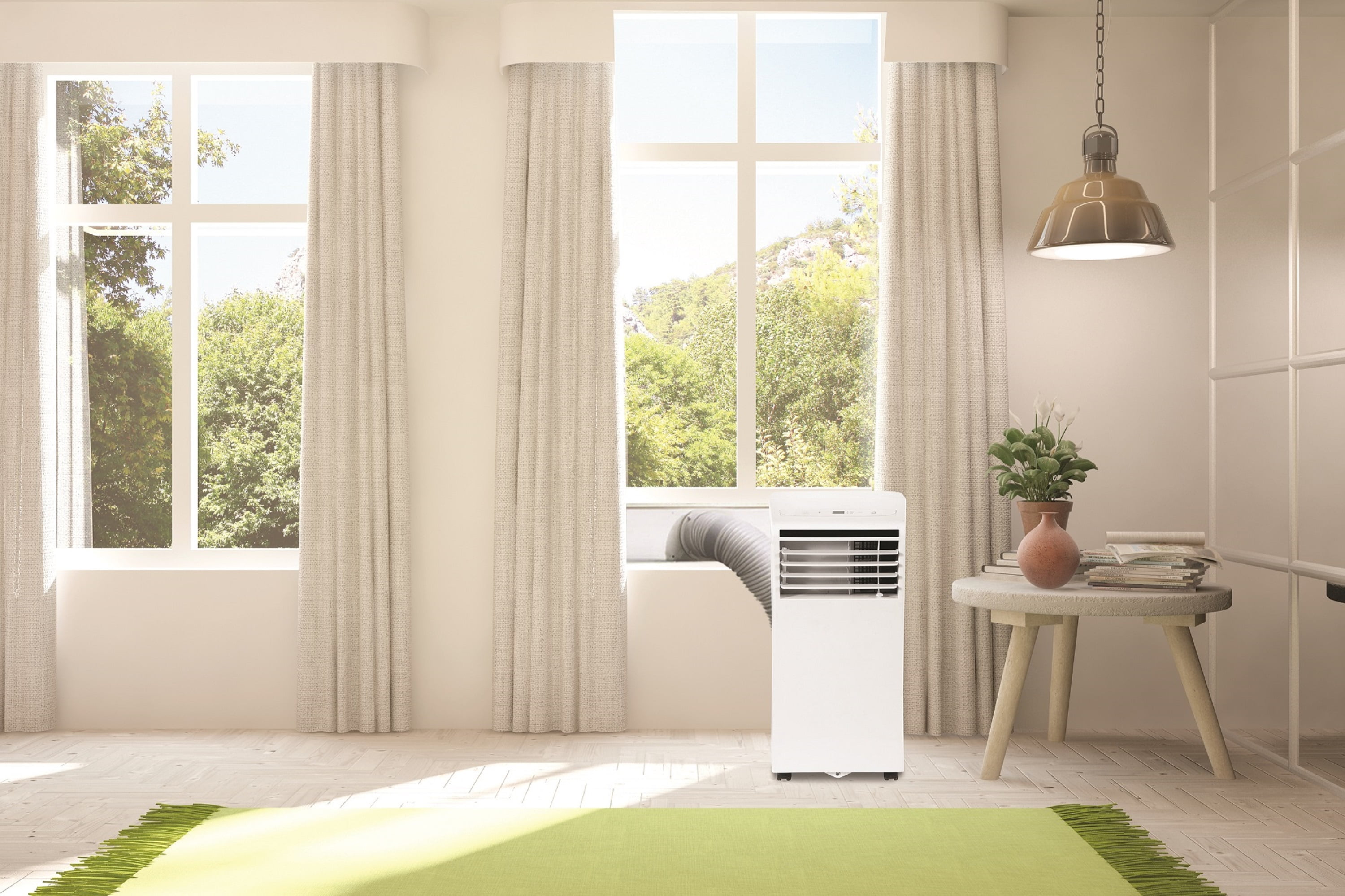 The new Midea 5,000 BTU (8,000 BTU ASHRAE) 115V Portable Air Conditioner with Comfort Sense Remote, White, MAP05R1WWT will keep you feeling cool during those hot summer days! With its three different settings, Air Conditioning, Fan, and Dehumidifier, there is no doubt you will find the setting that provides you with optimal comfort. The Midea 5,000 BTU (8,000 BTU ASHRAE) 115V Portable Air Conditioner, MAP05R1WWT is ideal for cooling small spaces up to 150 square feet – so it will make a small house or one-bedroom apartment comfortable in no time. Midea 5,000 BTU Portable Air Conditioner features a programmable 24-hour on-off timer with sleep mode for your convenience and has a sturdy four-wheel design that lets you effortlessly move the air conditioner from room to room and includes a quick and easy window installation kit.