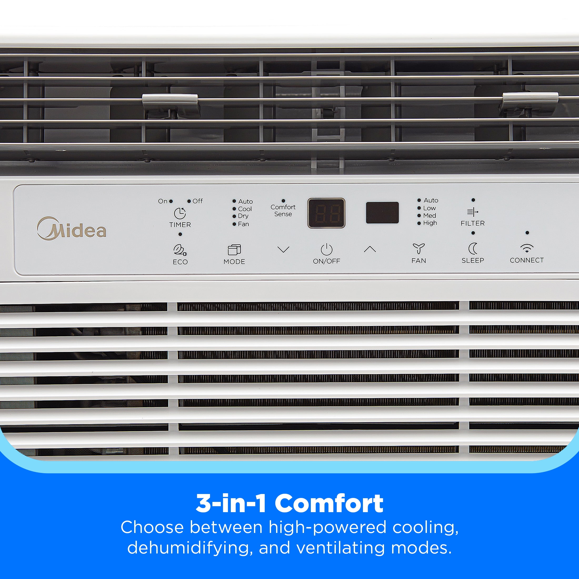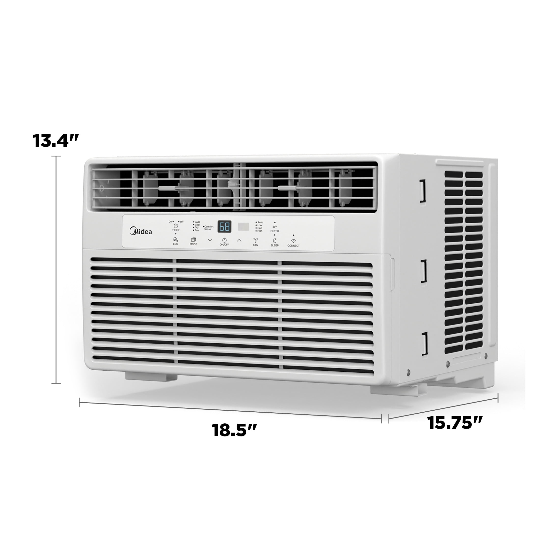 - Midea 8,000 BTU 115V Smart Window Air Conditioner with Comfort Sense Remote, Covers up to 350 Sq. ft., Black, MAW08S1DWWT