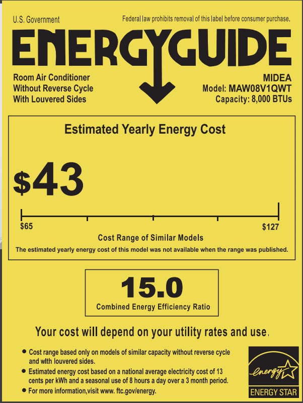 Midea 8,000 BTU Smart Inverter U-Shaped Window Air Conditioner, 35% Energy Savings, Extreme Quiet, Cools up to 350 Sq. ft., MAW08V1QWT-T, New Trusted AC Brand: Midea brand named #1 AC brand in the US according to Circana/Retail tracking service data for 2023 The Window Air Conditioner Reinvented: Meet the first U-Shaped inverter Window Air Conditioner OVER 35% ENERGY SAVINGS: Midea U achieves more than 35% energy savings compared to traditional units. It is the first window air conditioner to obtain the ENERGY STAR ‘Most Efficient’ 2020 certification Quiet Operation: With the U-shaped design, any noise coming from the compressor, stays outside! This allows for ultra-quiet operation as low as 32 dBA*- almost as quiet as a library! Window Opened or Window Closed: With its innovative U-shaped groove design and unique drop-in install method, you may open your window to enjoy fresh air even with your window air conditioner still installed Smart Control: Midea-U Window Air Conditioner works with Google Assistant and Alexa. This Unique window air conditioner is Wi-Fi enabled and can be controlled from anywhere through the cloud using the MideaAir app on iOS or Android Remote Control: With the Midea-U window air conditioner, a remote control is included, ensuring your comfort and convenience remains a priority Voice Control: The Midea-U window Air Conditioner is wi-fi enabled and compatible with Google Assistant 3-Step Quick & Easy Installation: Installation can be done in 3 simple steps: install the (included) quick-snap bracket, set the unit on the bracket, and secure the sidearms. The included bracket improves the unit support beyond what a traditional window air conditioner can offer. The unique design allows the window to open and close and the unit to remain secure. The window is secured by an anti-theft mechanism while closed Powerful, quick cooling: The strong airflow allows you to feel the cold air up to 20 feet away, and the full DC inverter technology helps to rapidly cool the room Maintenance: Maintenance of the Midea-U window air conditioner is a breeze with the removable and washable filter