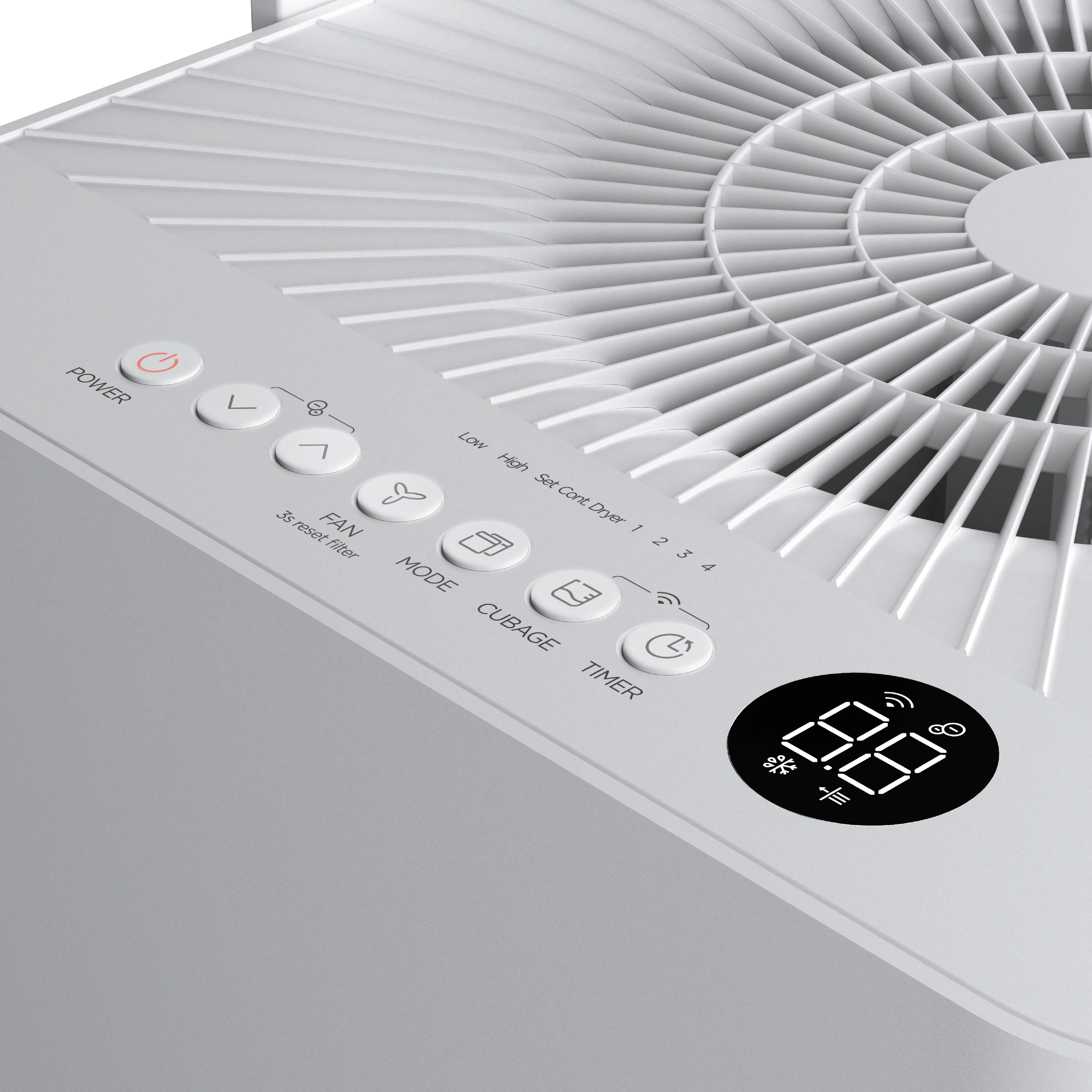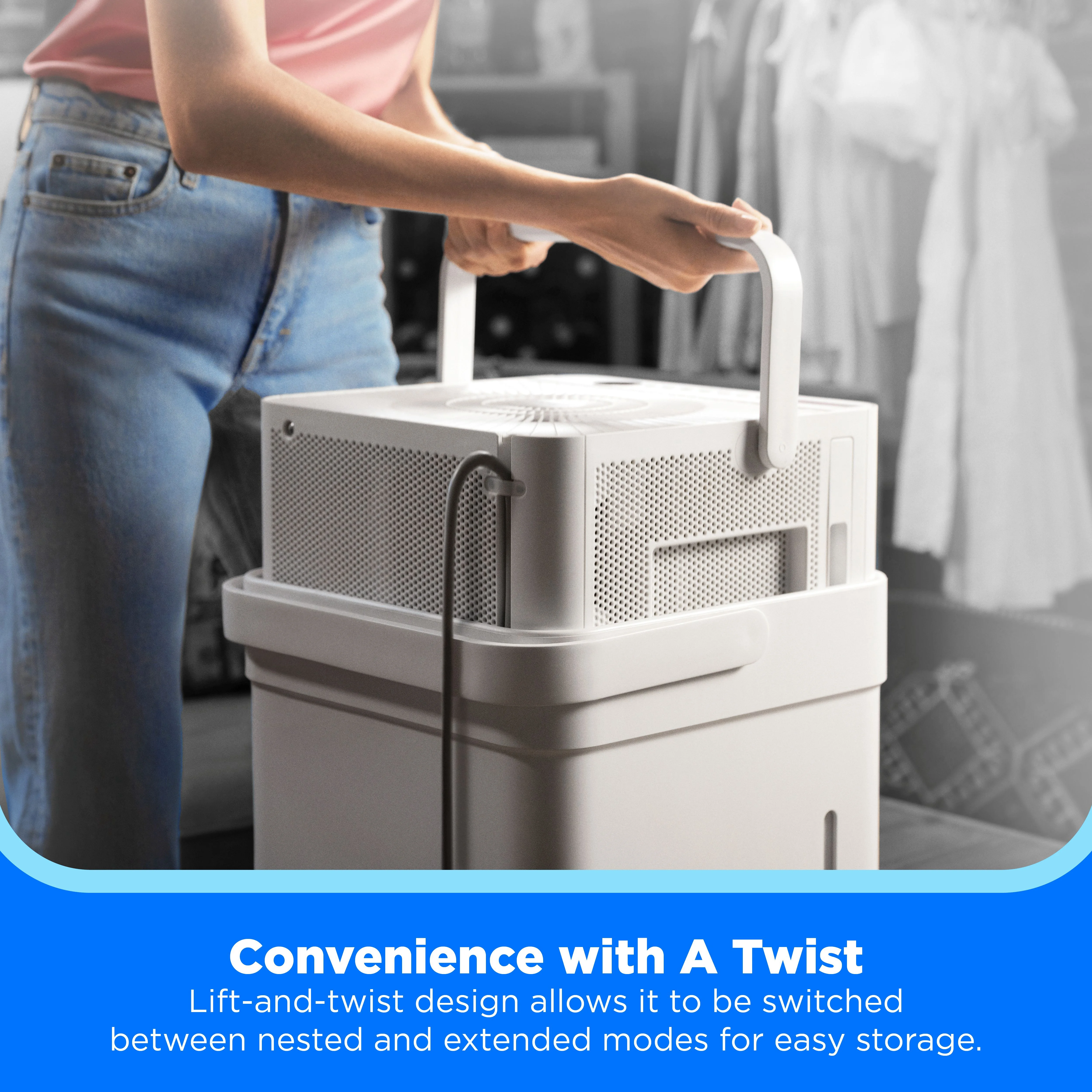 The Midea Cube dehumidifier offers unparalleled flexibility with its unique lift-and-twist design – when operating in extended form, it has up to 3 times more water tank capacity than traditional dehumidifiers, allowing it to run much longer without the hassle of frequently emptying the tank; when in nested or drain form, the unit is half the size, providing more compact storage options or flexible draining. With its patented sensor and Wi-Fi enabled app, you can easily monitor the humidity and water level of the Midea Cube, all at your fingertips. The Midea Cube’s powerful multi-directional air intake system makes it ideal for whole-house dehumidification, effectively creating a safer and more comfortable environment anywhere – from your basement, bathroom, bedroom, or living room when needed. Midea, the #1 Home Comfort brand in the US according to Circana/Retail tracking service data for 2023, has designed the Midea Cube to be quiet, operating at a mere 42 decibels, which is quieter than your refrigerator. With its compact and lightweight design, the Midea Cube can be easily placed anywhere, providing you with the flexibility to dehumidify your home as needed.