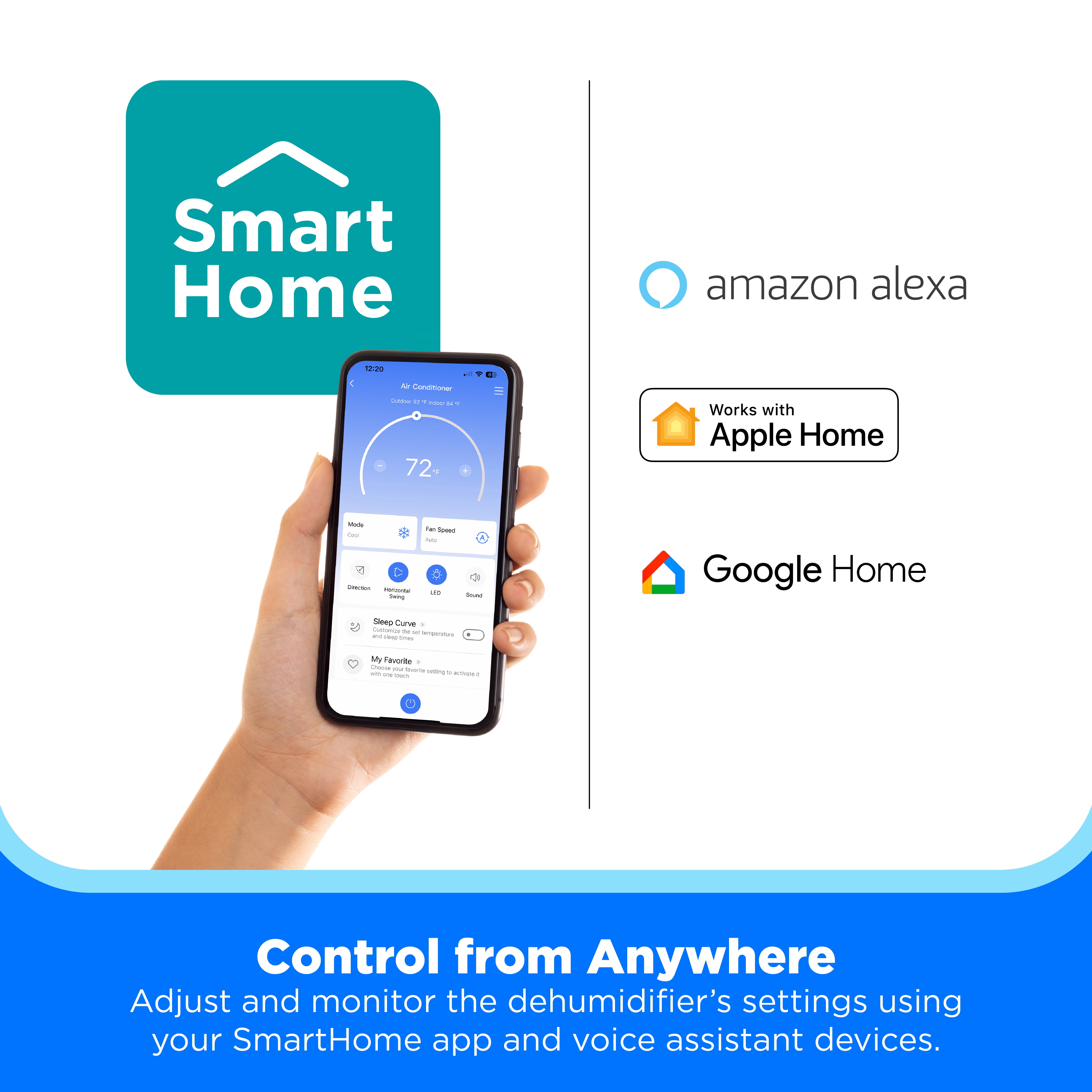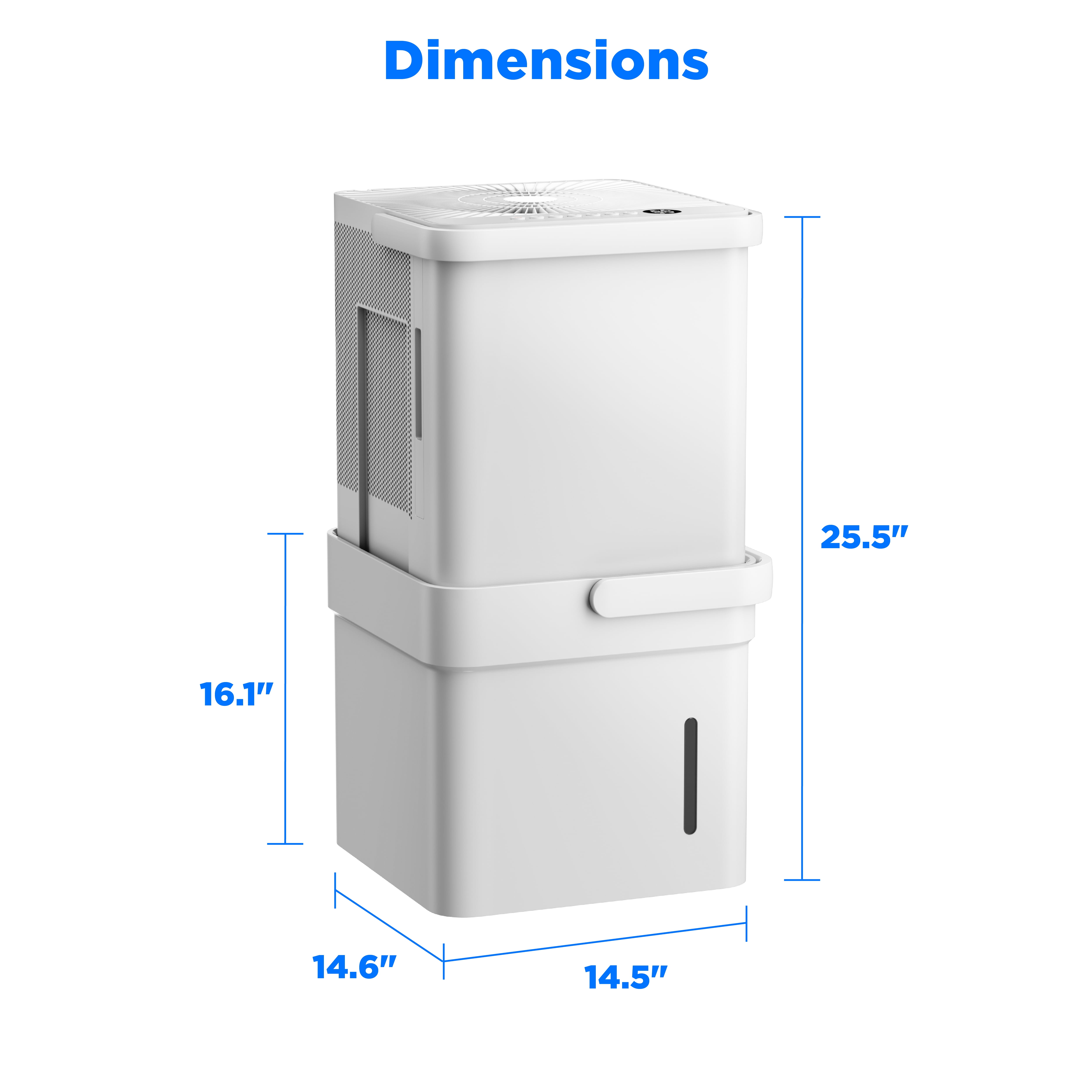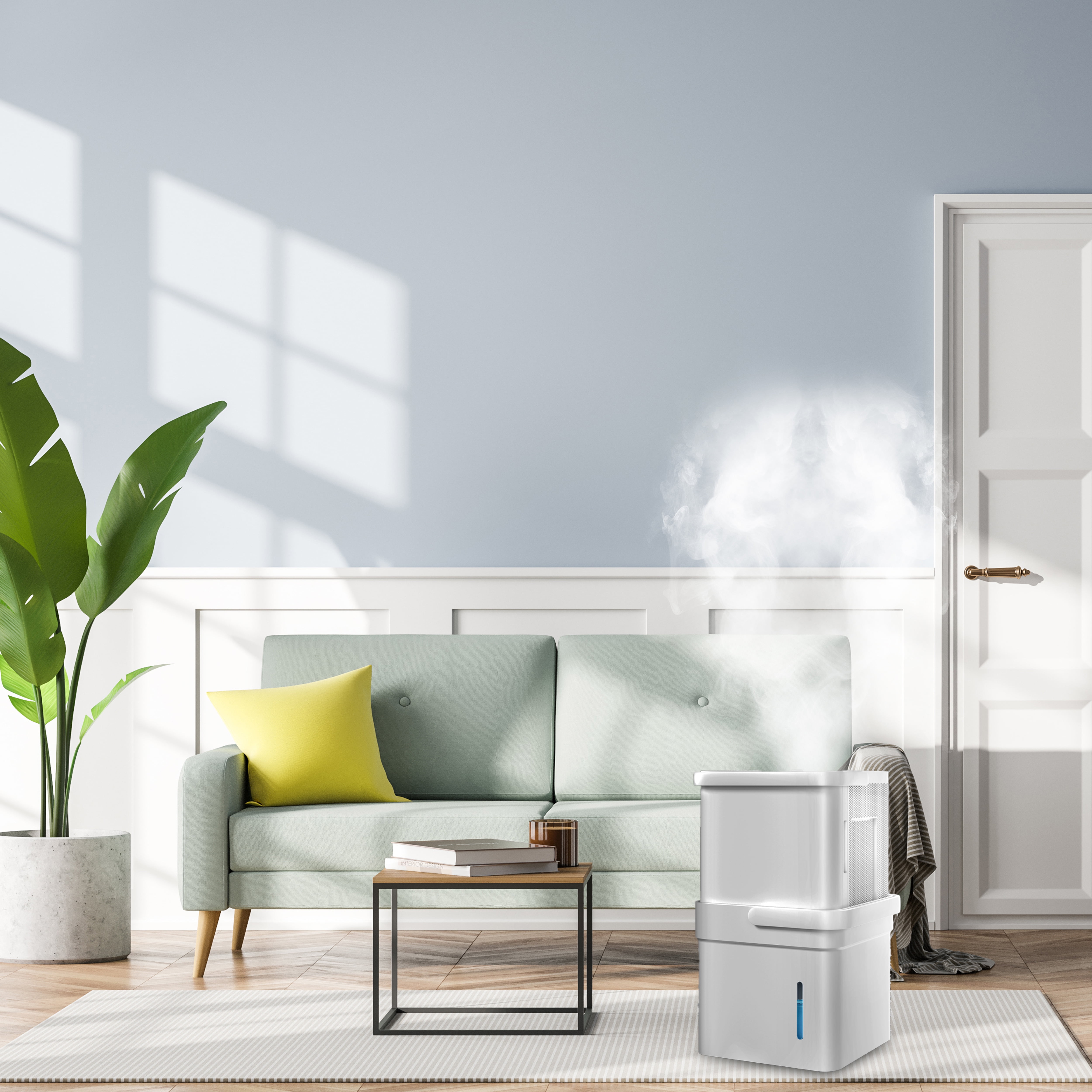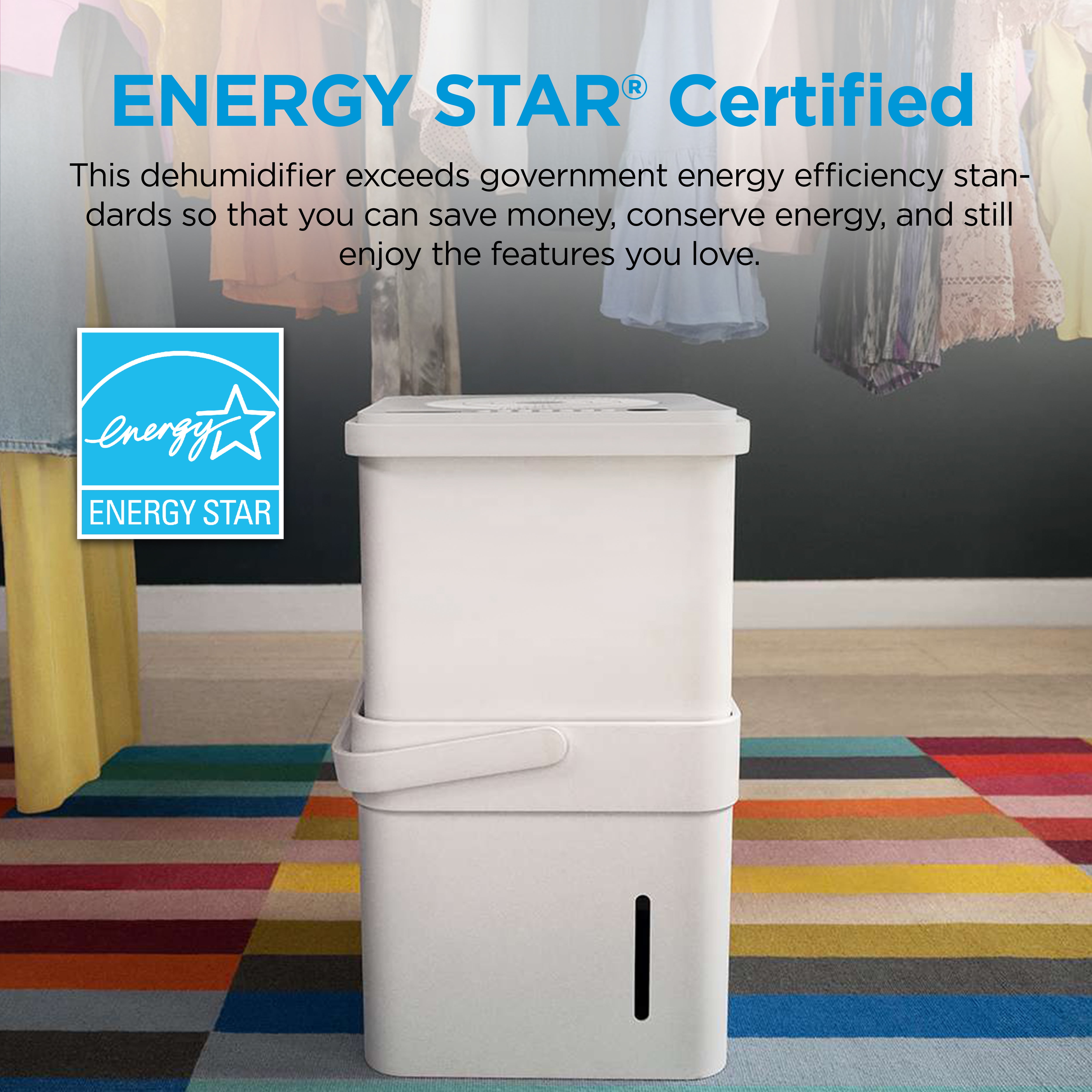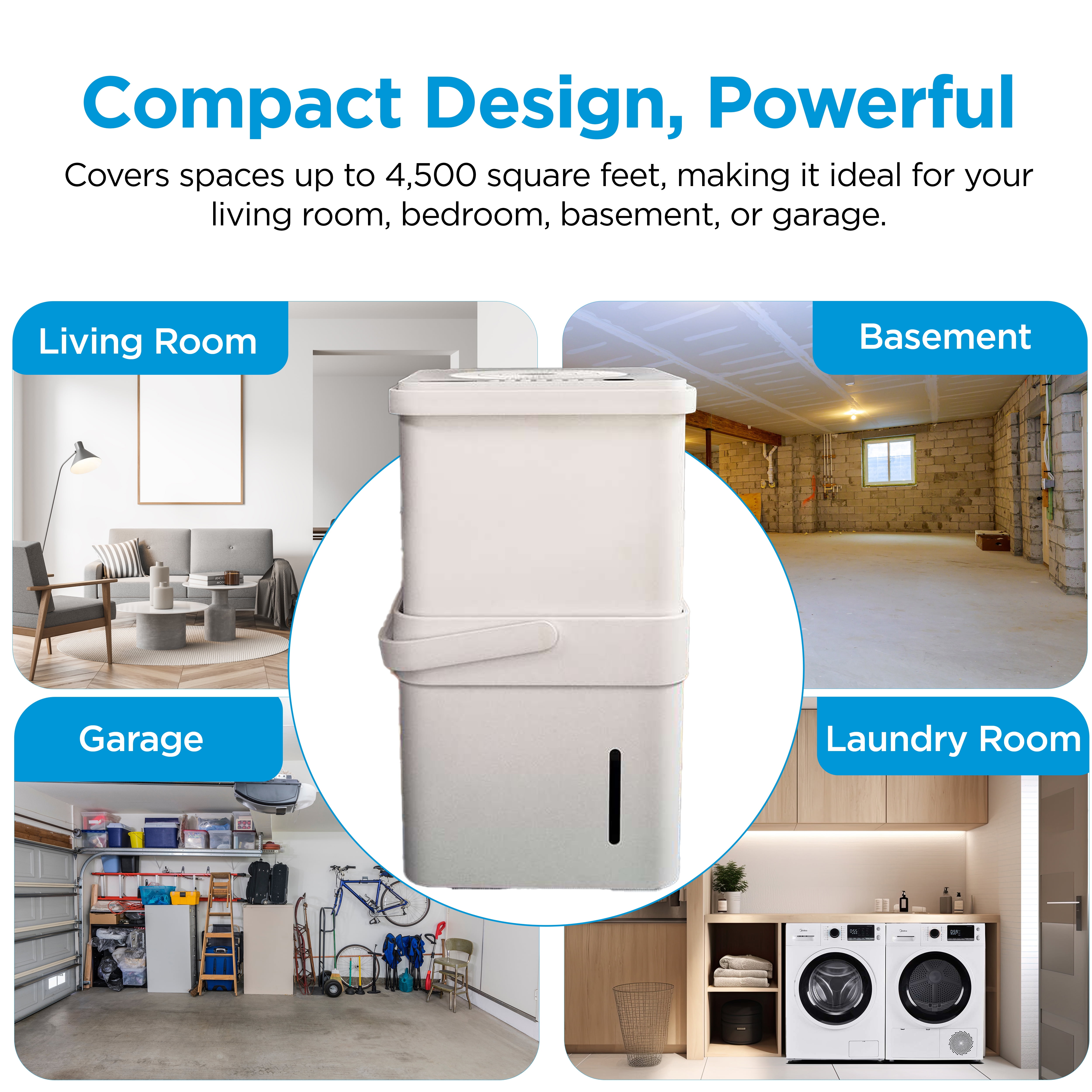 Efficiently removes up to 50 pints of excess moisture from the air per day, covering spaces as large as 4,500 square feet Built-in pump for continuous drainage, allowing you to remove moisture effortlessly, even over long distances or into sinks and elevated drains Easily converts into nested mode for compact storage when not in use Connect to the SmartHome app to monitor and adjust the dehumidifier’s settings from your mobile device, and receive voice commands through Amazon Alexa and Google Home Exceeds government energy efficiency standards, allowing you to save money and conserve energy while enjoying the features you love Covered by a 2-year parts and labor warranty, double the industry standard, for added peace of mind