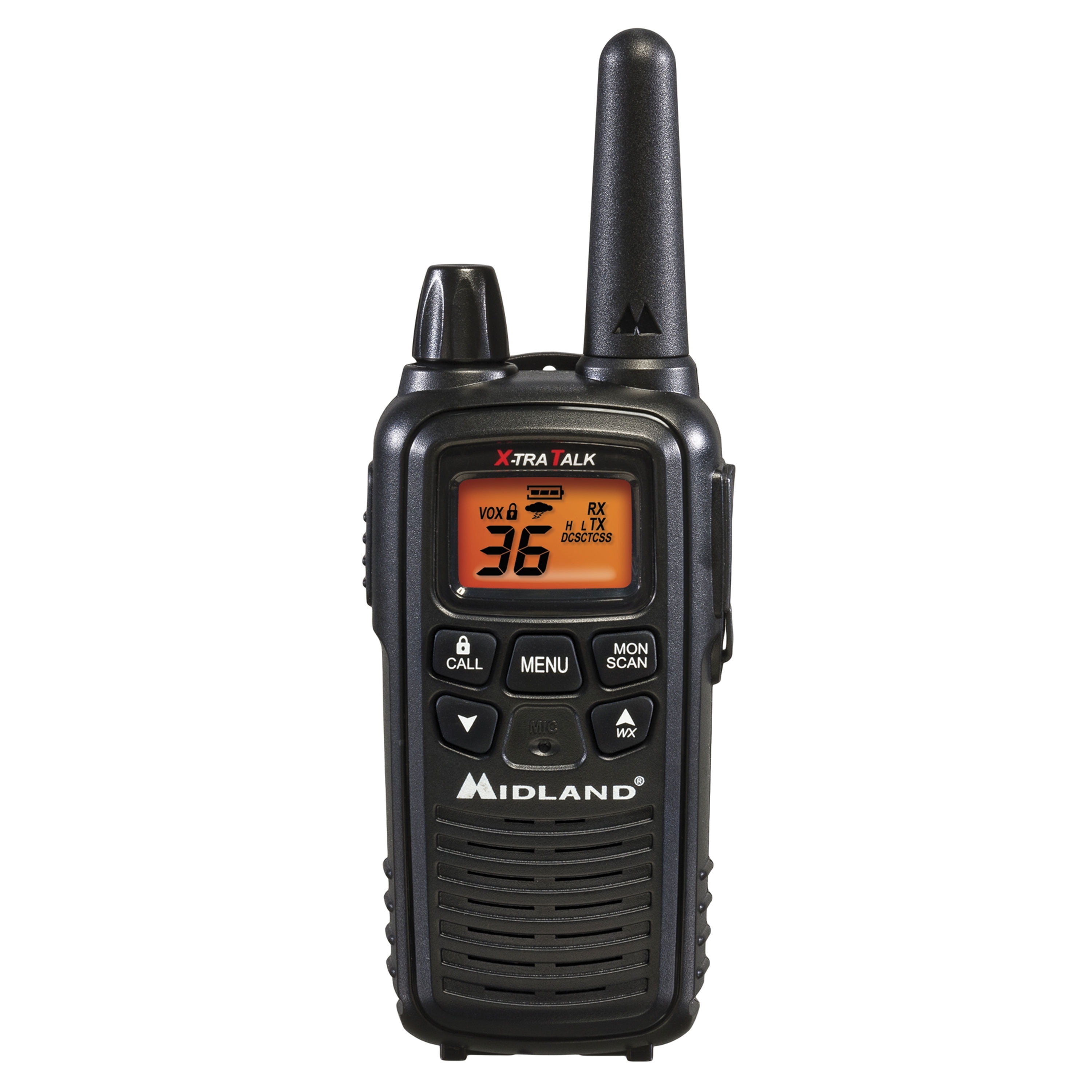 Reach up to 30 miles away (line of sight) with the Midland LXT600. Adjust the power settings between hi/lo output to conserve battery life. Silent operation allows you to communicate covertly. Privately broadcast across 36 channels with 121 different privacy codes, for up to 2662 different channels. *Maximum range achieved over open land and/or water under optimum conditions