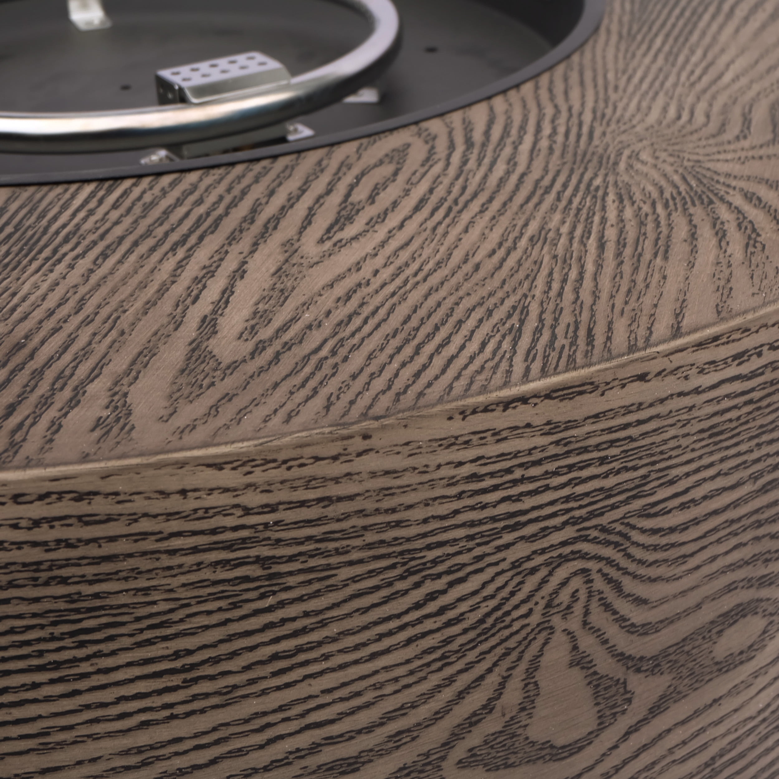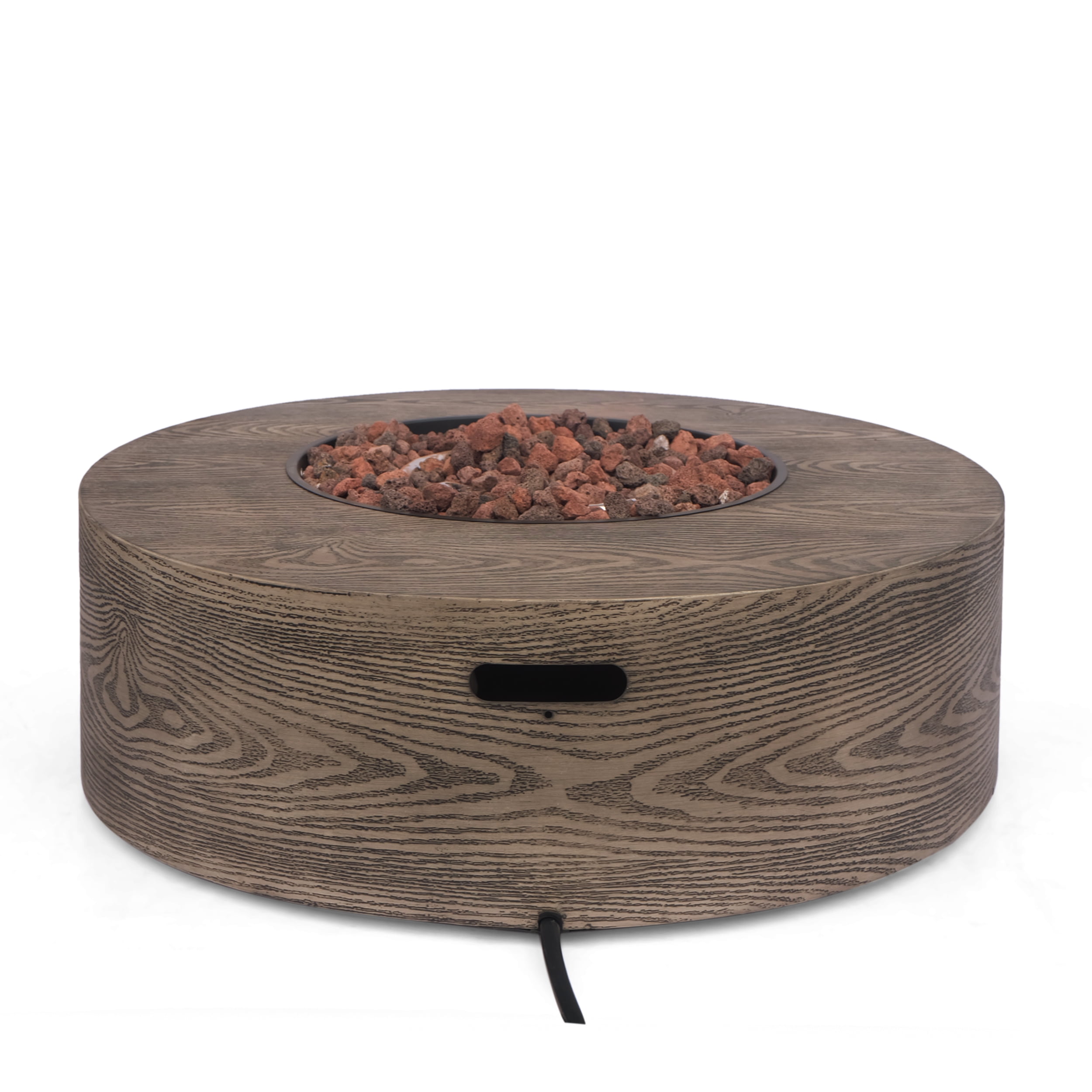 Enjoy the full view of warm flames against the night sky with drinks and those closest to you. With 50,000 BTU and a round structure of sleek, powder-coated iron with a rustic wood finish, this piece not only offers an incredible upgrade in style but is also perfect for parties due to its easy seating arrangement and matching tank holder. From intimate conversations around a cozy fire to stargazing on cool summer nights, our wonderful fire pit will have no trouble gathering everyone together for hours of quality time. IRON FIRE PIT WITH FINISH: Our fire pit is designed to be both stylish and provide light and warmth. Made from iron with a powder coating for a durable build, this fire pit features a brown wood finish for a rustic look. 50,000 BTU: Featuring a round shape and a BTU of 50,000, our fire pit allows easy seating arrangement for you and your guests, providing light and warmth all around during those chilly evenings. TANK HOLDER: This fire pit comes with a matching tank holder to keep your propane tank inconspicuous. This is also made of iron so you can arrange this piece however you please and your set will always look classy. DIMENSIONS: Choose an accessory that is the perfect size for you and your furniture. This fire pit is 37.50” W x 37.50” D x 11.50” H and the tank holder is 15.25” W x 15.25” D x 19.75” H. You will love how much your space can transform with the simple addition of this charming fire pit. NO ASSEMBLY REQUIRED: No assembly is required for this fire pit. Simply place the lava rocks in the pit without covering the burner, and then plug in your standard size propane tank and enjoy your fire pit.