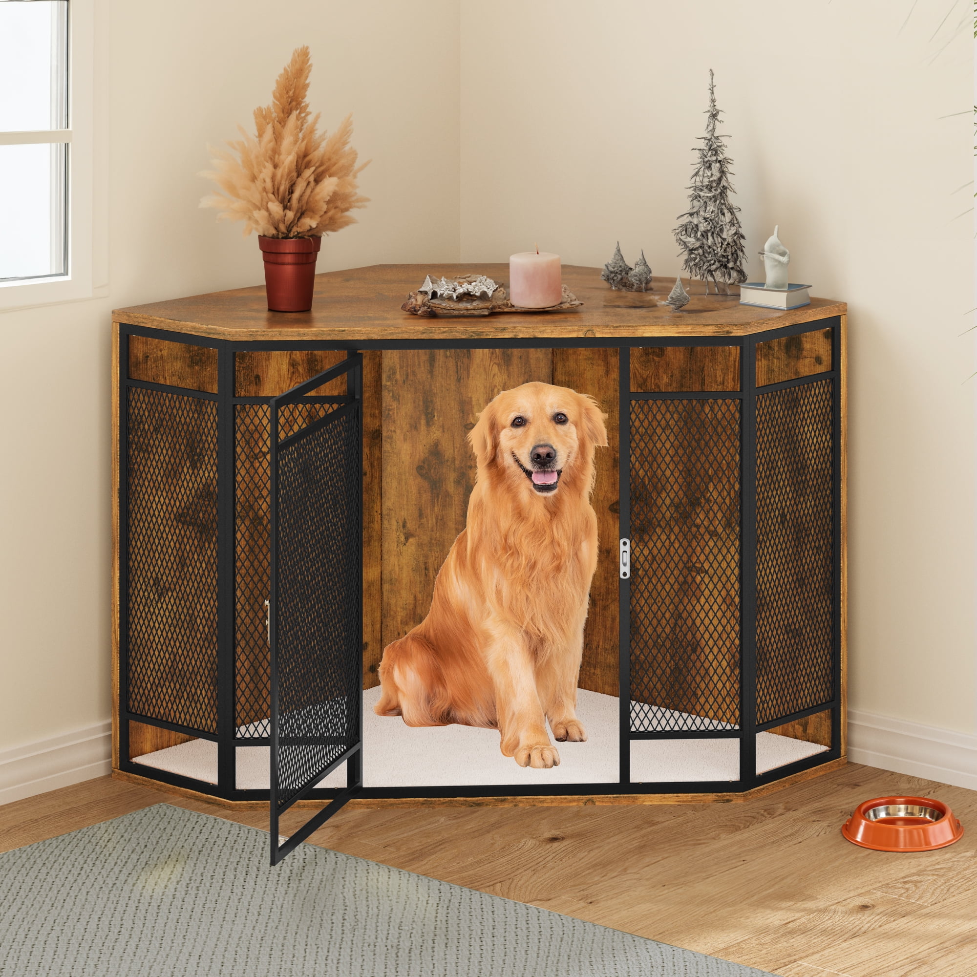 Single door metal dog crate, 36L x 24W x 27H inches Includes free divider panel, leak-proof plastic pan, carrying handle, rubber feet to protect floors and a 1 year Manufacturer’s Warranty. Two slide-bolt latches securely lock door in place Dog crate folds flat for convenient storage, travel and portability Strong and sturdy metal crate design creates a safe place for your pet while you’re away