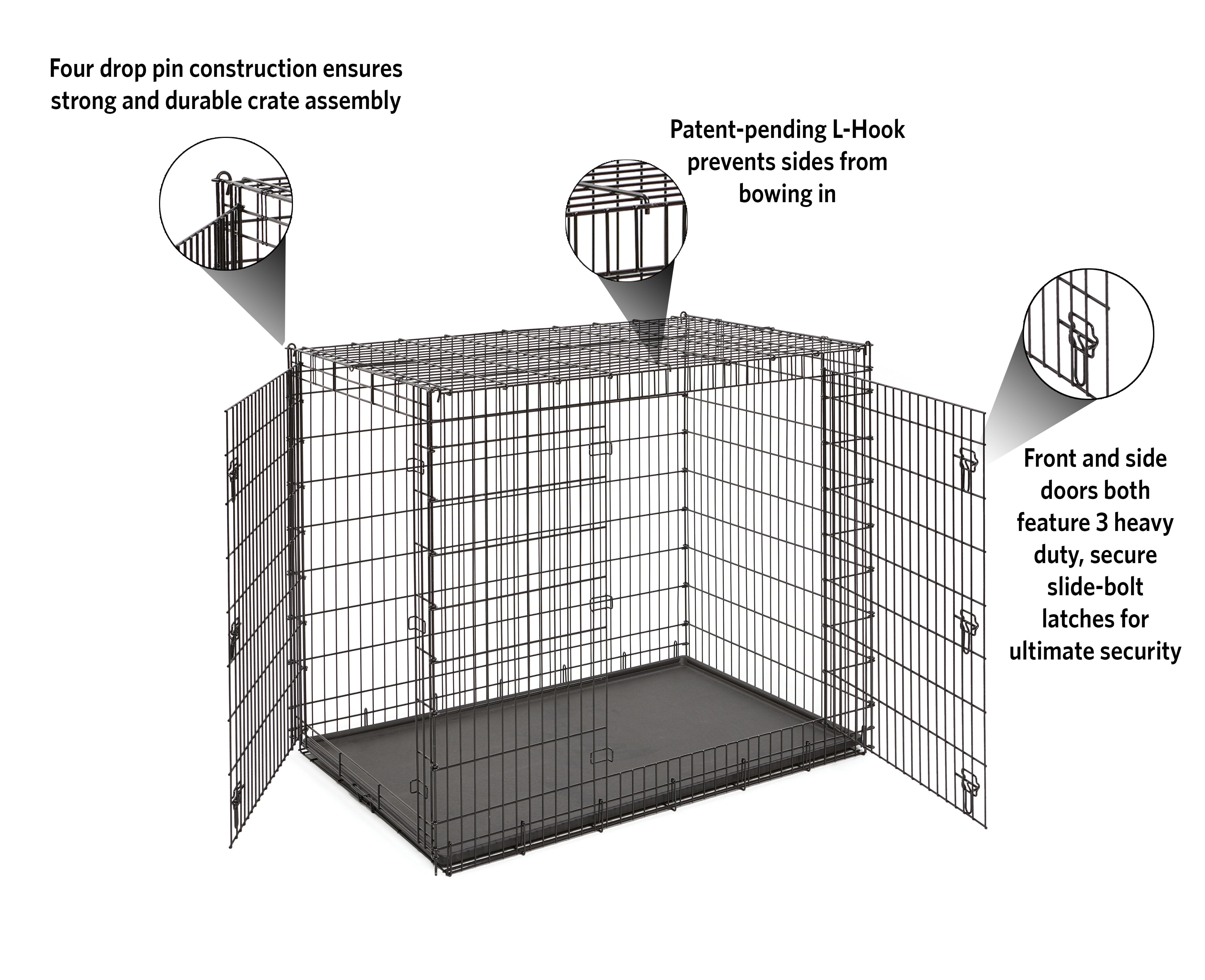 MidWest Homes For Pets Wire Dog Crate, Double Door, Foldable, Durable, Leak-Proof Pan Included, Metal, Black, Extra Extra Large, 54″ L x 37″ W x 45″ H