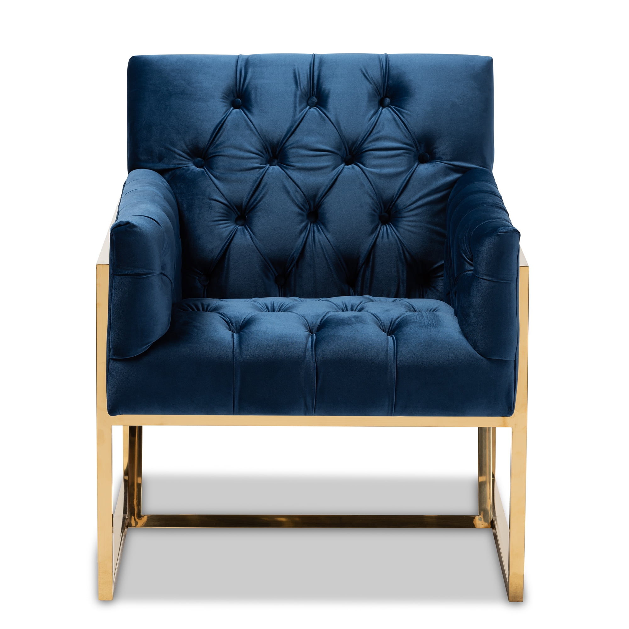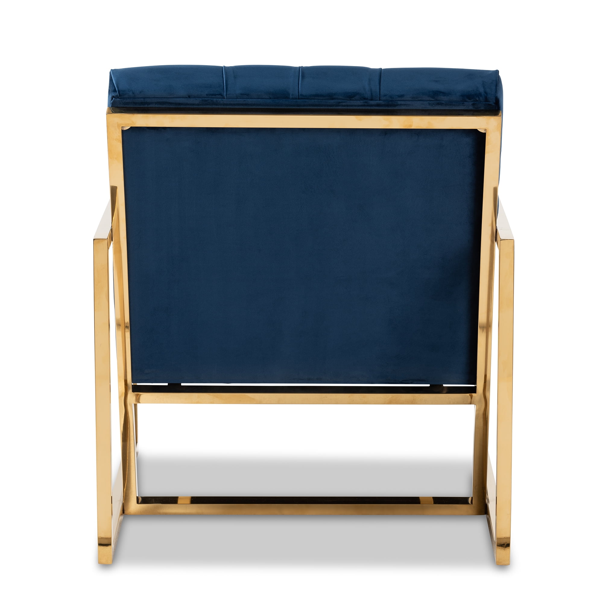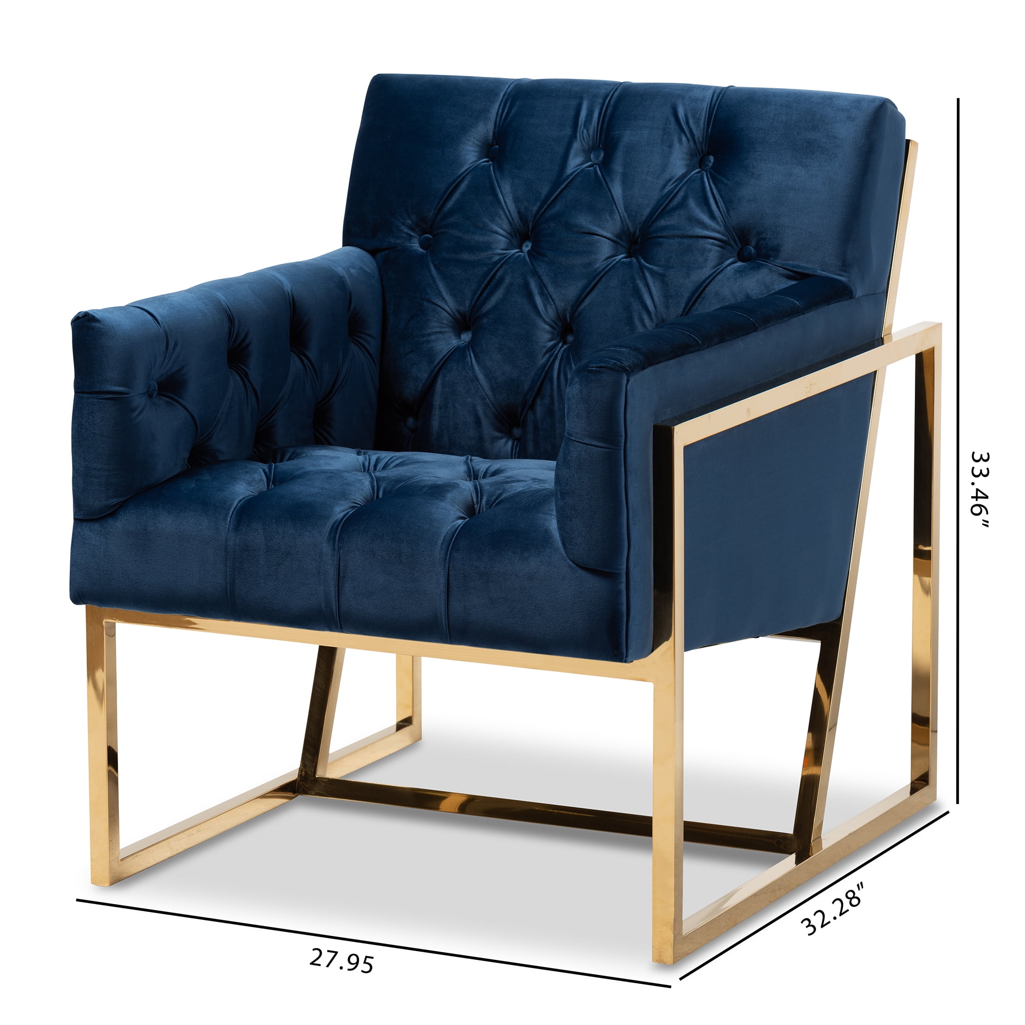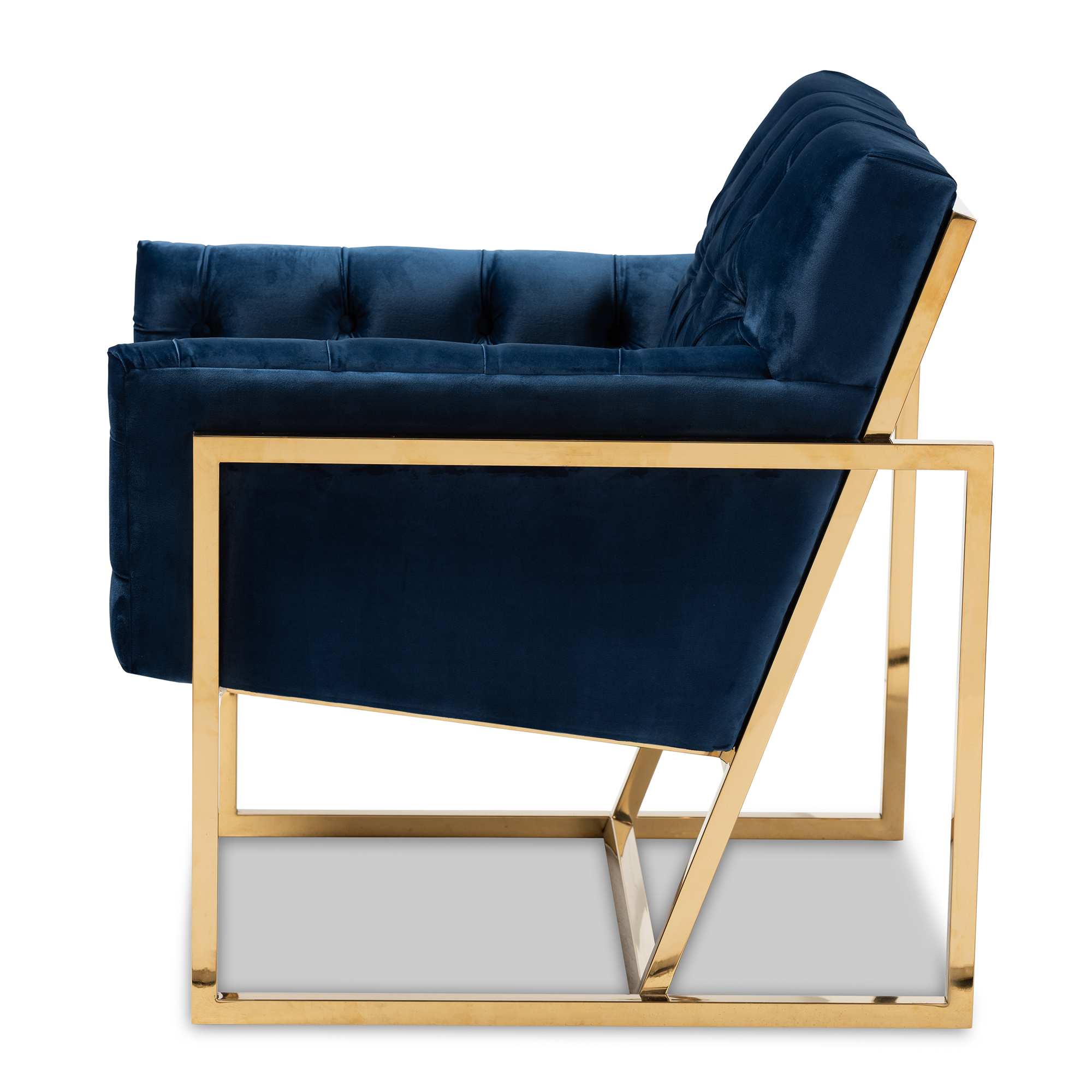 Milano Modern and Contemporary Navy Velvet Fabric Upholstered Gold Finished Lounge Chair