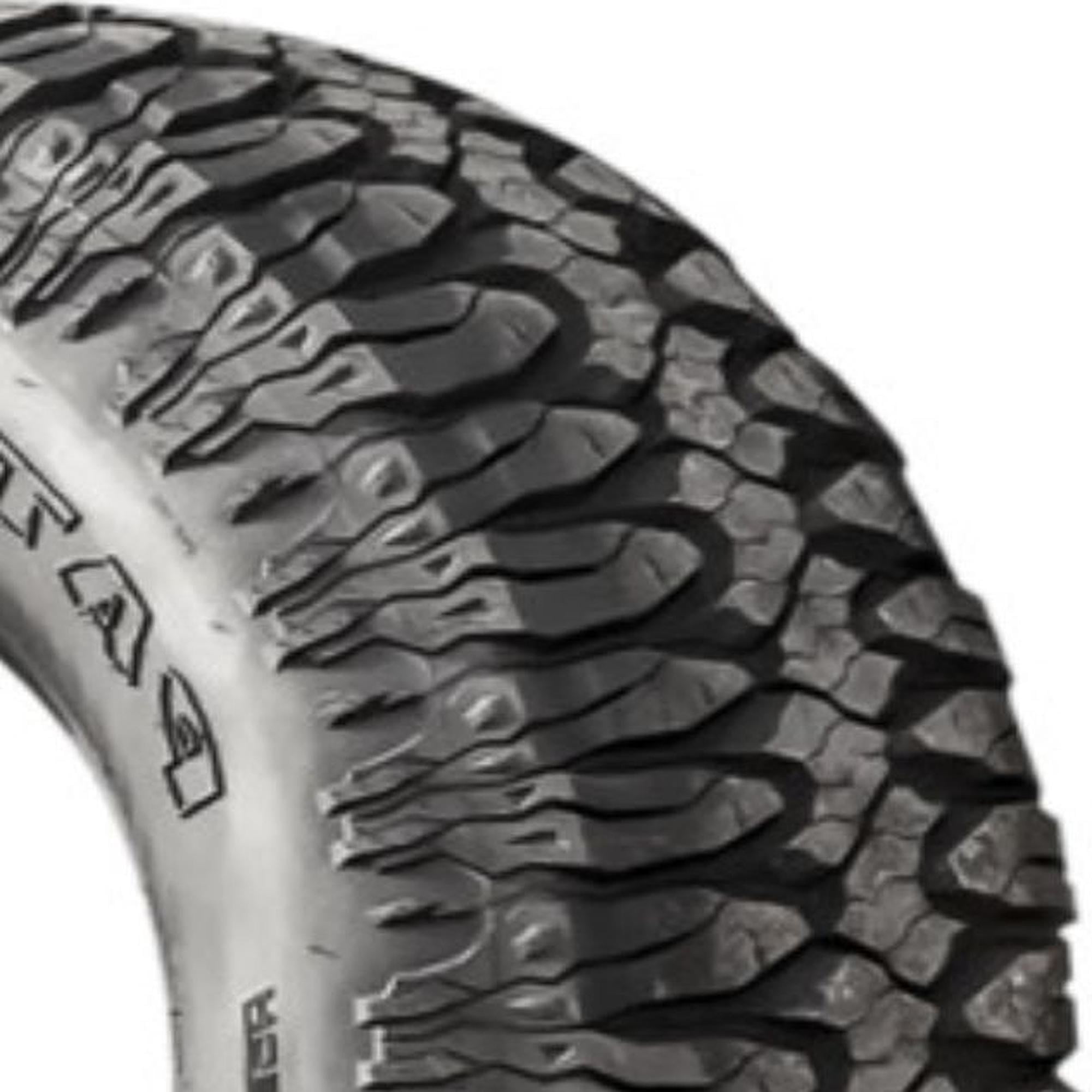 Designed for use on light trucks and SUVs that frequently drive off-road Aggressive tread pattern with large voids provides traction even on the most challenging terrain Integrated cross-directional siping ensures a stable footprint reducing the risk of chunking MILETECH 3-Ply sidewalls give enhanced rigidity for superior sidewall durability Silica-enriched tread compound adds cut and chip resistance Size: LT33X12.50R22 Load Range: F Product May Vary From Picture Wheel/Rim Not Included