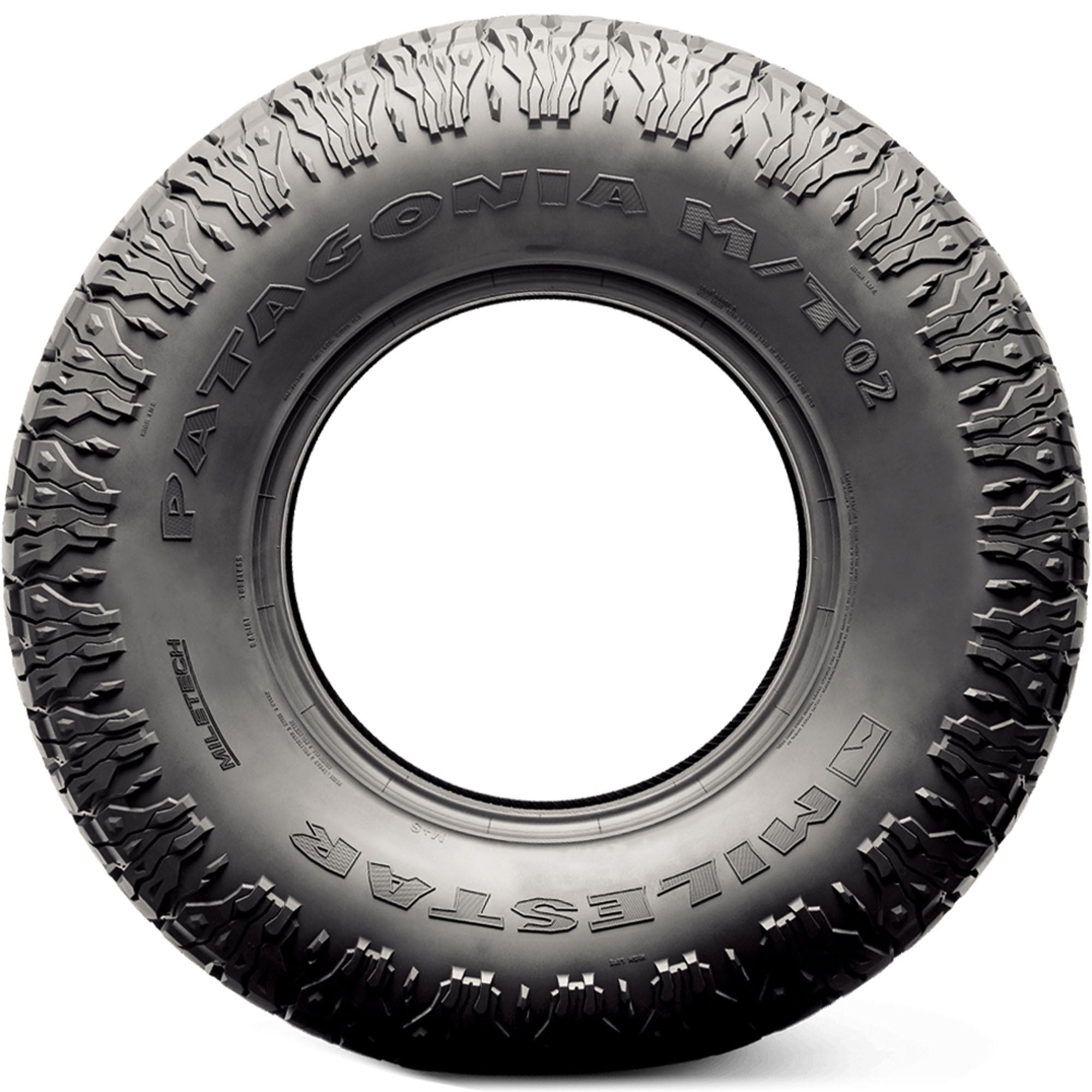 Milestar Patagonia M/T-02 LT38X13.50R17 127Q D OVERVIEW The Milestar PATAGONIA M/T-02 is a mud terrain tire designed for use on light trucks. With an aggressive tread pattern and large voids, the PATAGONIA M/T-02 provides traction even on the most challenging terrain. In addition, the PATAGONIA M/T-02 is engineered with MILETECH 3-Ply sidewalls, which enhances sidewall rigidity for superior durability