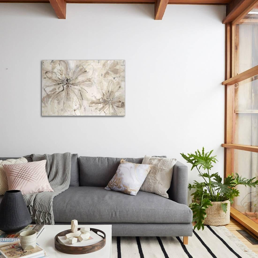 Title: Milk and Honey Floral Finished Size: 54″ x 36″ x 1.5″ Artist: Jodi Maas Theme Type: Abstract Botanical Image is Printed Directly onto Cotton Canvas and Stretched Over 1.5″ Wooden Bars Hanging Hardware Included Hand-finished by Experts Style Type: Wall Art Unframed