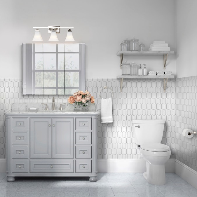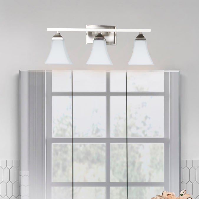 - Place this fixture directly above the mirror and sink to add the perfect lighting to your bathroom