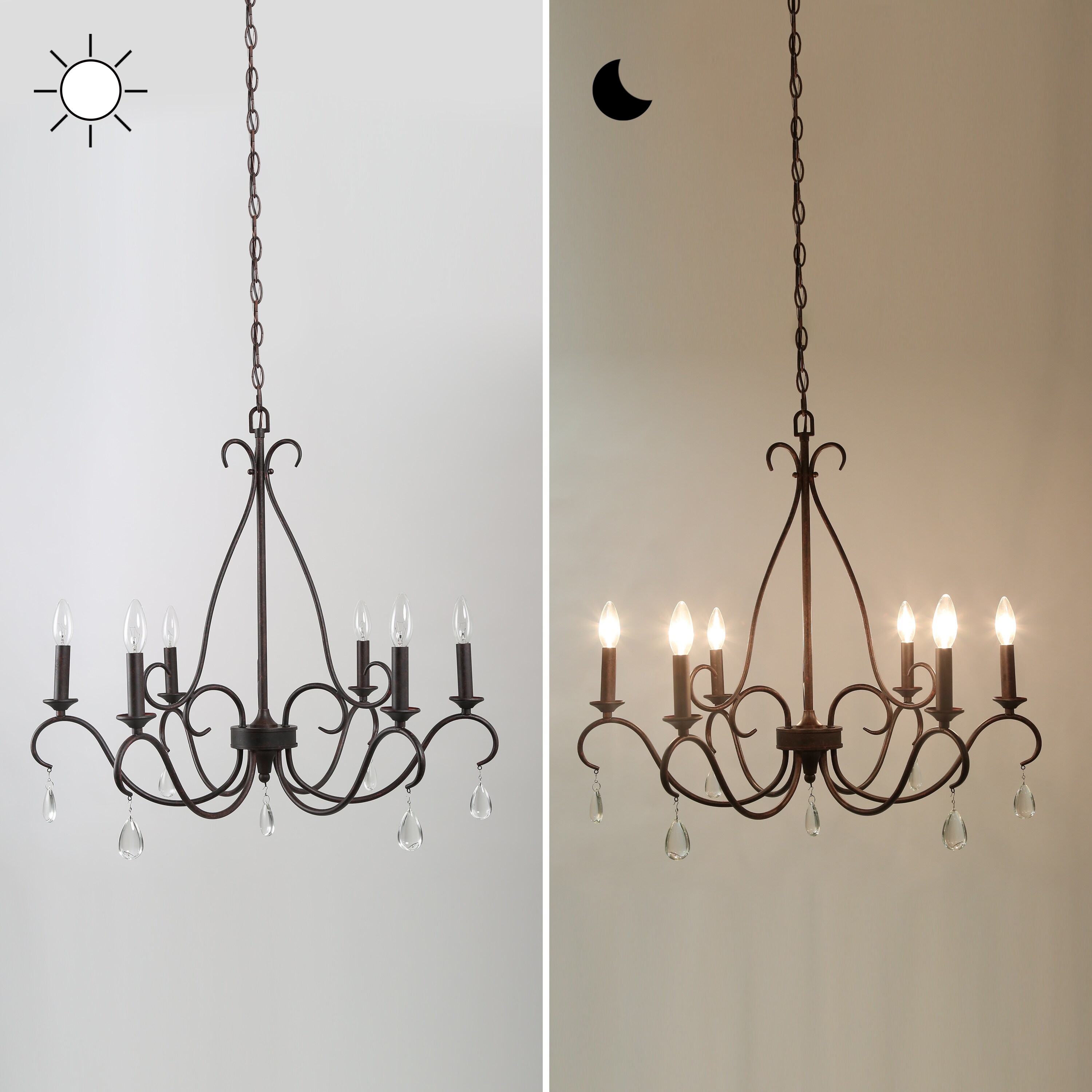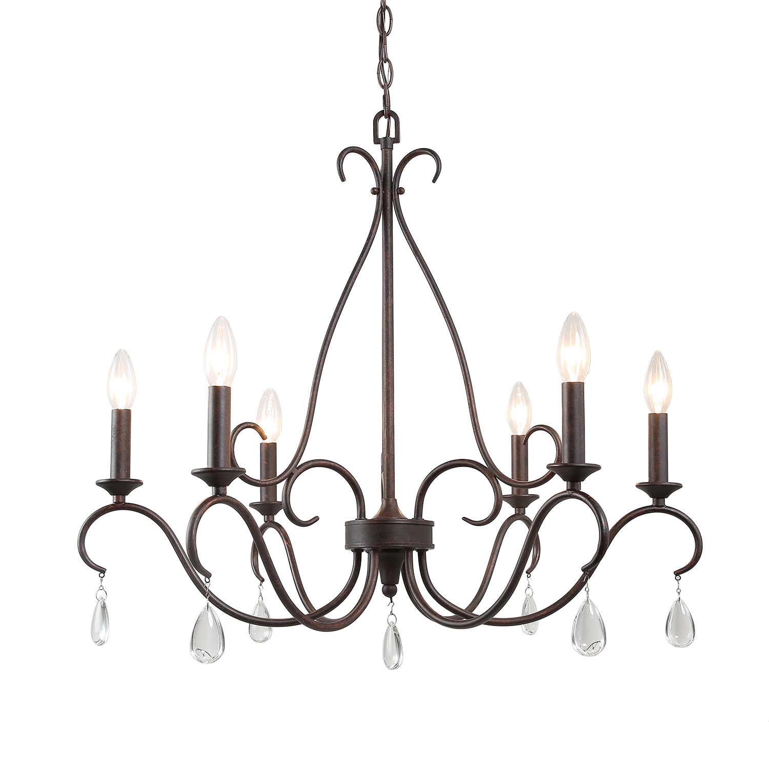 Transform your home with this stunning vintage chandelier, masterfully handcrafted from metal. Its elegant frame showcases a classic candle-style silhouette, enhanced by exquisite water droplet crystal elements that add a touch of sophistication. This piece seamlessly blends timeless charm with modern trends, making it a versatile choice for any room in your home.