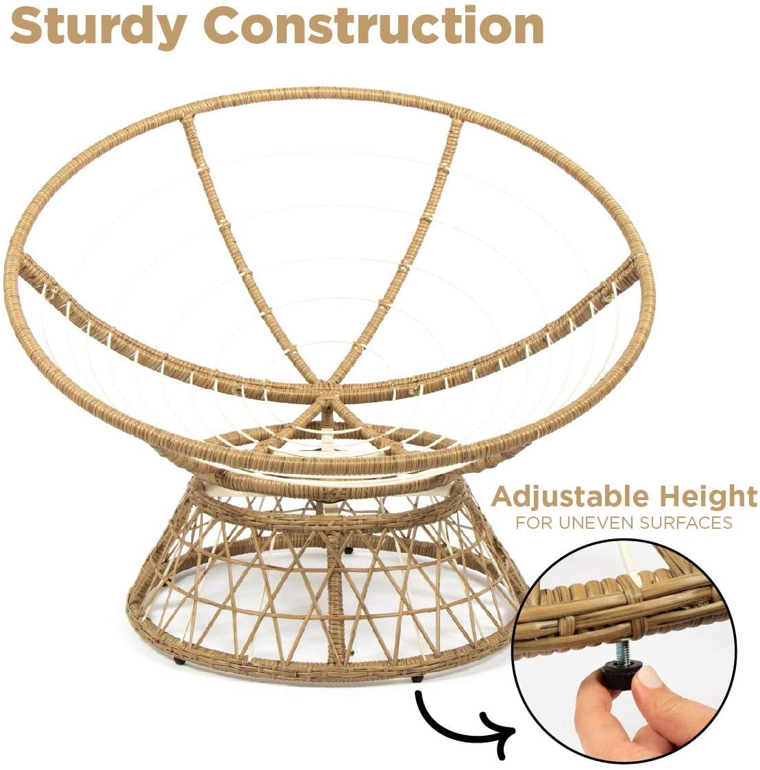 Milliard Papasan Chair with 360-Degree Swivel, Wood, Color – Tan