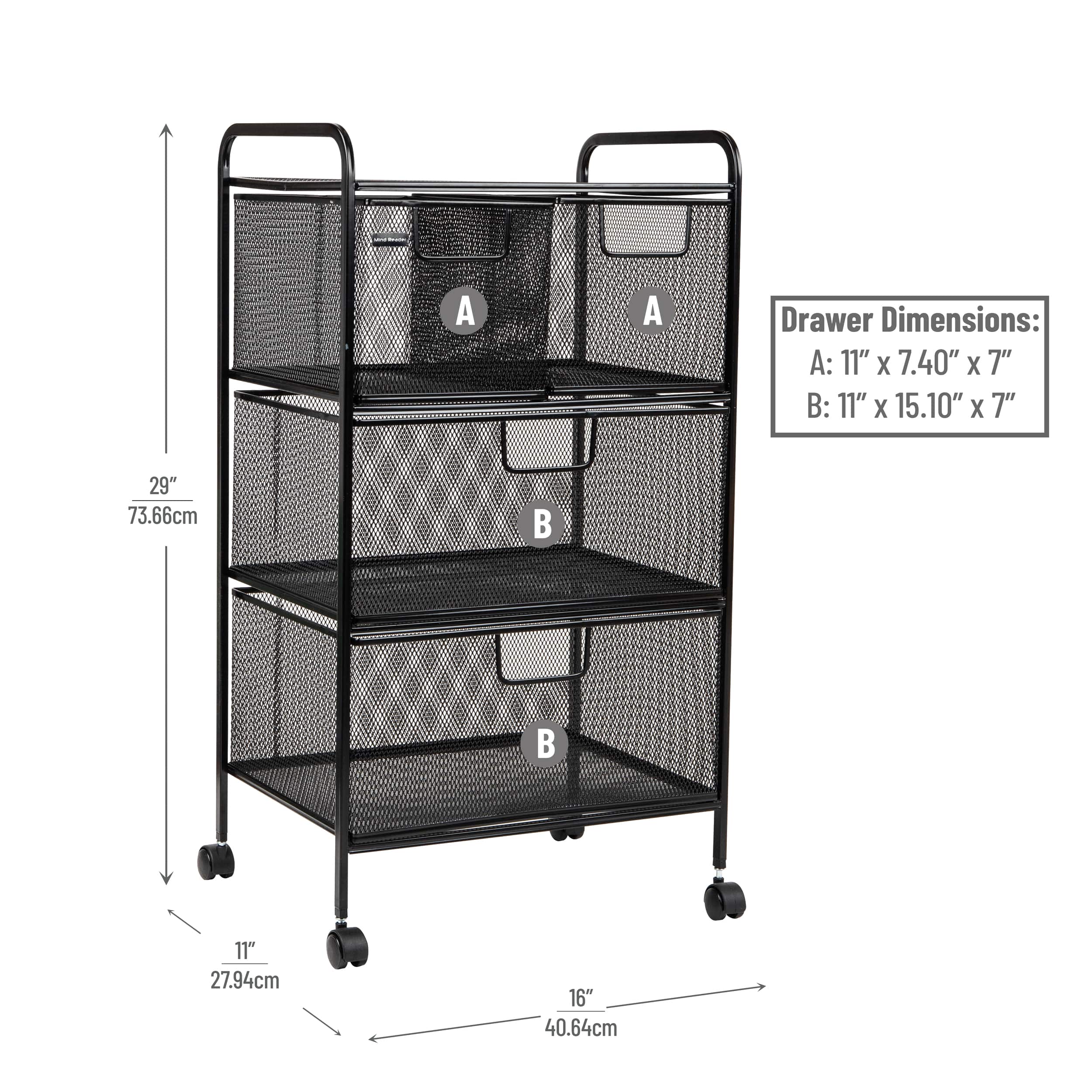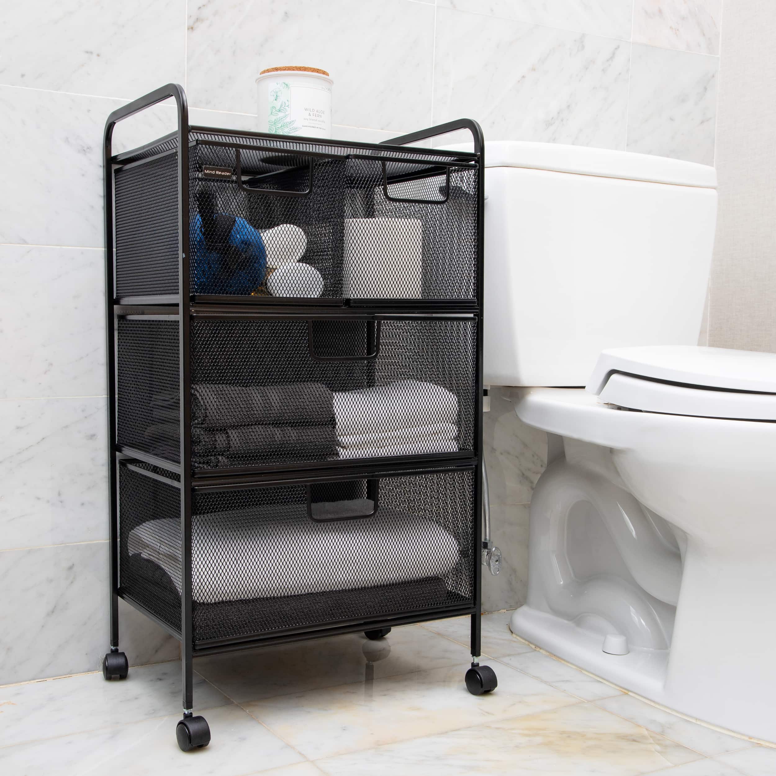 Mind Reader – Cart with Drawers, Laundry Organizer, Utility Cart, Bathroom, Kitchen, Metal Mesh, 16″L x 11″W x 29″H – Black
