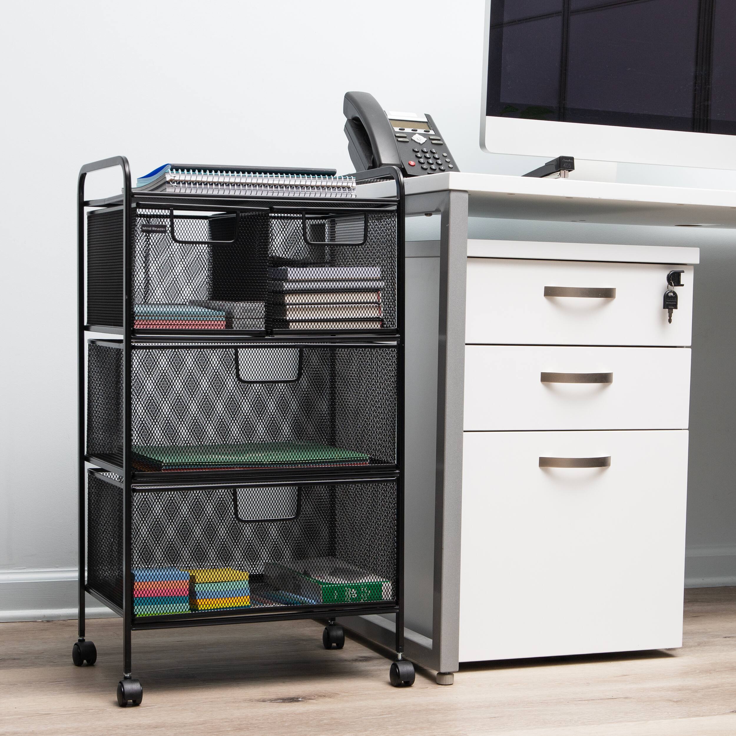 Effortlessly Organize Your Space with this Rolling Cabinet This sleek and modern rolling cabinet is a versatile storage solution that offers convenience and style to any home or office. Its minimalist design allows it to blend in seamlessly with any decor. Move this lightweight storage cart from room to room when needs change, as it has omnidirectional wheels that allow you to move the cart easily. With four spacious and removable drawers, this file cabinet offers ample storage space for all your office supplies, documents, craft materials, or personal items. The drawers are made from sturdy mesh material, making it easy to see what’s inside. Plus, the smooth gliding drawers make it effortless to access your items quickly and easily. Measuring 16 long x 11.25 wide x 29 inches tall (40.6 x 28.58 x 73.66 cm), this file cabinet can fit snugly in a closet, or a corner of your room. It’s the perfect gift for anyone who values simplicity and organization, whether they’re a college student, a work-from-home employee, or anyone looking to keep their space tidy and clutter-free.Invest in this rolling cabinet from the Network Collection today and discover the convenience and style it brings to your life.