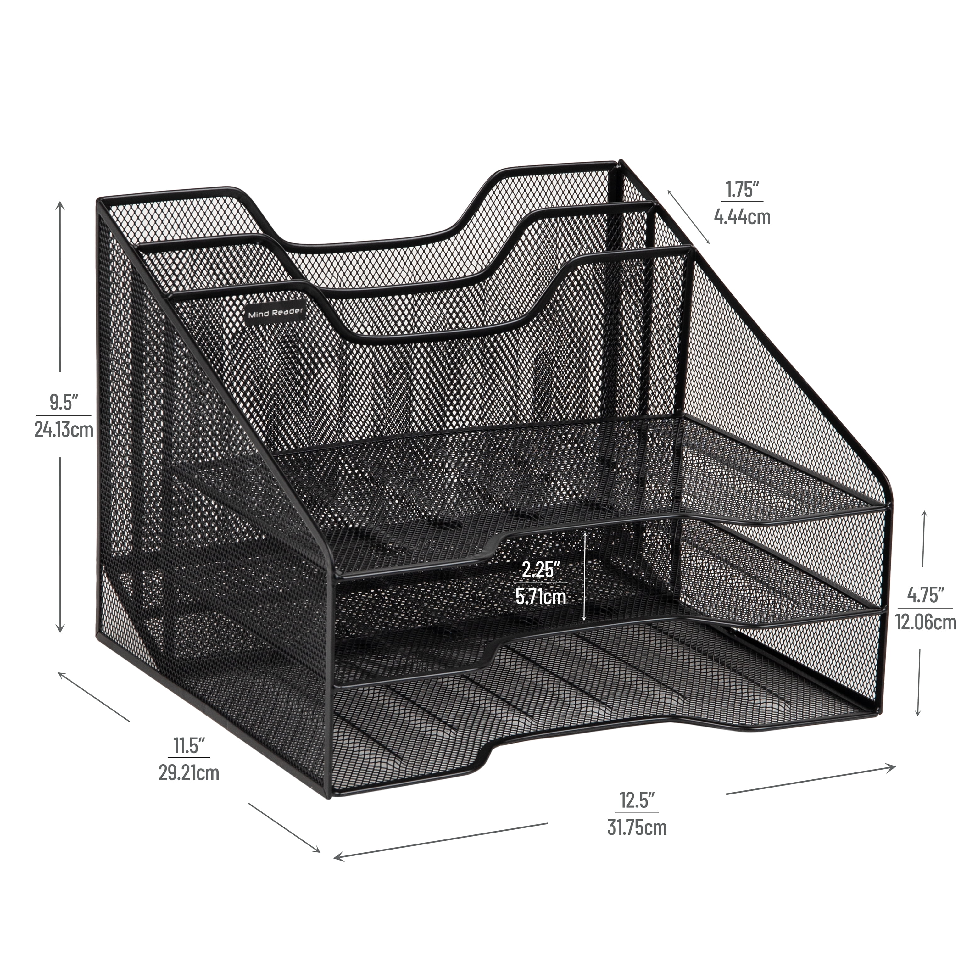 Mind Reader Desktop Organizer, Paper Trays, Metal, 12.5″L x 11.5″W x 9.5″H, 2-Pack, Black