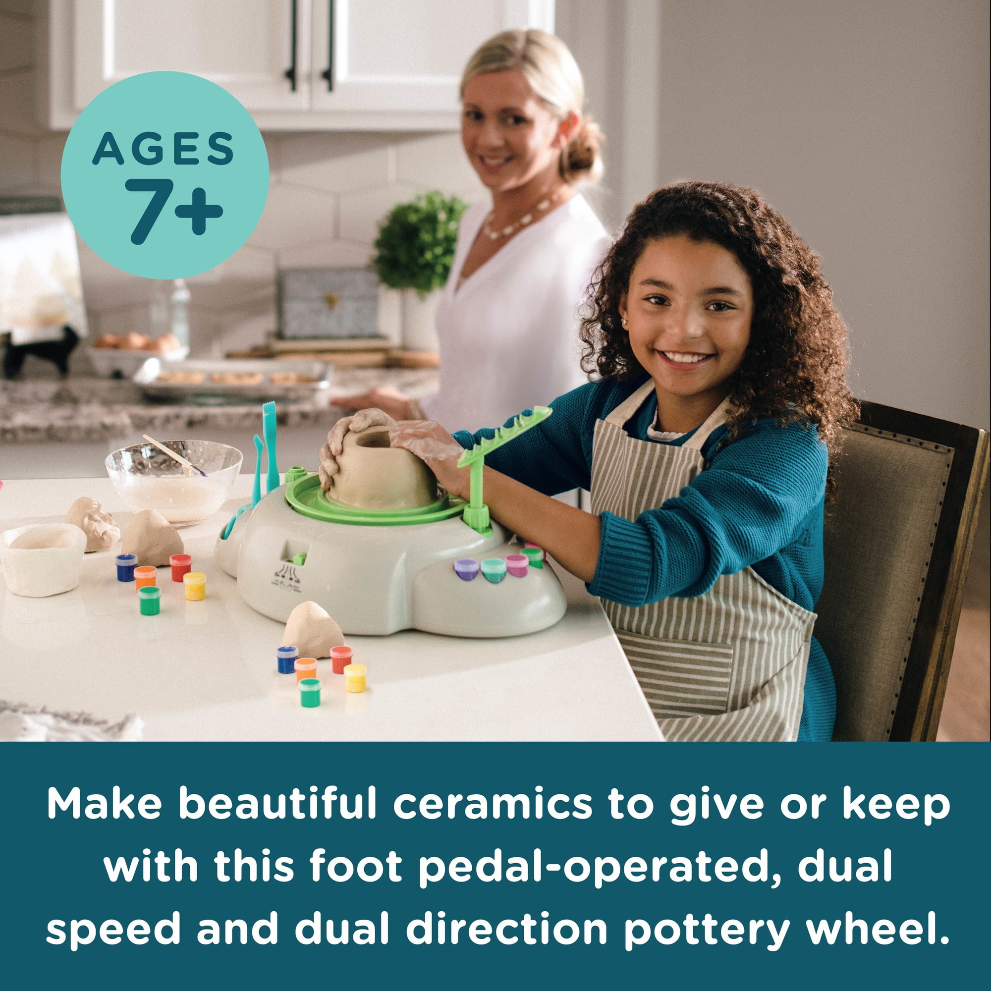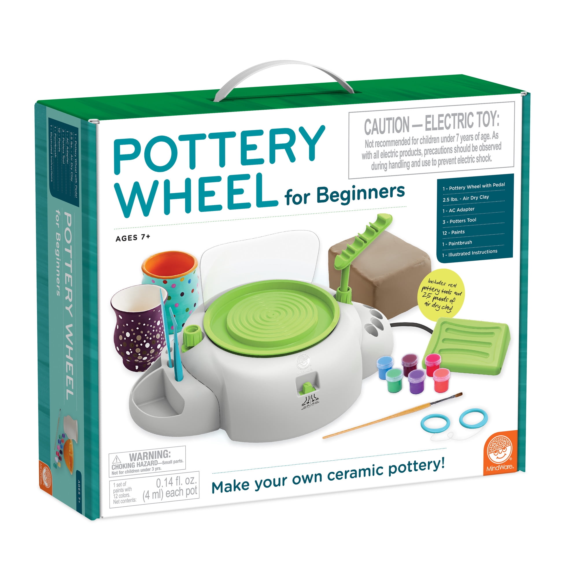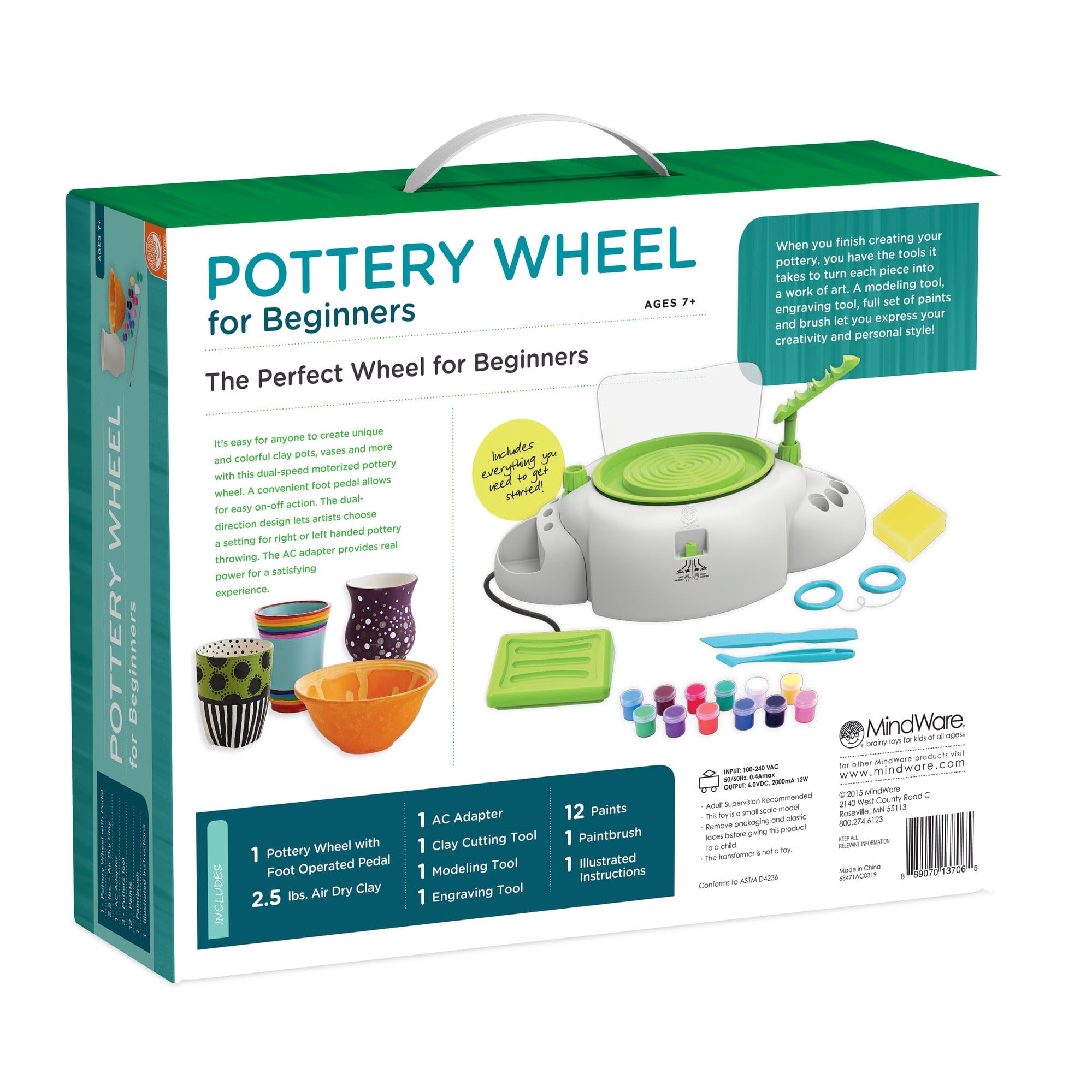 CREATE A CRAFTY SIDE: The Pottery Wheel from MindWare is a wonderful way to introduce children to incredibly fun and beneficial craft of ceramic making. DOABLE AND DURABLE: This is the STRONGEST and MOST DURABLE pottery wheel available for children, making the process of creating fun throughout. EXCELLENT FEATURES TO LAST YOU YEARS: Features a safety stop feature prevents the motor from running if too much pressure is applied, helping you learn valuable pottery skills and preventing the motor from overheating. SHOW YOUR ARTISTIC SIDE: Aside from creating original ceramic creations, this kit from MindWare also includes 12 paints to allow children to fully design their artistic creations INCLUDES: Pottery wheel with pedal, clay, AC adaptor, five tools, 12 paints, paintbrush, illustrated instructions