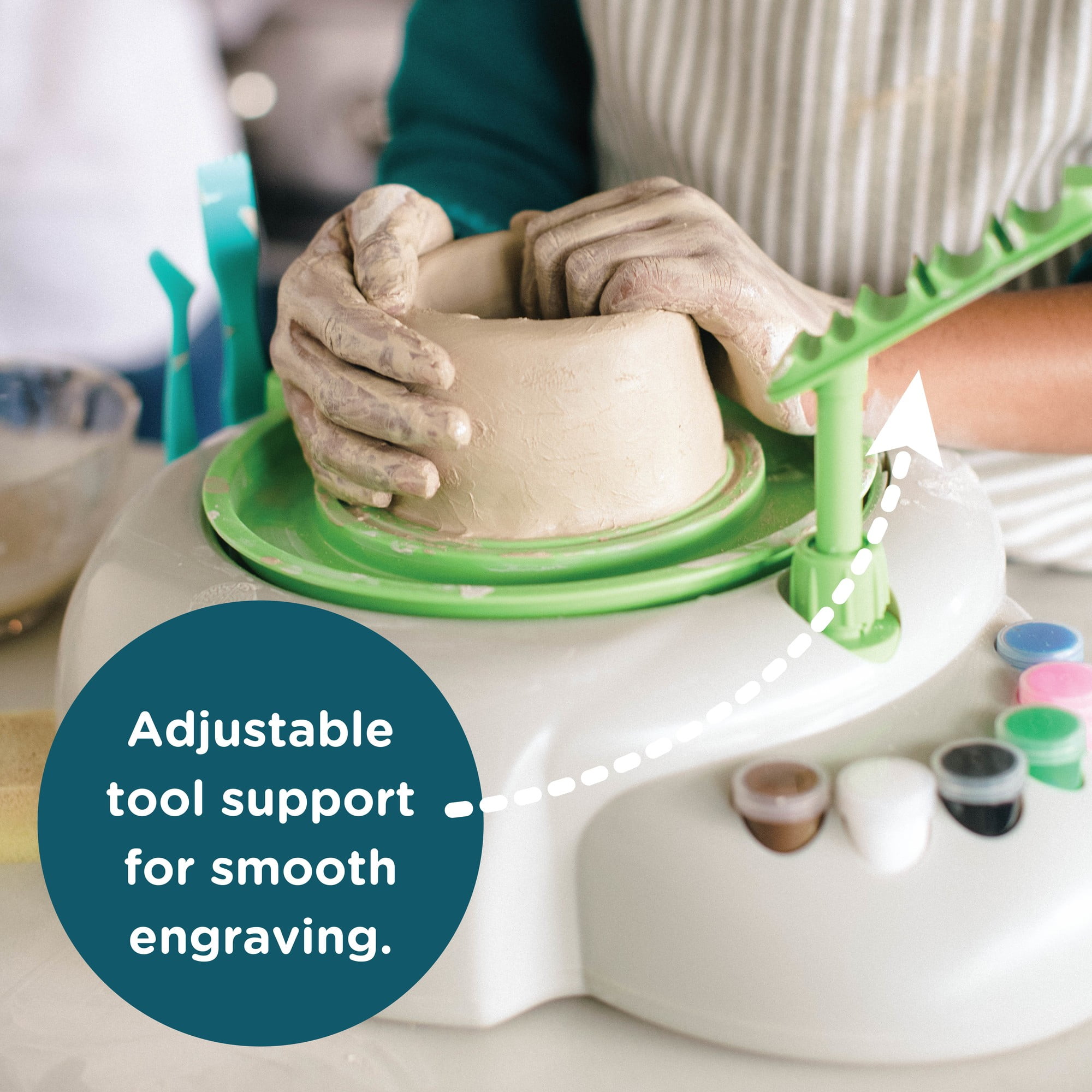 MindWare Pottery Wheel for Beginners, White and Green, Includes Clay, Paint and Tools