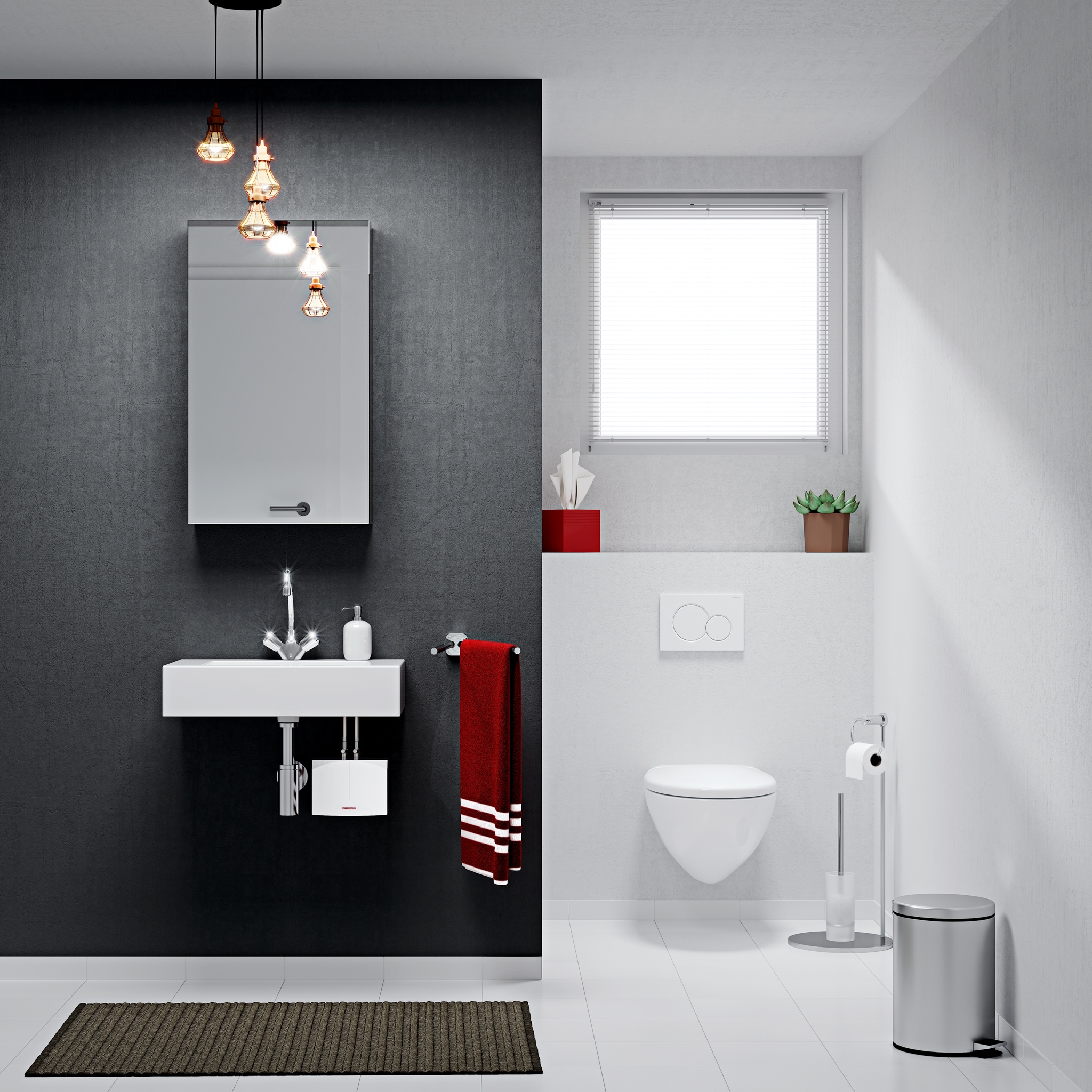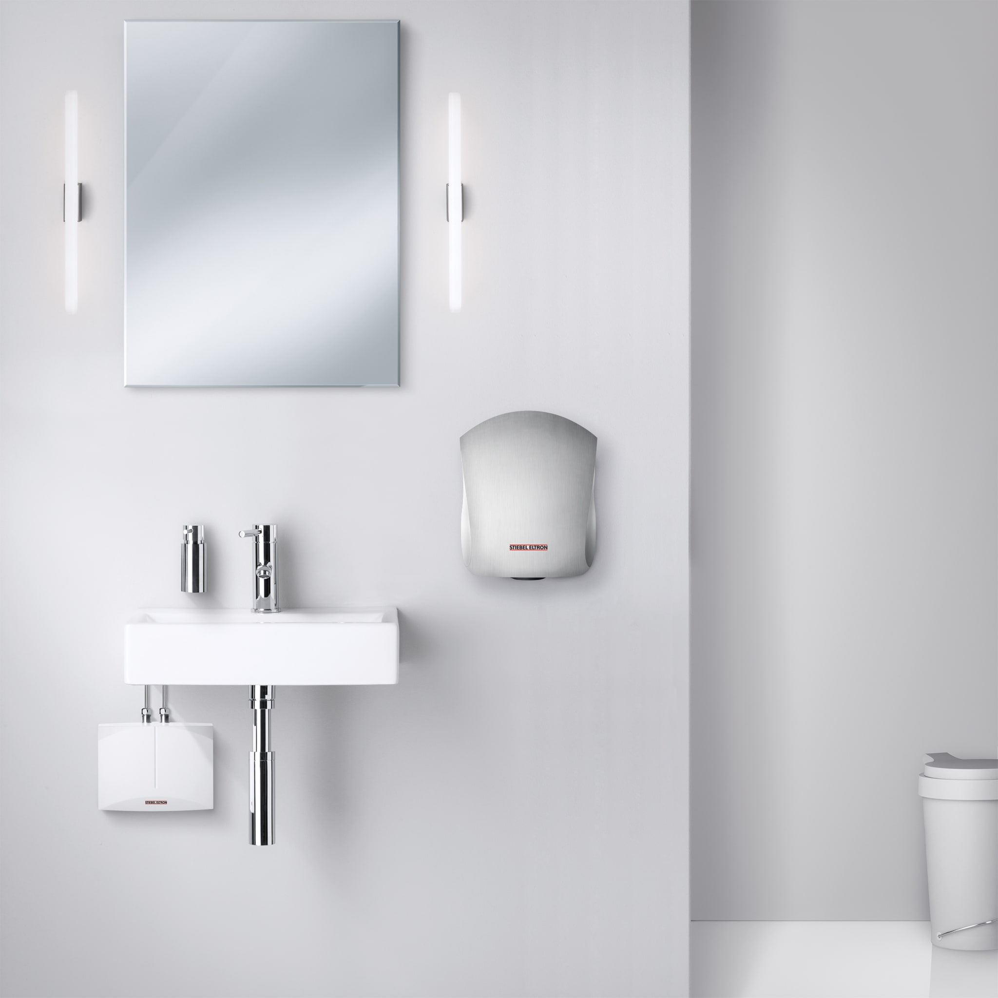 Stiebel Eltron Mini compact tankless point-of-use models excel at supplying warm water at a constant temperature for hand washing at a sink. They are ideal for residential or commercial hand-washing sink applications. The model must be carefully matched to the flow rate of the sink for proper operation. Mini tankless water heaters heat water instantaneously and endlessly at 99% efficiency as it flows through the unit. Unlike tank water heaters, they save energy because they have no stand-by energy losses. The sleek, small design allows installation with the unit visible. Venting is unnecessary. Use the Sizing Guide and Technical Data Chart to determine the correct size for your application. Call Stiebel Eltron at 800.582.8423 with any questions. Meticulously engineered and carefully manufactured, Mini tankless water heaters are designed for years of trouble-free and energy-saving usage.