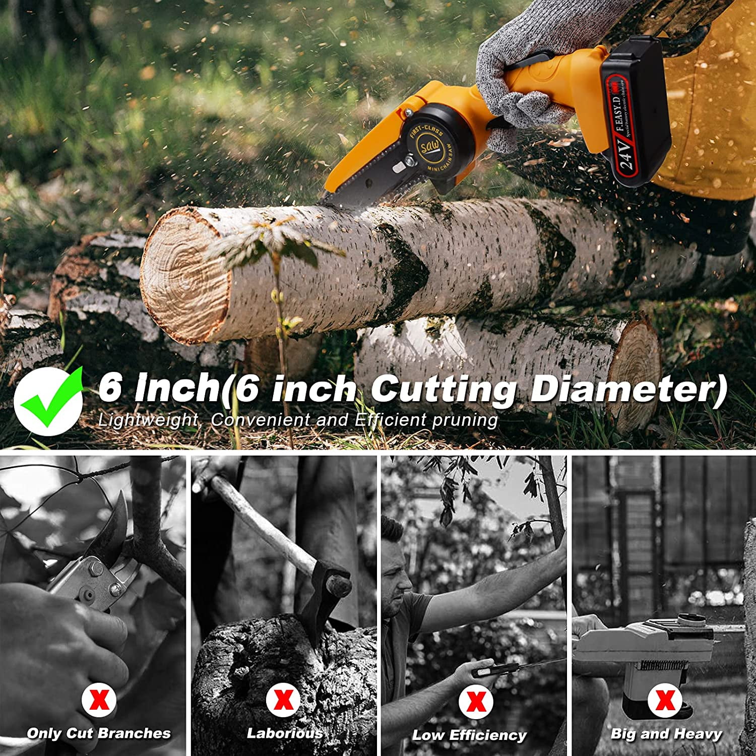 Mini Chainsaw – 6 Inch Electric Chainsaw with 2 Battery,Cordless Chainsaw with Safety Lock , Mini Chainsaw Cordless for Branch Wood Cutting, Garden Pruning, Tree Trimming(2 Battery 2 Chain )