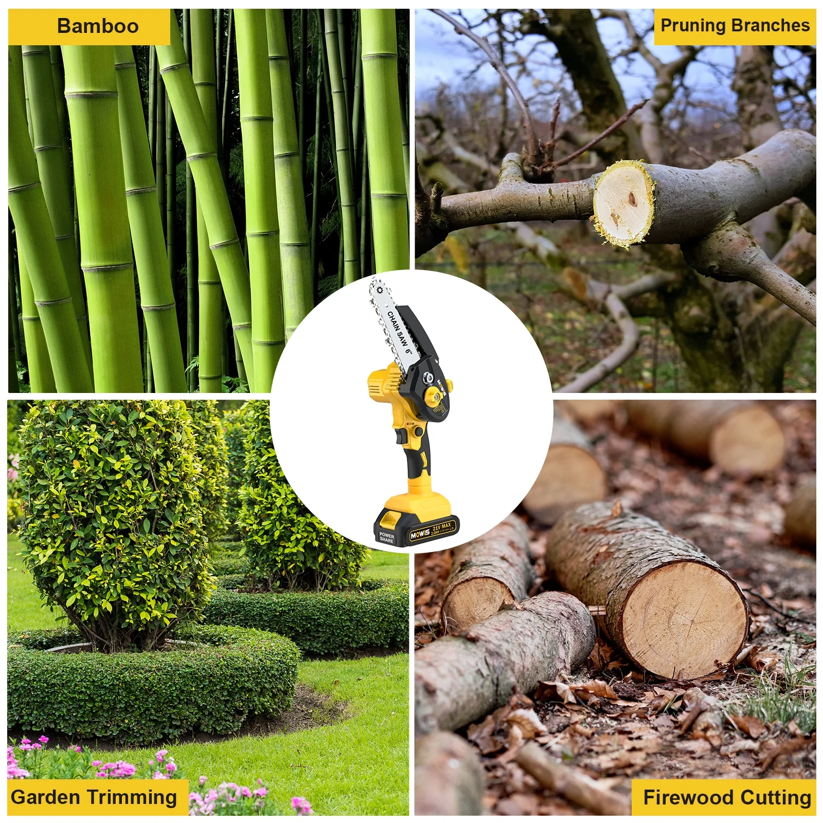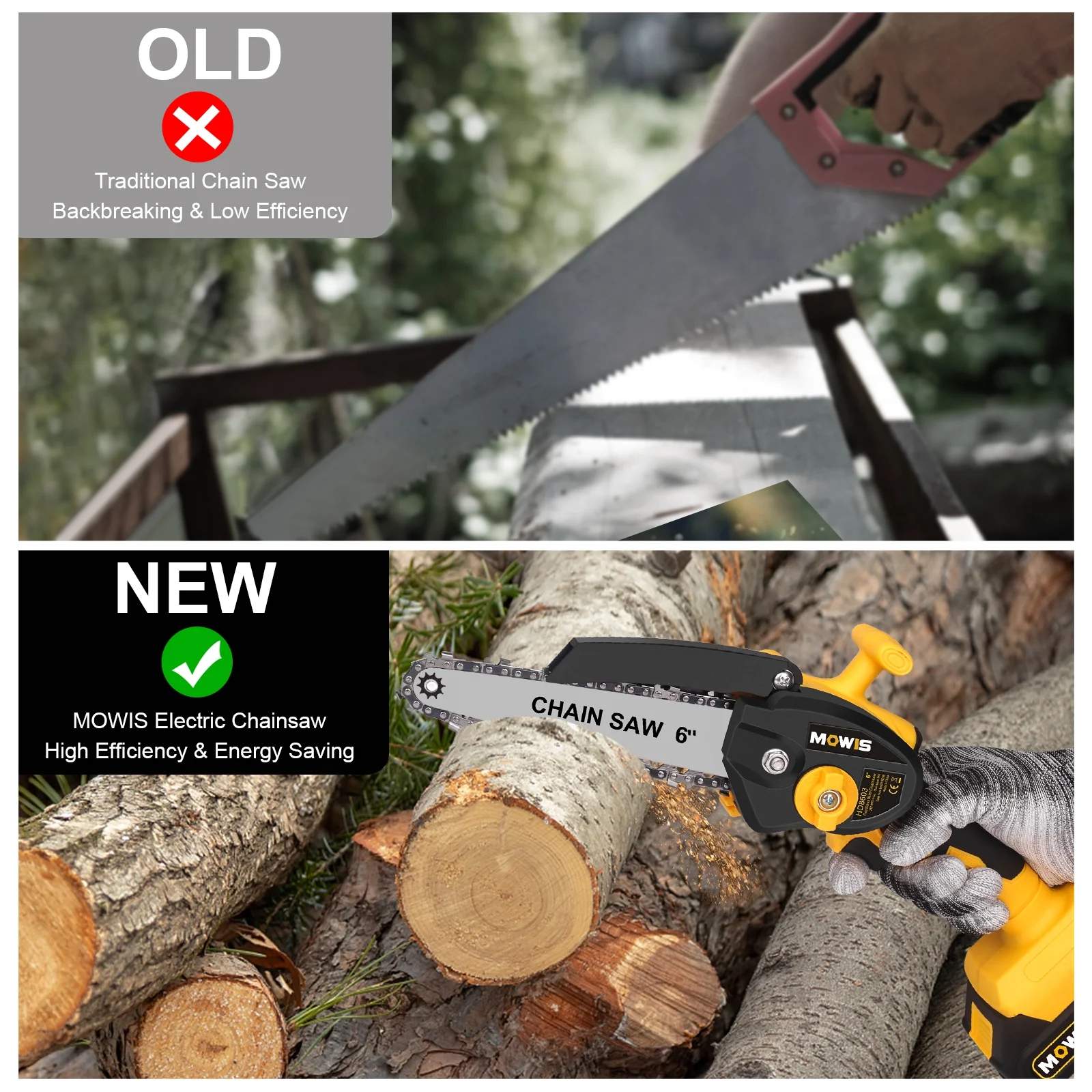 Mini Chainsaw 6 Inch, Mowis Portable Cordless Power Chain Saws, 21V Battery Powered, for Wood Cutting Tree Trimming