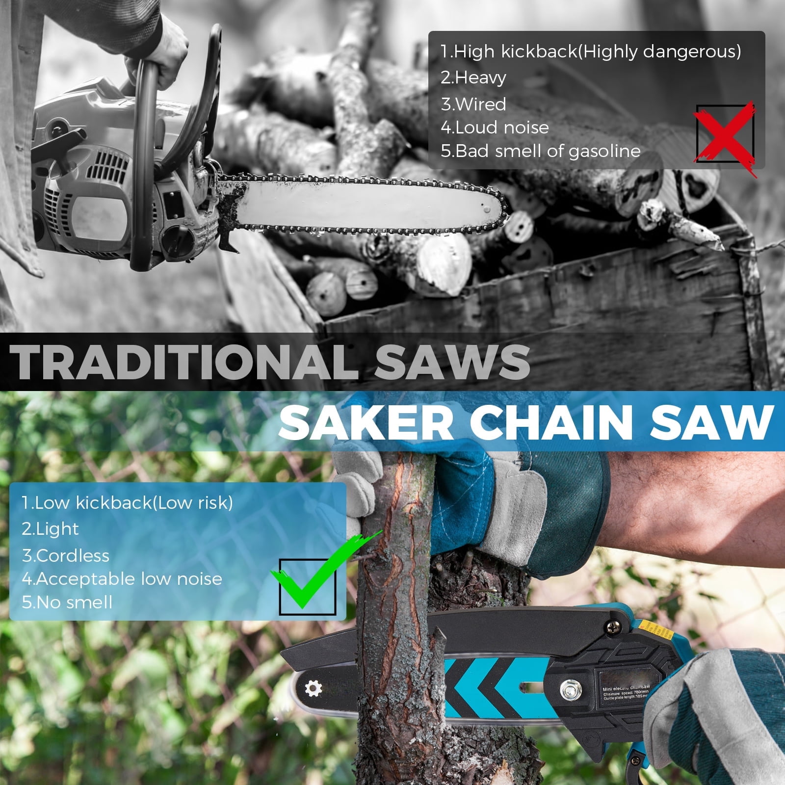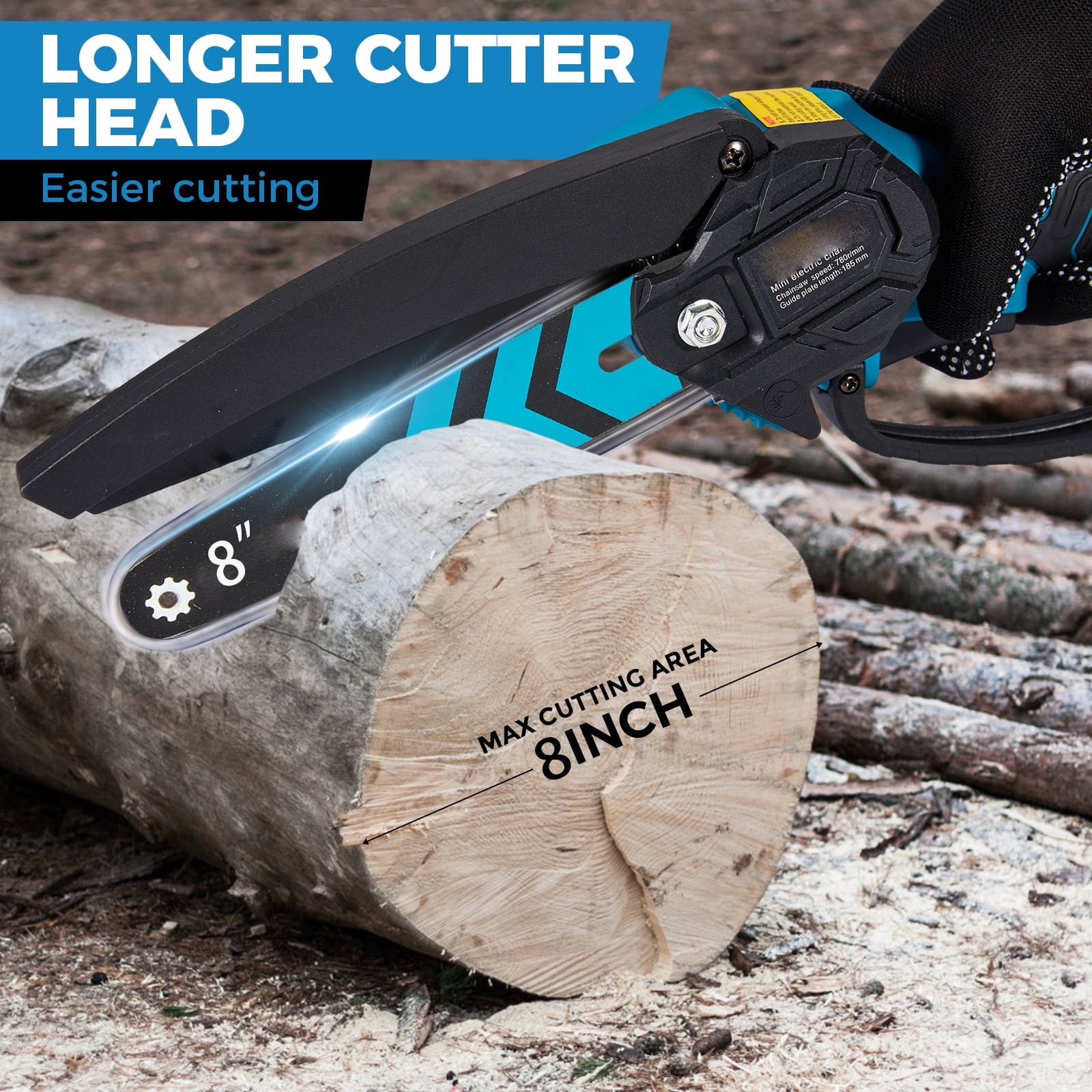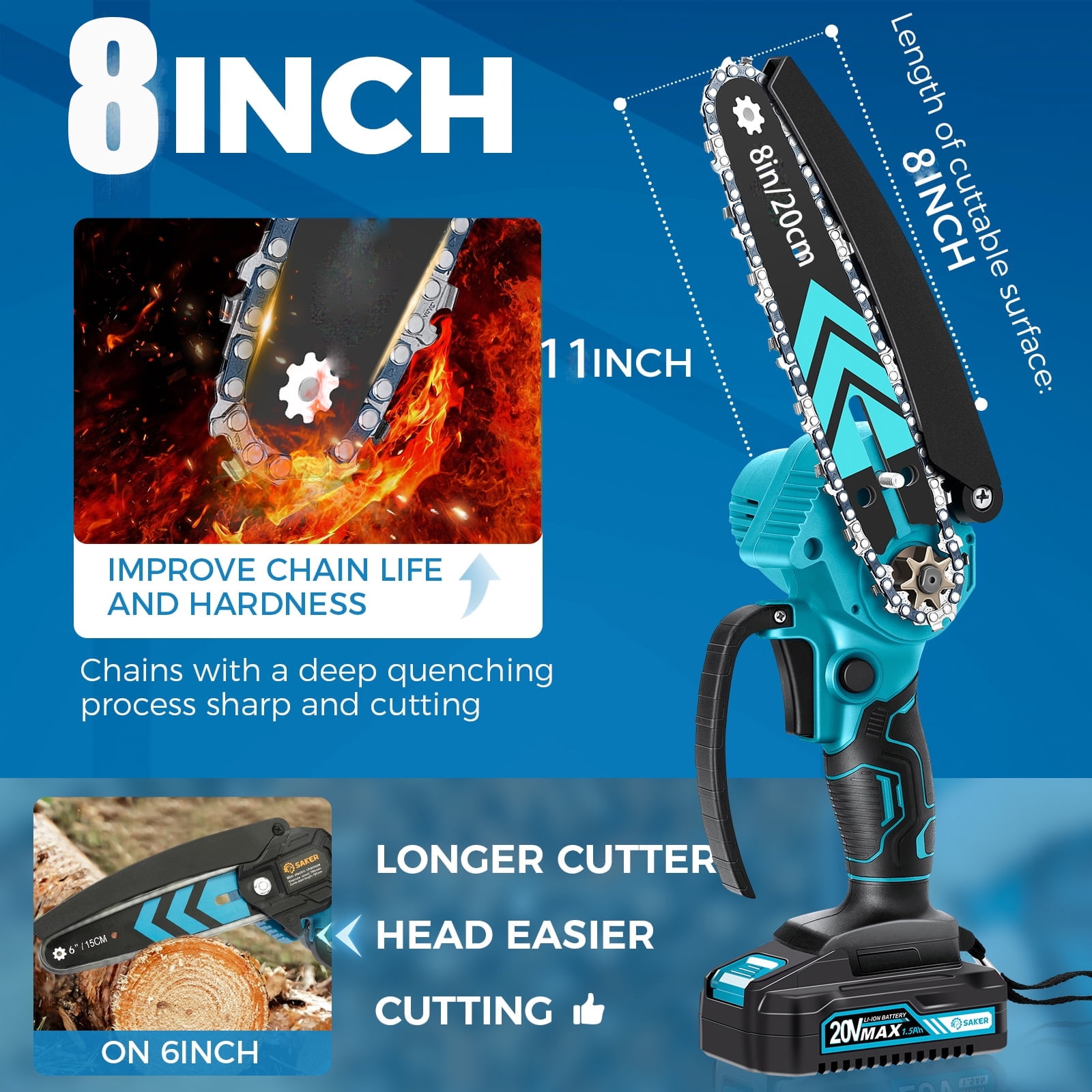 SUSUZI 8-Inch Cordless Chainsaw – 21V Dual Batteries, Brushless Motor for Tree Trimming & Gardening
