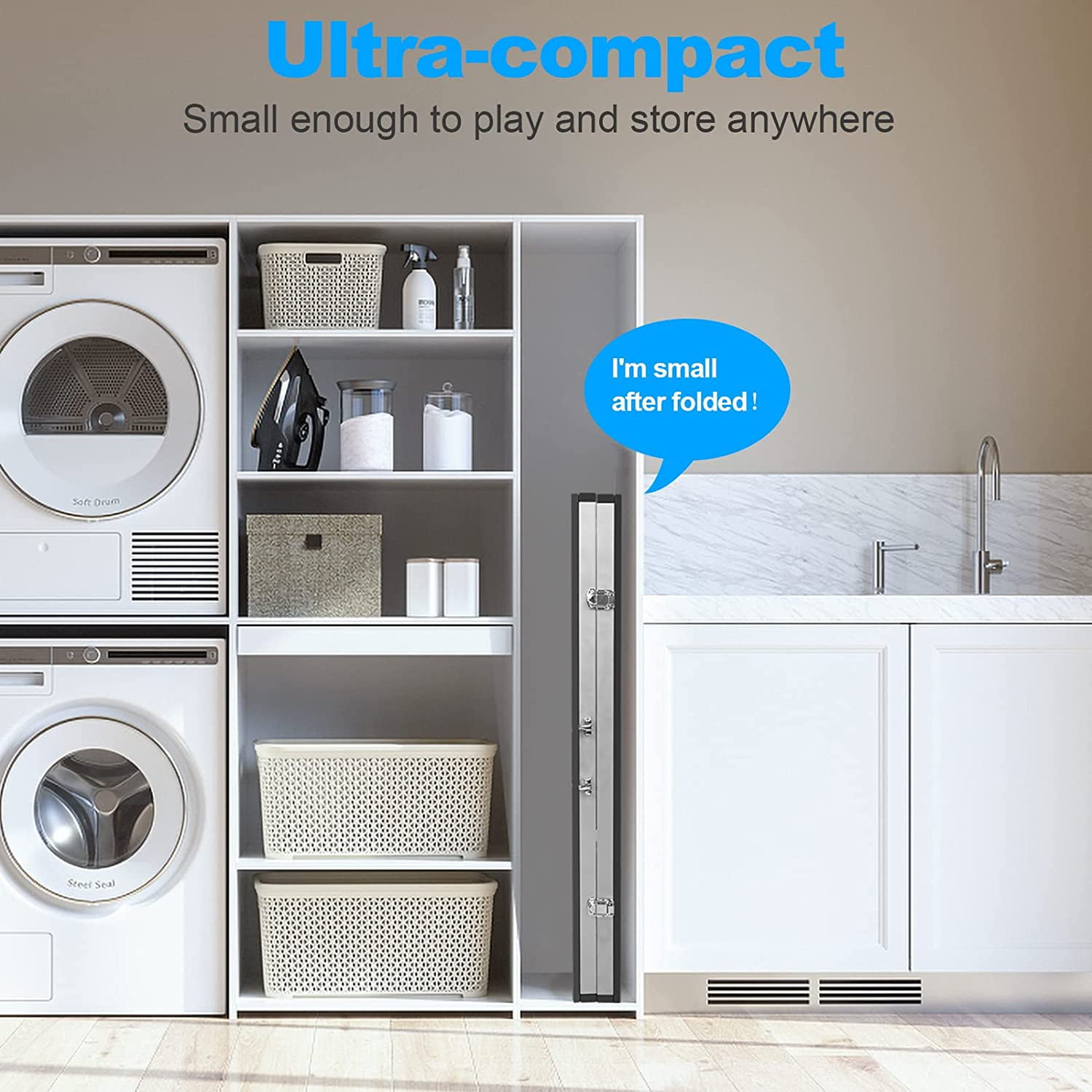 【Complete Set】Includes a mid-size 6’x3′ table tennis table with 2 paddles, game net and 3 balls. 【Midsize Table】Table surface measures 6’x3′ – large enough for competitive games, but small enough to store anywhere. Separate table halves can be used as multi-purpose tables for entertaining. 【Foldable & Easy Storage】This ping-pong table features folding legs. Easier to fold away to save space when not in use. Lightweight, easy to store under the sofa or just stand against the wall. The folding table top can be locked and equipped with a handle which can be easily carried outdoors. 【Instant Setup】Folds out for play and folds up for storage in seconds and is easily carried by one person using built-in carrying handles – perfect for game rooms, apartments, offices, or anyone who doesn’t want to deal with a full size table. 【Premium Construction】Heavy duty aluminum frame keeps the table sturdy yet lightweight and anti-rust. The adjustable table legs and rubber suction cups help protecting your floor from scratches and keep the play table stationary. 【Bring families together for an exciting table tennis game!】Compact and foldable design allows you to use the table anytime you want. Detachable, waterproof mesh net makes it a perfect multifunctional game table for both indoor and outdoor. 【Specifications】Dimension: 72”(L) x 36”(W) x 30”(H). Tabletop thickness: 1/2”. Package Includes: 1 x Table Tennis Table, 1 x Net and Post Set, 2 x Table Tennis Rackets, 3 x Balls.