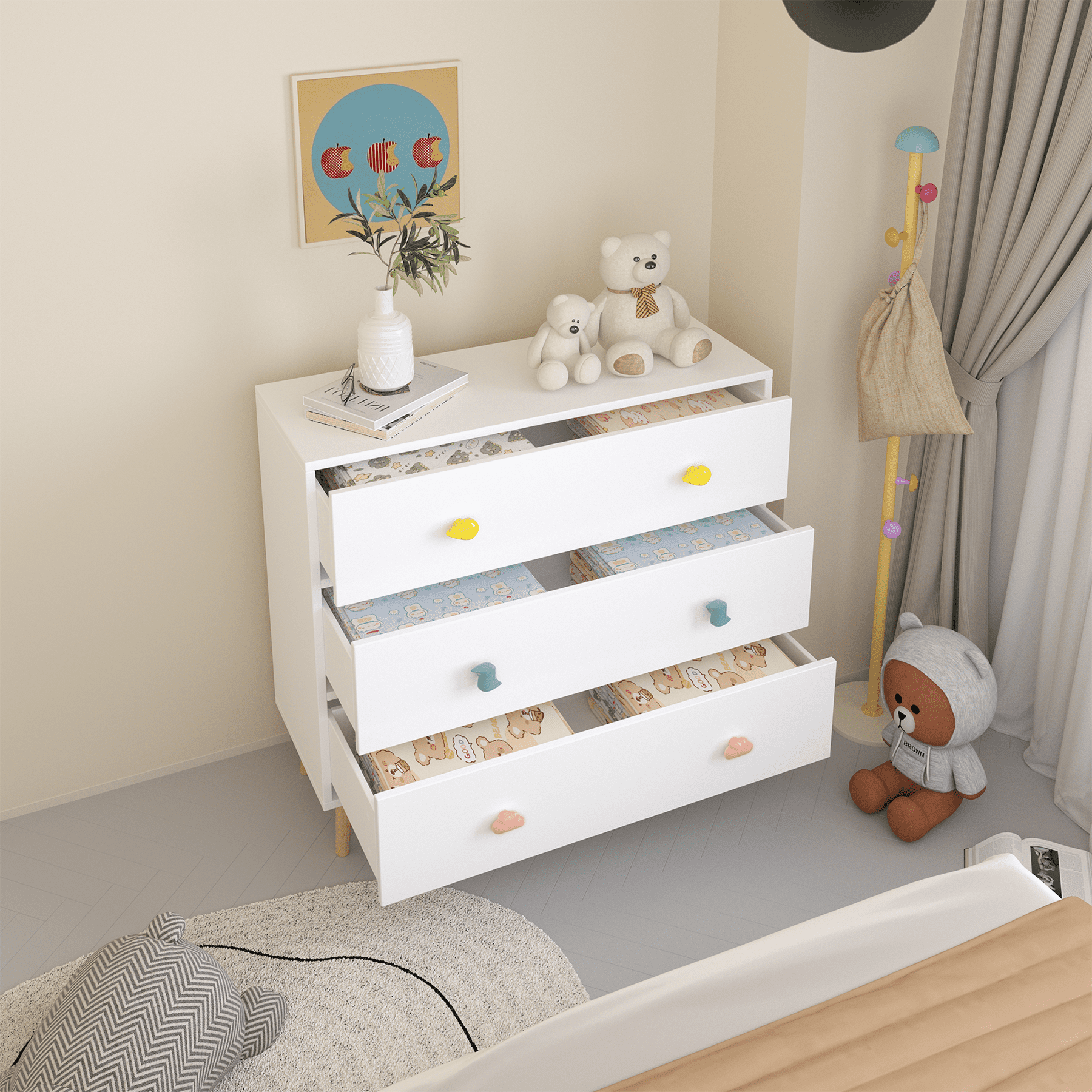 SPACIOUS & STYLISH STORAGE: Crafted from premium fine wood, the Miniyam 3-Drawer Dresser provides ample space to store everything from baby clothes to blankets. Its sleek and modern design keeps your nursery, bedroom, or living area neat and organized while adding a touch of elegance. SMOOTH GLIDE & ADORABLE PULLS: Designed with Euro glides for effortless drawer operation, this dresser ensures quick and easy access to your essentials. The charming cartoon pulls add a playful touch, making it an ideal choice for kids’ bedrooms. VERSATILE & MULTI-PURPOSE: More than just a kids’ dresser, this versatile furniture piece seamlessly blends into any room. Use it as a nightstand, side table, or a stylish storage unit in your bedroom, living room, or nursery. STURDY & SAFE DESIGN: Engineered with an anti-dumping safety mechanism, this dresser offers enhanced stability to ensure peace of mind. Perfect for households with children, you can use it with complete confidence. EASY ASSEMBLY: With clear, step-by-step instructions, assembling this dresser is a breeze. Crafted with love and care, it’s built for durability, making it a reliable storage solution for years to come.