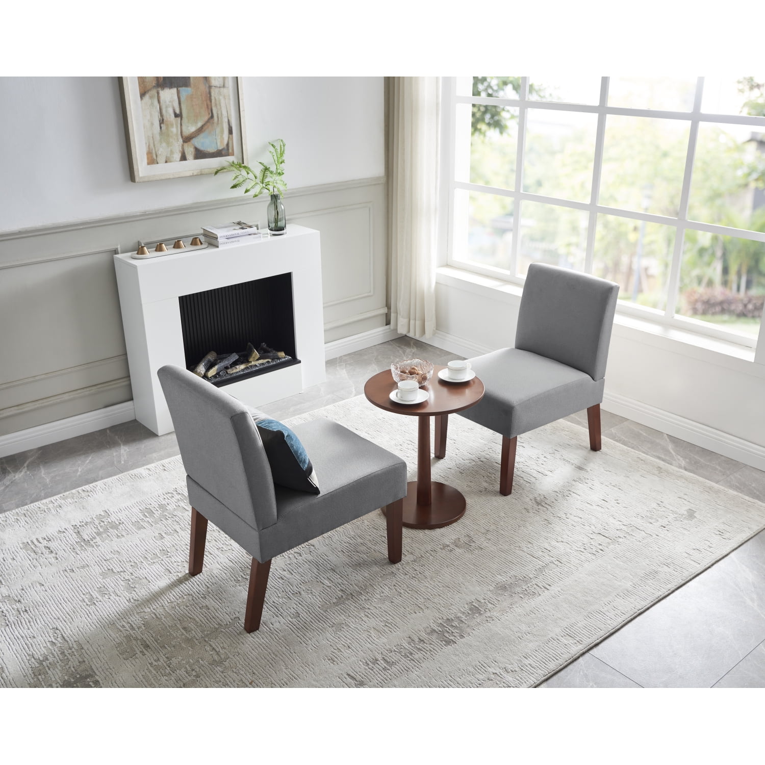Miniyam Fabric Accent Chair Set of 2 with Round Wood Table, Decorative Slipper Chair Vanity Chair for Bedroom Home Office, Corner Side Chair
