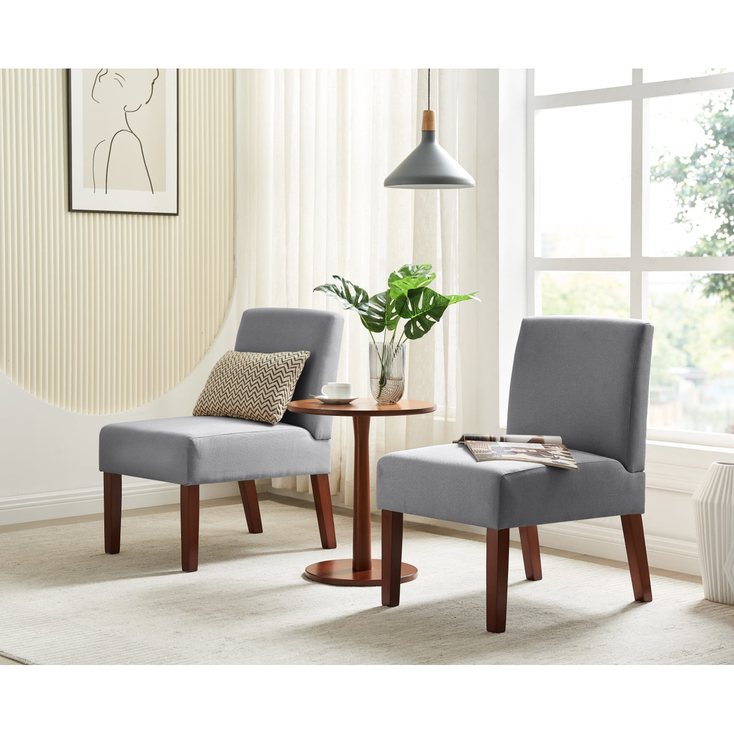 ✔Contemporary: With clean lines, this accent chair features a prominent contemporary style. With a minimalistic and comfortable design, this chair will blend seamlessly with your decor while providing ample seating space in any room. ✔Durable Hardwood Frame: Our accent chairs are constructed with high-quality hard wood that lasts long, have solid wood frame ensures the stability and durability of the armless chair. Accent chair armless chair sofa chair. ✔Application Scenarios: Not only this decorative chair can be used in the bedroom and living room, but this accent chair can also provide a comfortable seating area in your office to reduce your fatigue. It very suitable for small spaces and corners. You can sit on it to drink coffee, read a book, and chat with friends. ✔Separate Side Table: The product includes a side table, which can be placed on the side of the sofa alone, or a combination of chairs to use to enjoy a good time drinking coffee and communicating with friends and family it together. ✔Simple Assembly:This chair requires some assembly. All parts are placed in one box, instructions and tools are included.
