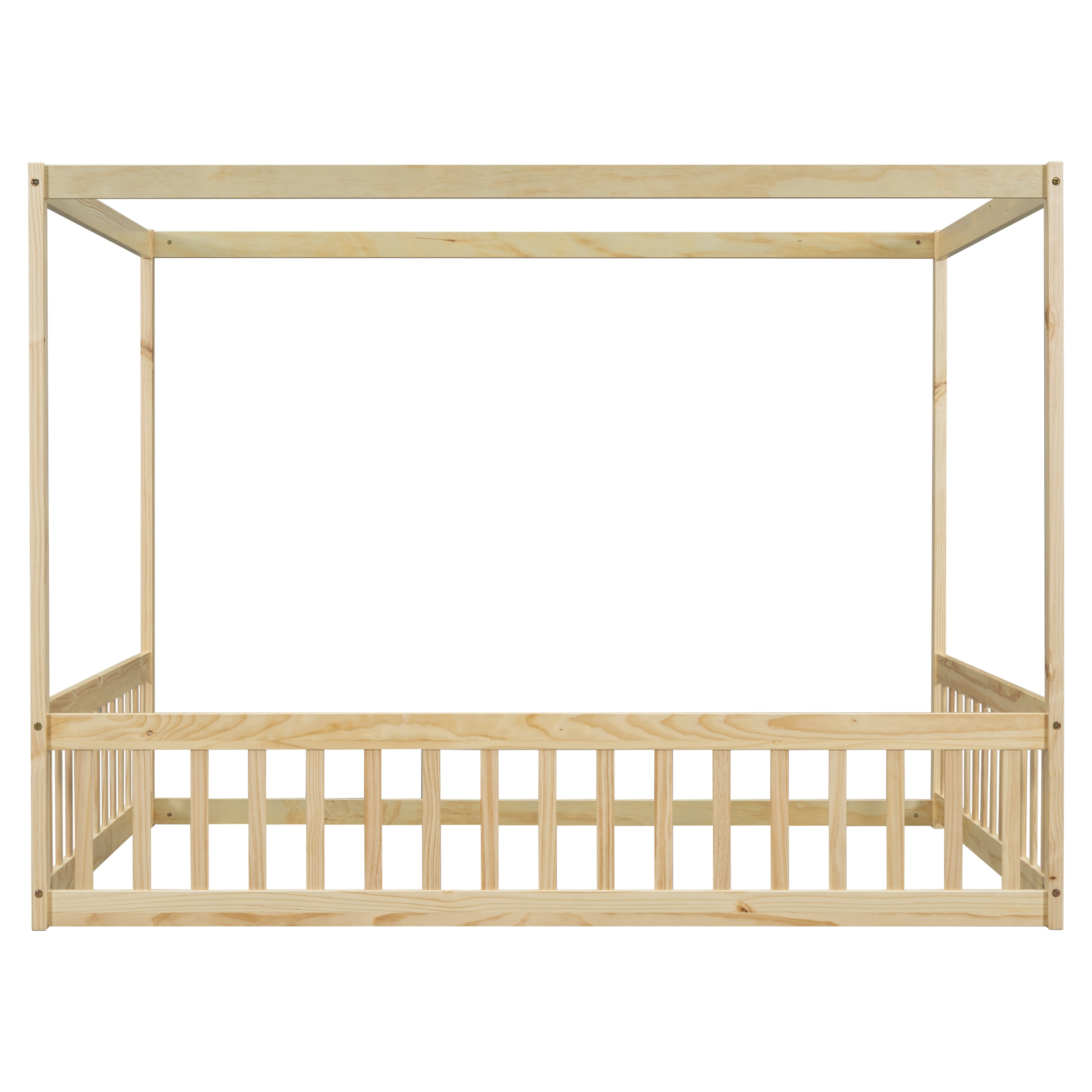 Miniyam Full Size Canopy FloorBed with Guardrails for Kids and Teens, Natural