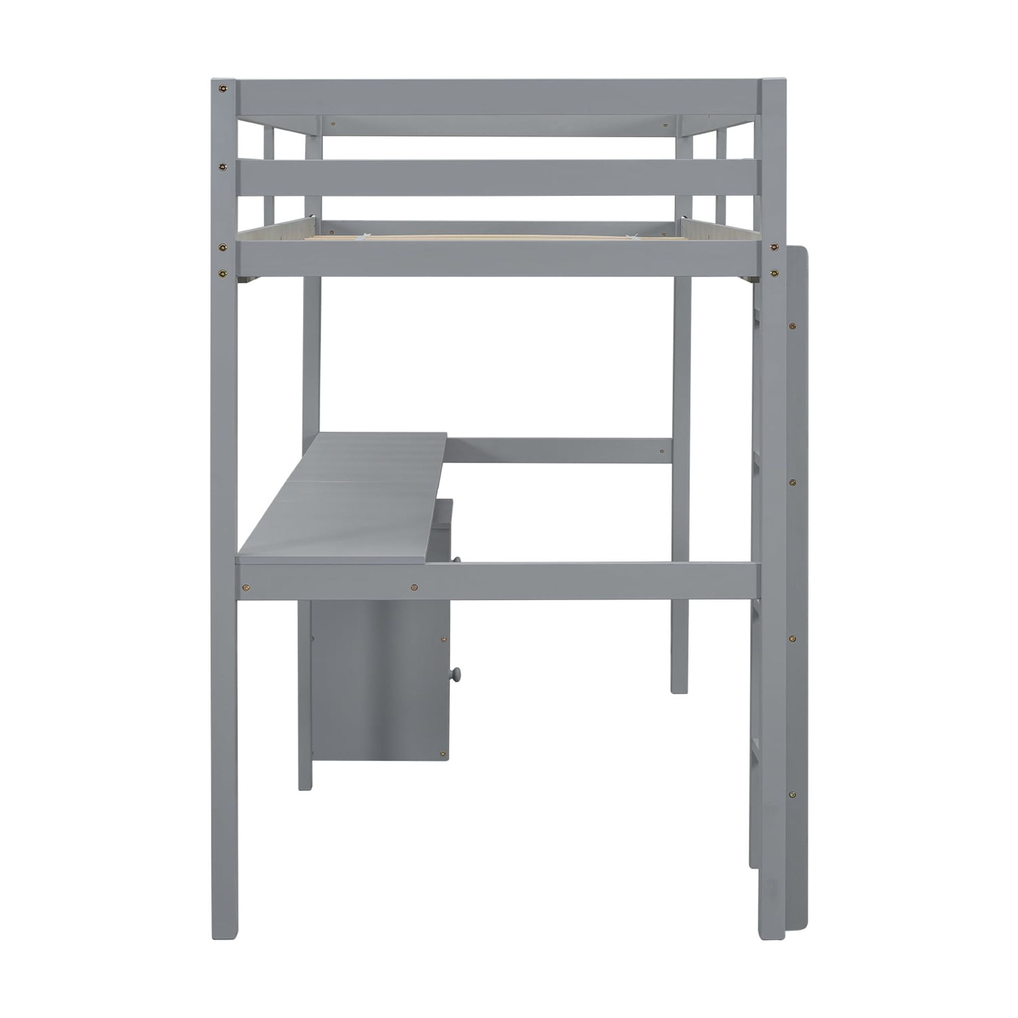 Miniyam Twin Size Loft Bed with Built-in Desk, Storage Cabinet for Kids and Teens, Gray
