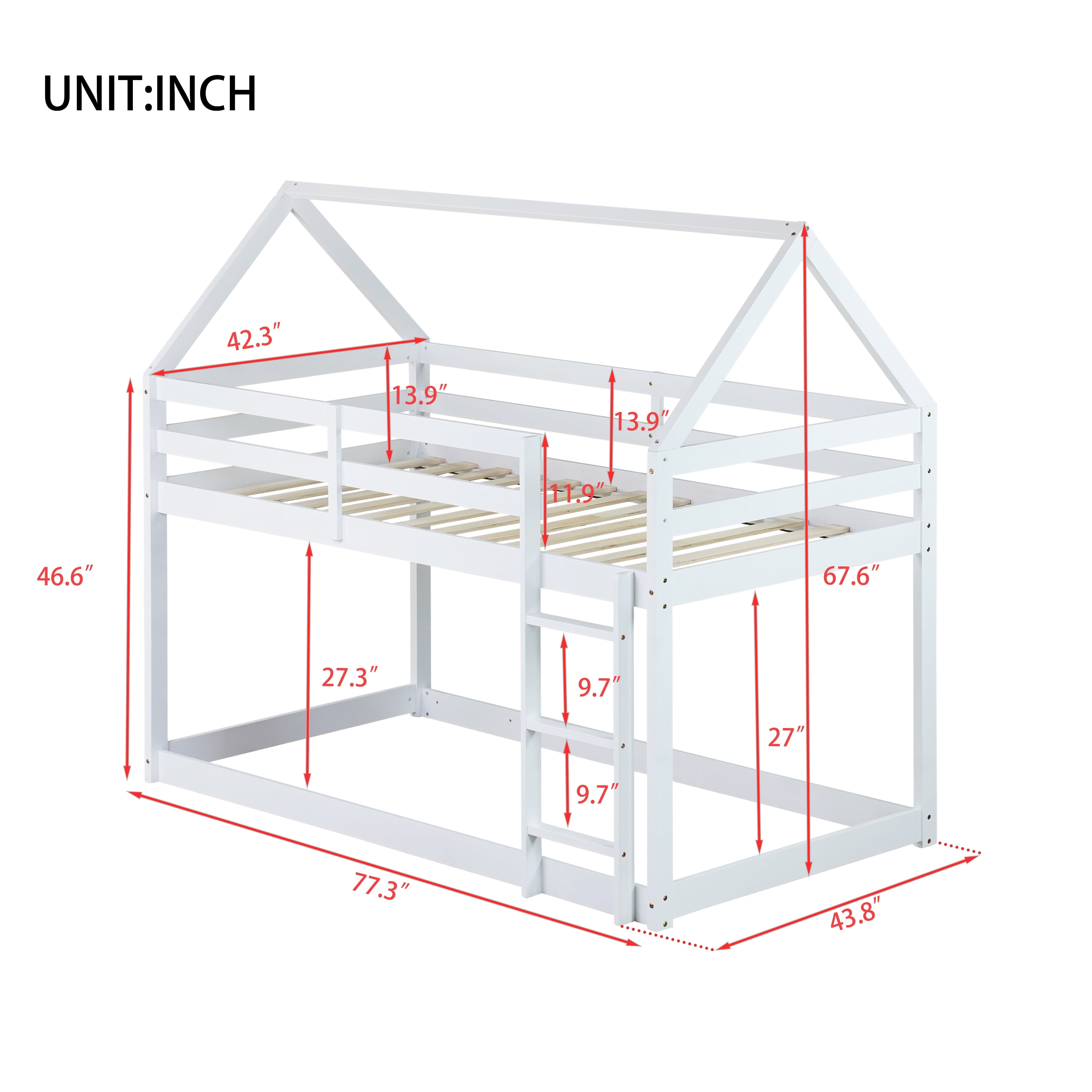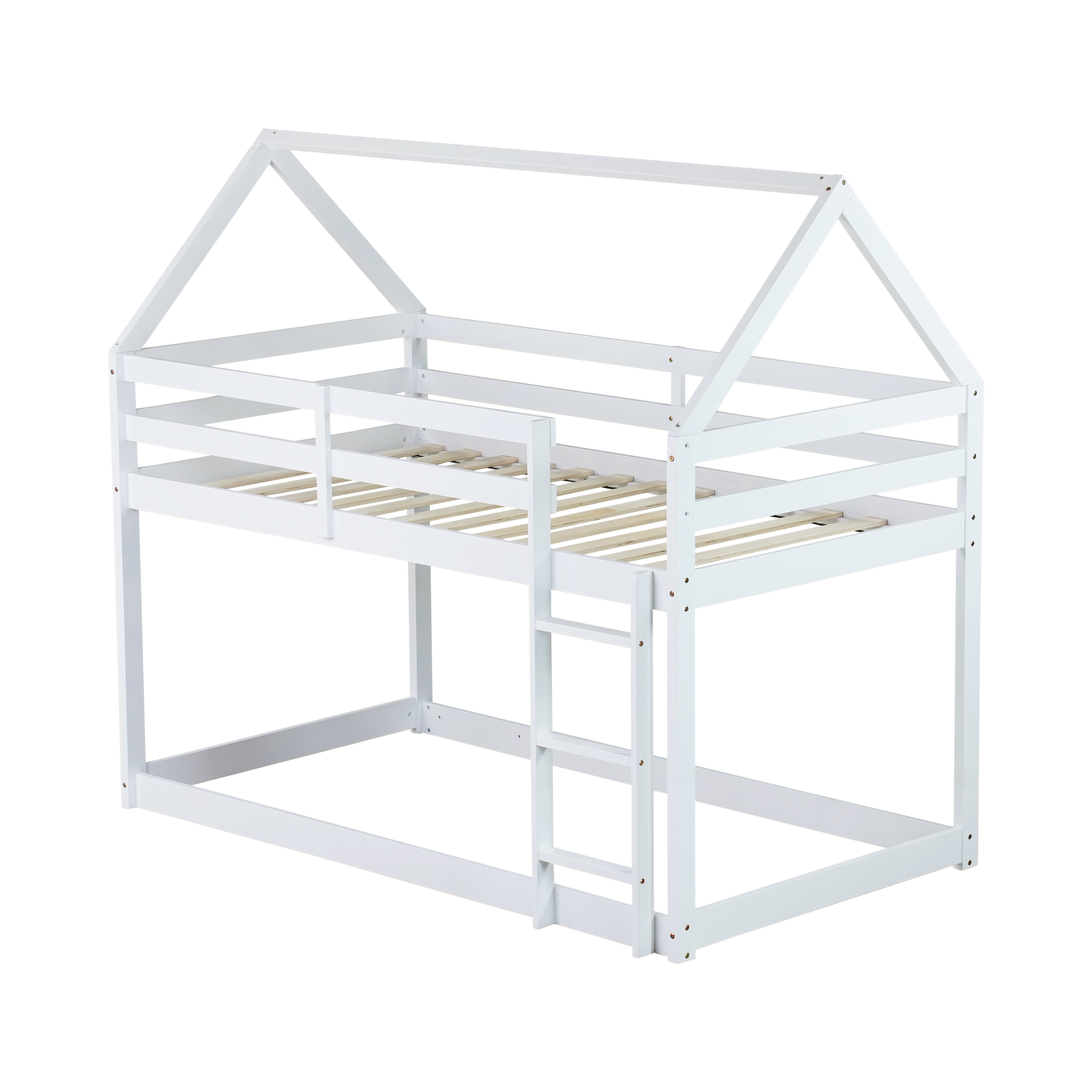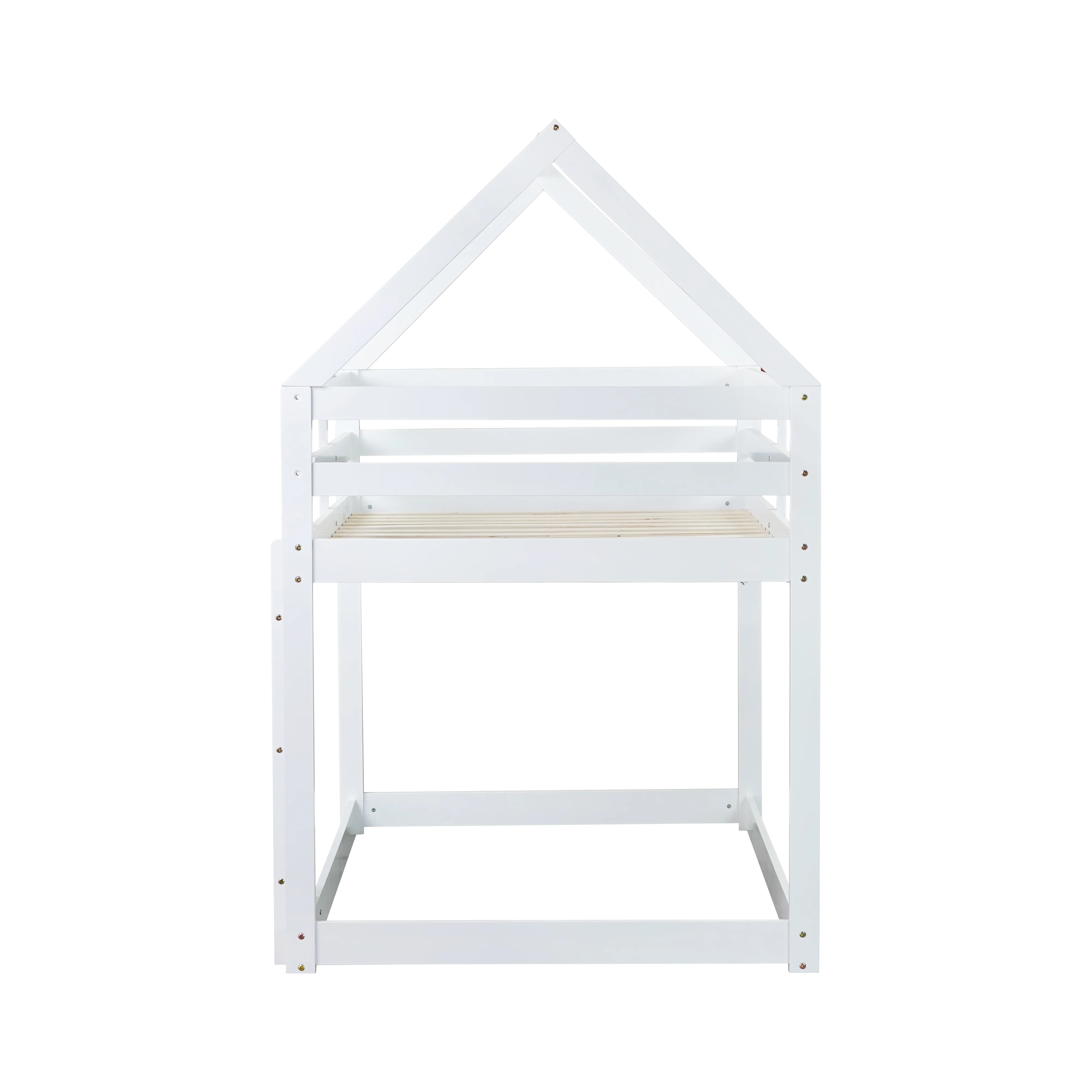Miniyam Wood Twin over Twin Bunk Bed, House-Shaped Design for Kids and Teens, White