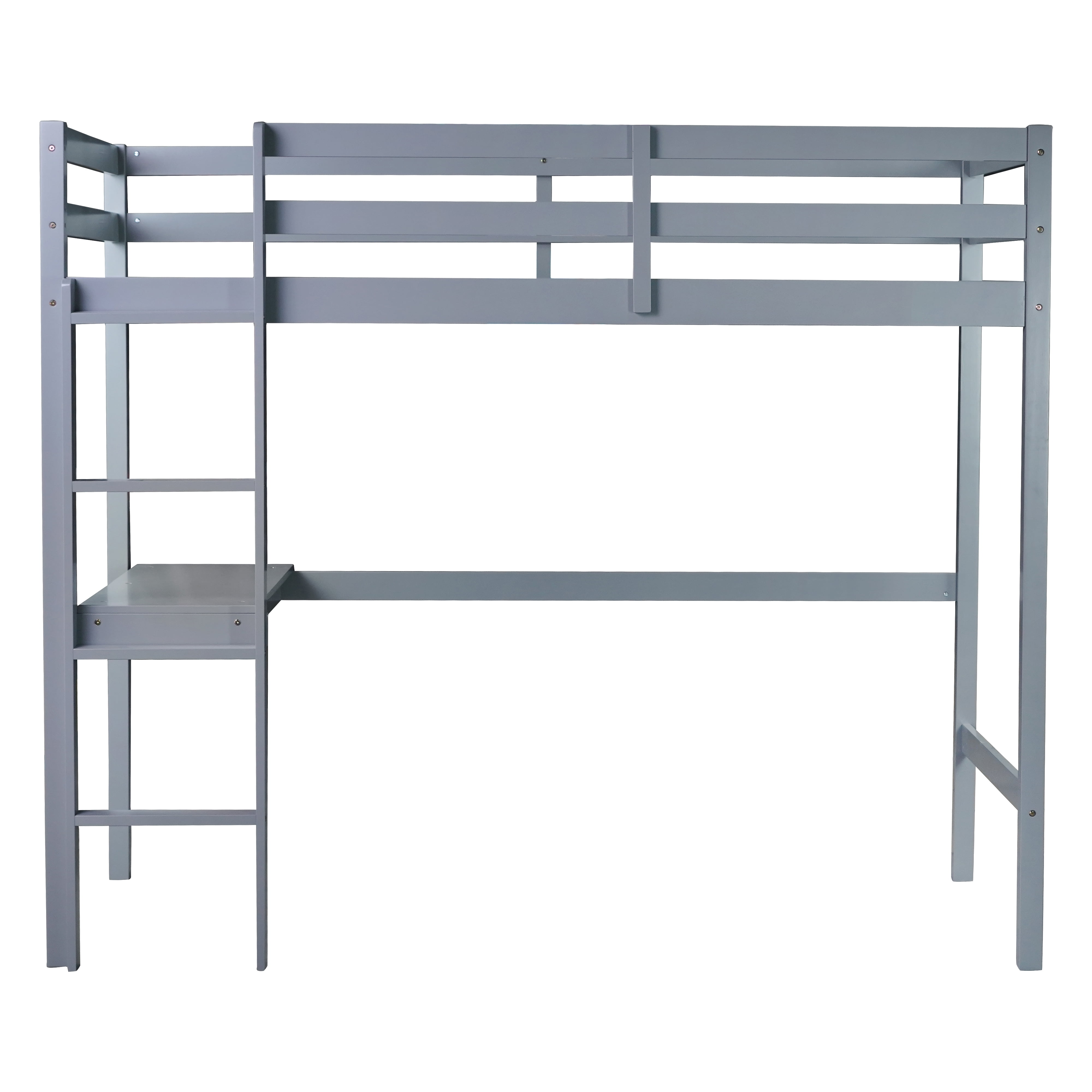 Miniyam Wood Twin Size High Loft Bed with Desk for Kids and Teens , Built-in Desk, Gray