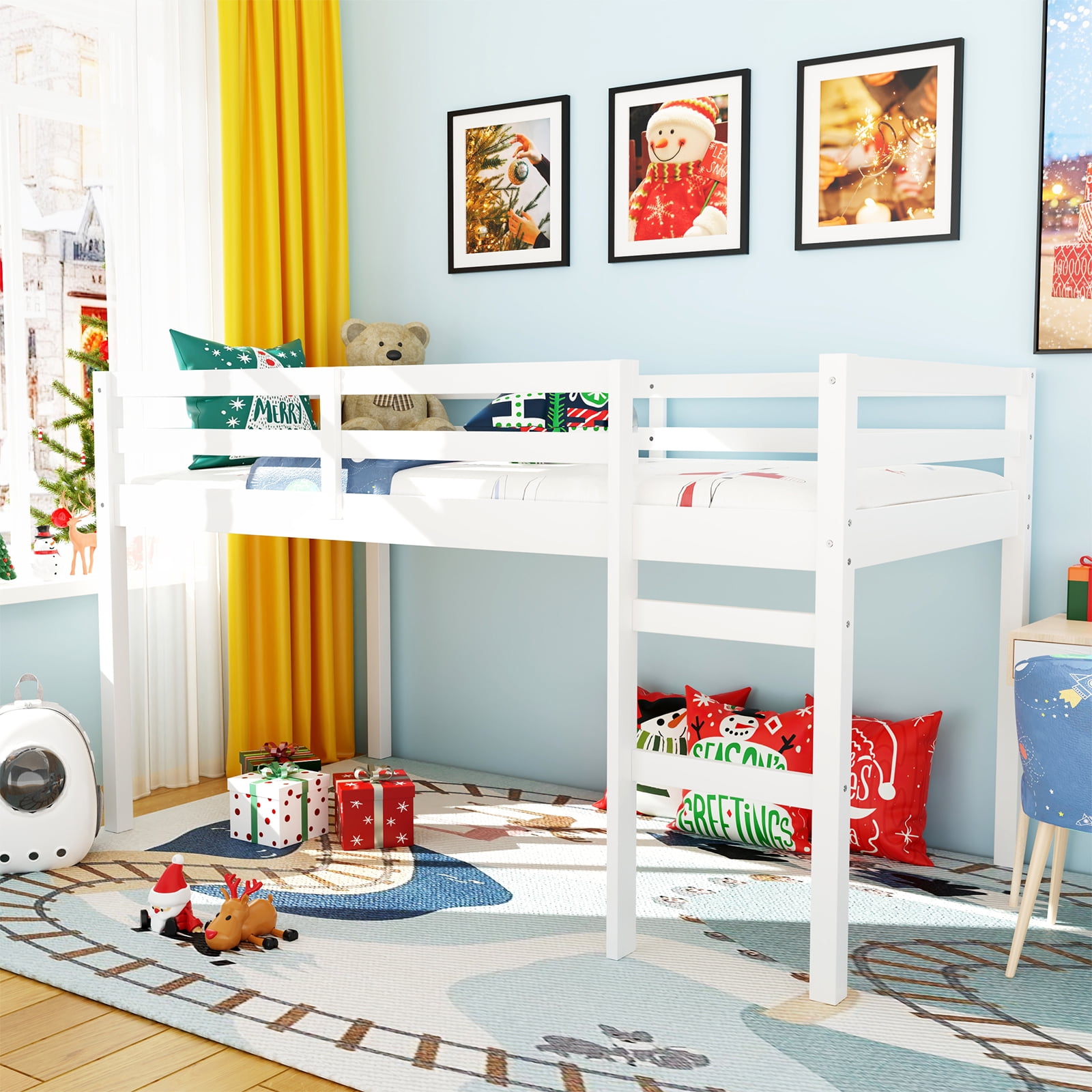STYLISTIC ELEGANCE: The contemporary minimalist design of the Miniyam loft bed adds a touch of elegance, seamlessly blending into any interior style. Available in a variety of classic colors, you can choose the one that best complements your child’s bedroom decor. AMPLE SPACE STORAGE: Transform your child’s bedroom with the capacious space beneath the Miniyam loft bed, perfect for kids aged 5-8. This versatile area is ideal for organizing toys, bookshelves, cushions, and other accessories, maximizing room space and keeping everything neat and tidy. LOW HEIGHT DESIGN: Designed with young children in mind, this low-height loft bed enhances stability and reduces safety concerns, offering a secure and restful sleep environment. The ladder features wide steps for easier and safer access, making it simple for kids to climb up and down. SAFETY AND QUALITY GUARANTEED: Crafted from premium rubber wood and high-quality composite wood, the Miniyam loft bed ensures lasting durability and sturdiness. The structure is reinforced with 13 poplar plywood slats, providing strong stability. High guard rails surround the bed, offering extra safety for your child. EASY ASSEMBLY: This loft bed comes with a detailed manual and all necessary hardware, packaged in one box for your convenience. The straightforward assembly process ensures you can set up your child’s new bed with ease and enjoy it in no time.