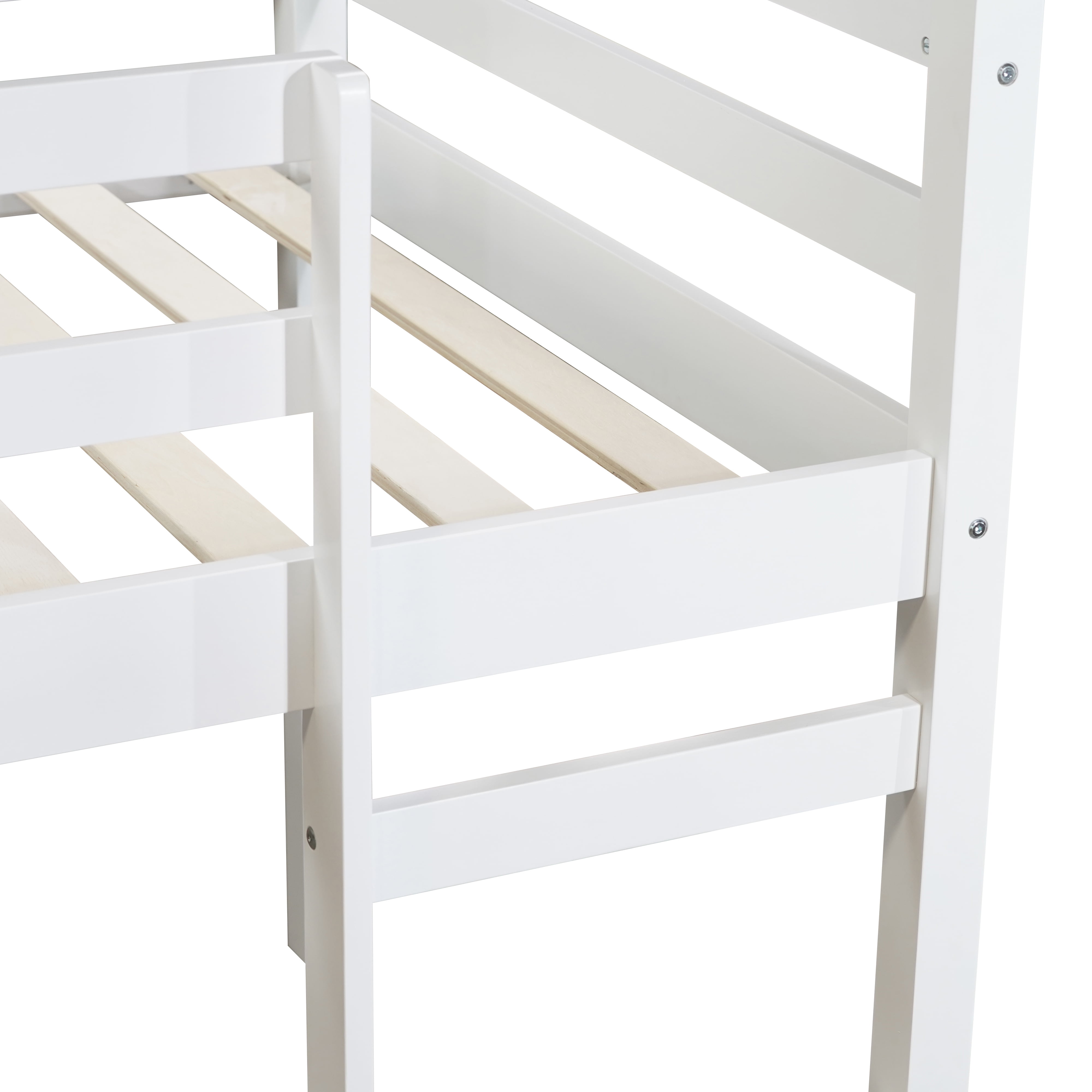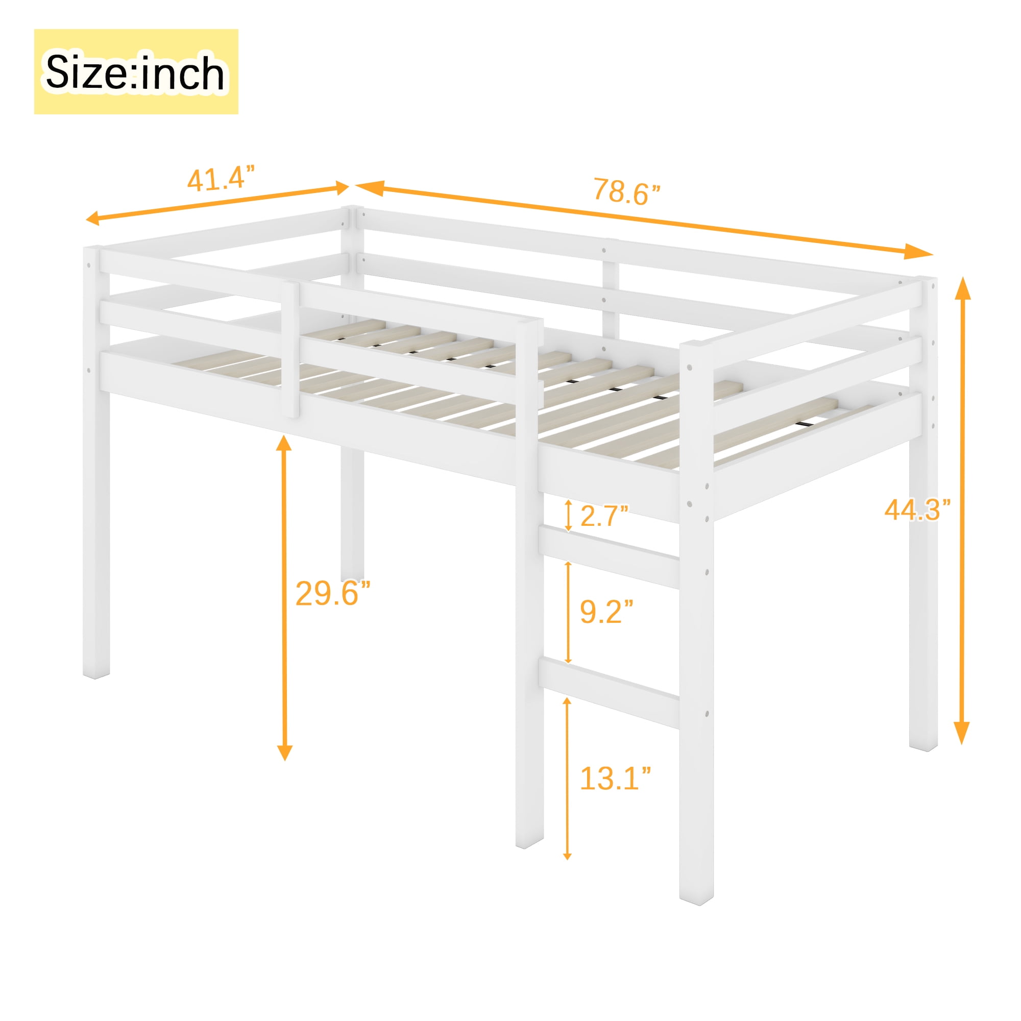 Miniyam Wood Twin Size Loft Bed for Kids, Space-Saving Design, White