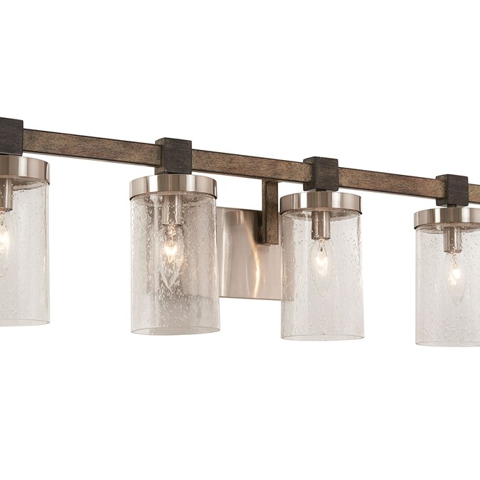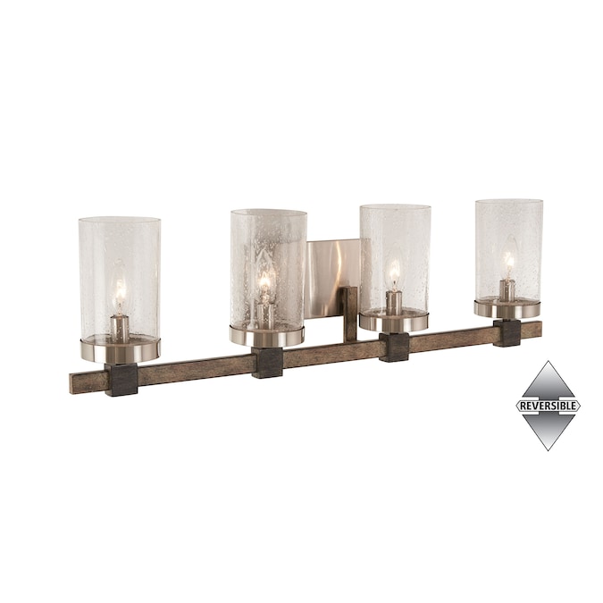 This Contemporary twist by Minka Lavery on a country favorite will be the center piece of any home. The key to Bridlewood’s winning design is its strong lines combined with interesting bold geometric blocks. The Bridlewood collection is in a Stone Grey and Brushed Nickel finish with clear seedy glass, creating a bold presence in any room