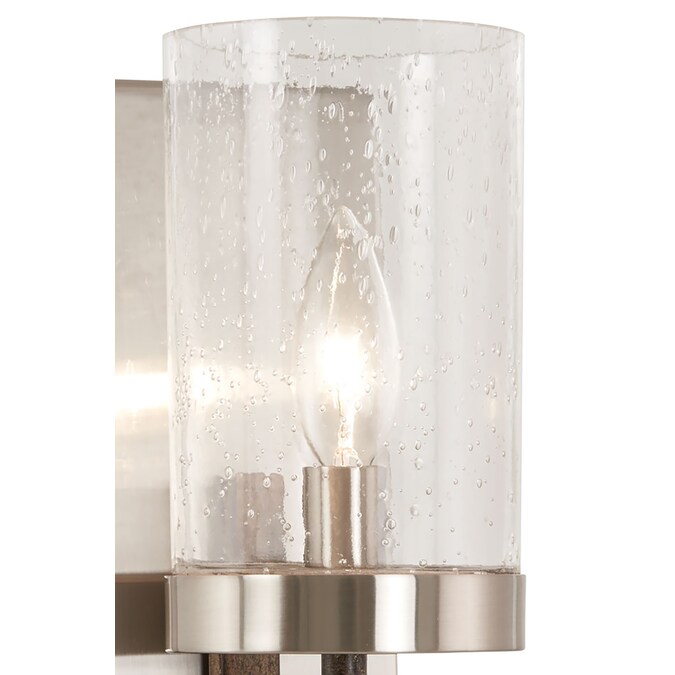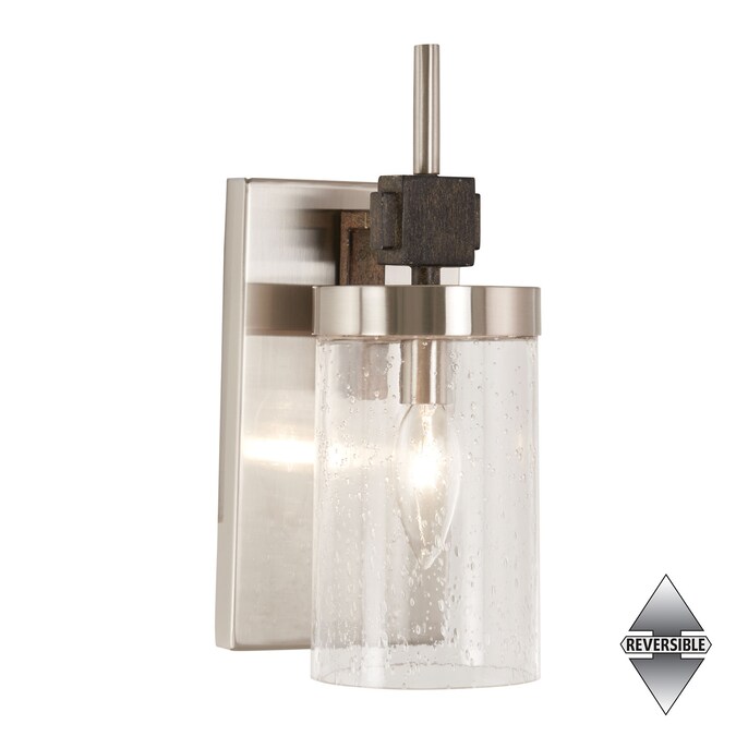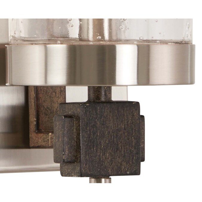 This contemporary twist by Minka Lavery on a country favorite will be the center piece of any home. The key to Bridlewood’s winning design is its strong lines combined with interesting bold geometric blocks. The Bridlewood collection is in a stone grey and brushed nickel finish with clear seedy glass, creating a bold presence in any room