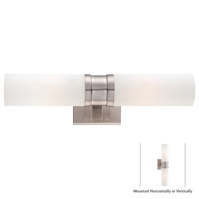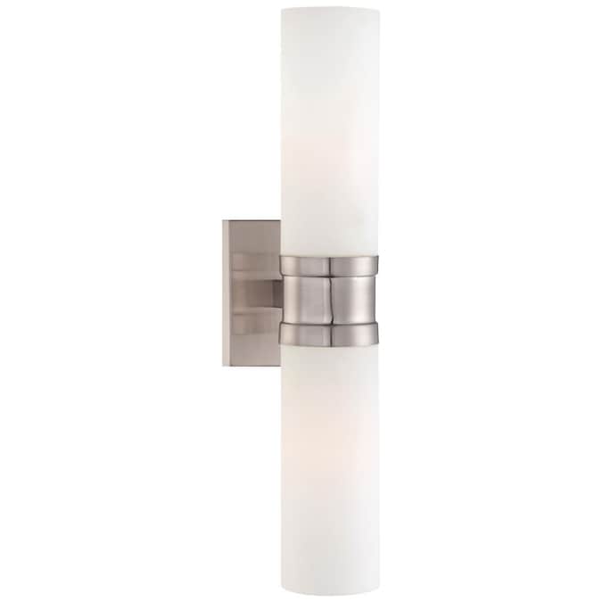 The Minka Lavery 2-Light Wall Sconce sports contemporary style. Finished in brushed nickel, the etched opal glass shade presents a pleasing contrast. Versatile enough for any space, as this sconce can be mounted vertically or horizontally.