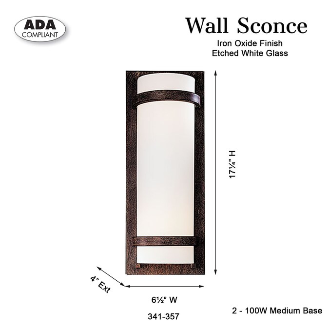 Tall and narrow, the ADA compliant ML 2-light wall sconce is styled for the modern home. Finished in iron oxide with etched opal glass. This sconce will complement any space.