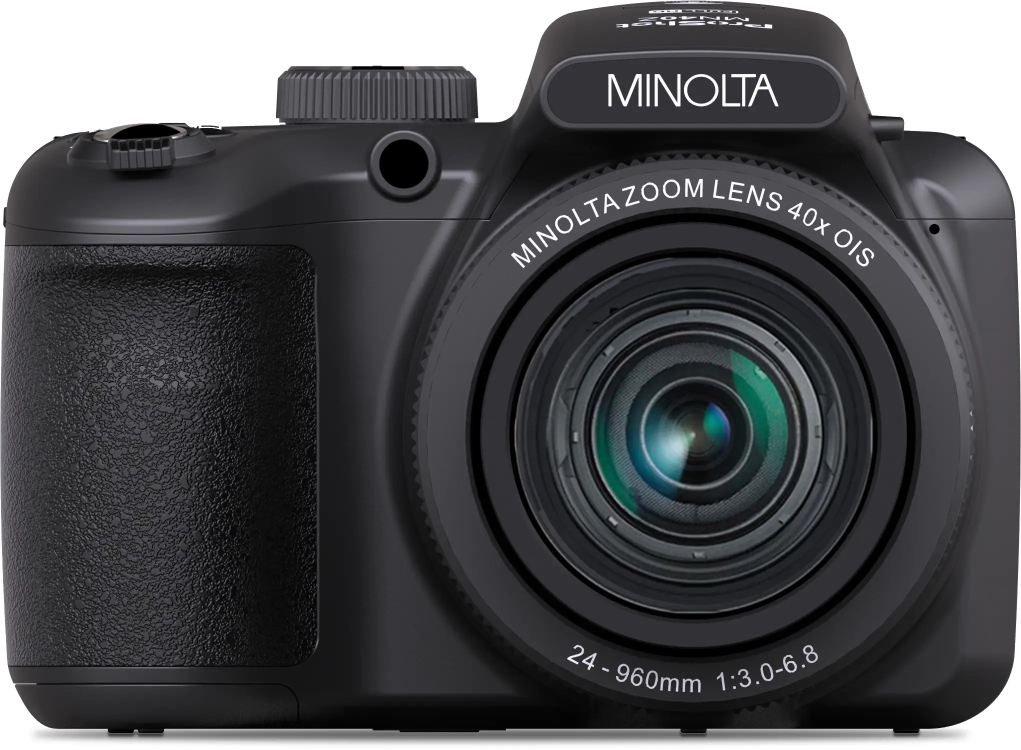 The Minolta ProShot MN40Z Bridge Camera features a long-reaching 40x optical zoom along with versatile recording capabilities in a small and compact body. Its 20.68MP BSI CMOS sensor enables high-resolution stills shooting and 1080P FHD video recording with low noise and sensitivity from ISO 100-3200. The expansive zoom covers a 24-960mm equivalent focal length range for working with subjects both near and far and is complemented by a 4x digital zoom that sets the combined total at 160x magnification. Optical image stabilization helps minimize the appearance of camera shake for sharper handheld shooting, which can be paramount when shooting at extremely long focal lengths. The rear of the camera features 3.0″ 460k-dot LCD monitor for easy review and composition of your images. Built-in wireless connection to your smartphone is available for image transfer and remote control, while the included 32GB SD card ensures your pictures remain safely stored. Powered by 3x AAA alkaline batteries, the MN40Z is a trust photo capture companion anywhere you go.